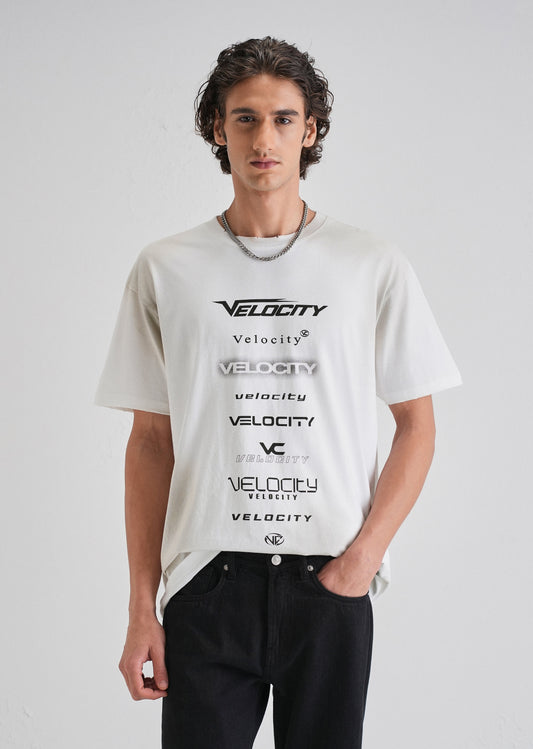 White Embossed Printed Oversized T-shirt