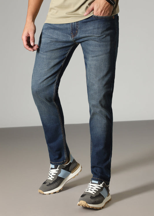 Casual Heavy Fade Straight Fit Jeans | Blue
