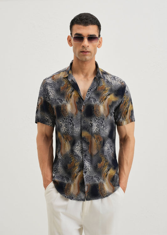Black Dragon and Phoenix Embroidery Designer Shirt