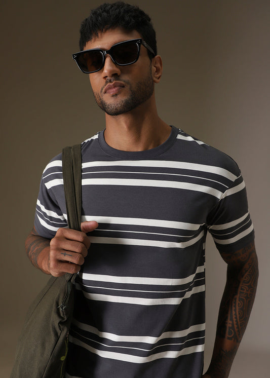Banana Club Embossed Black Plain Oversized Fit T-shirt