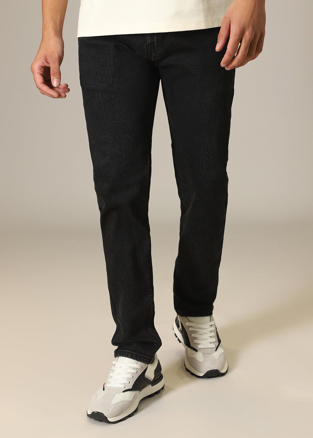 - Regular waist and a zip fly.