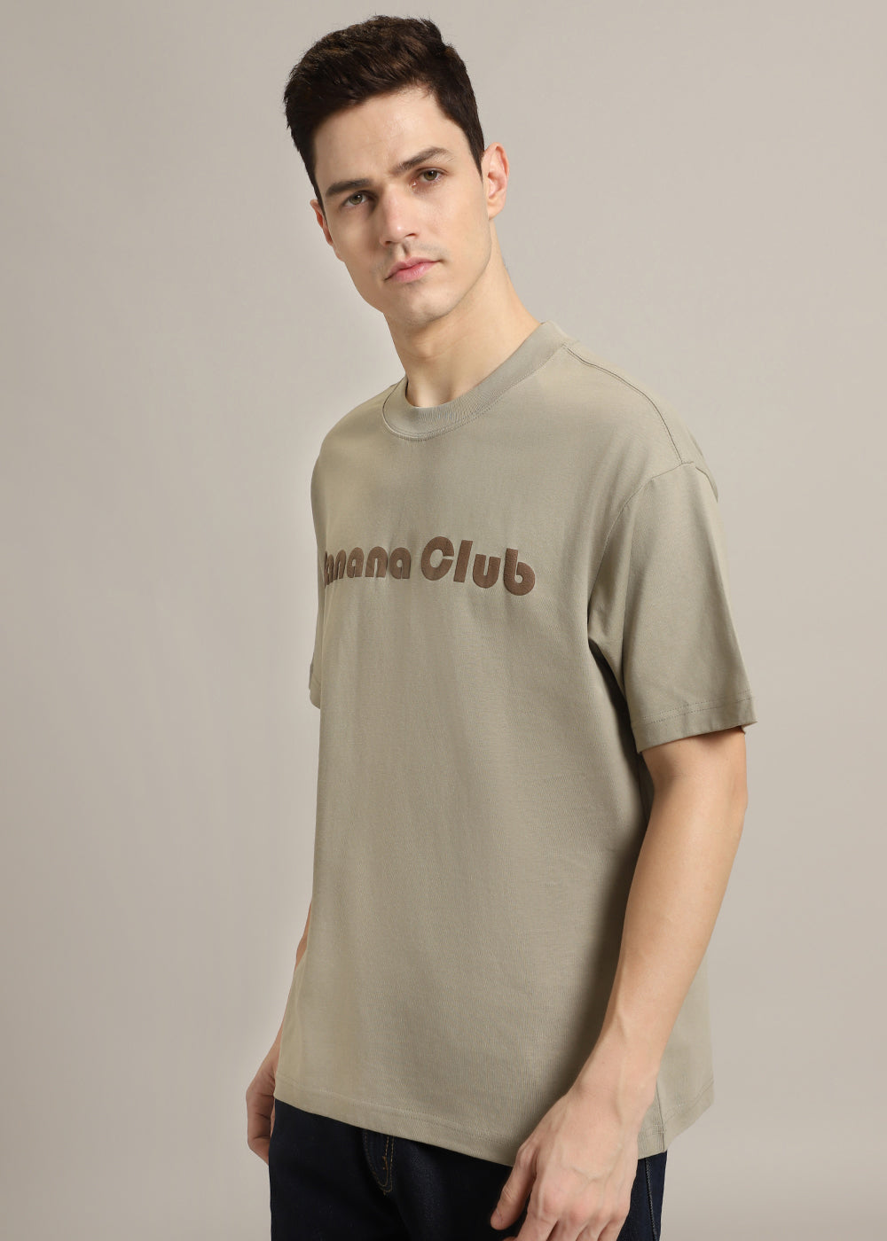 Banana Club Embossed Tan Plain Oversized Fit T-shirt