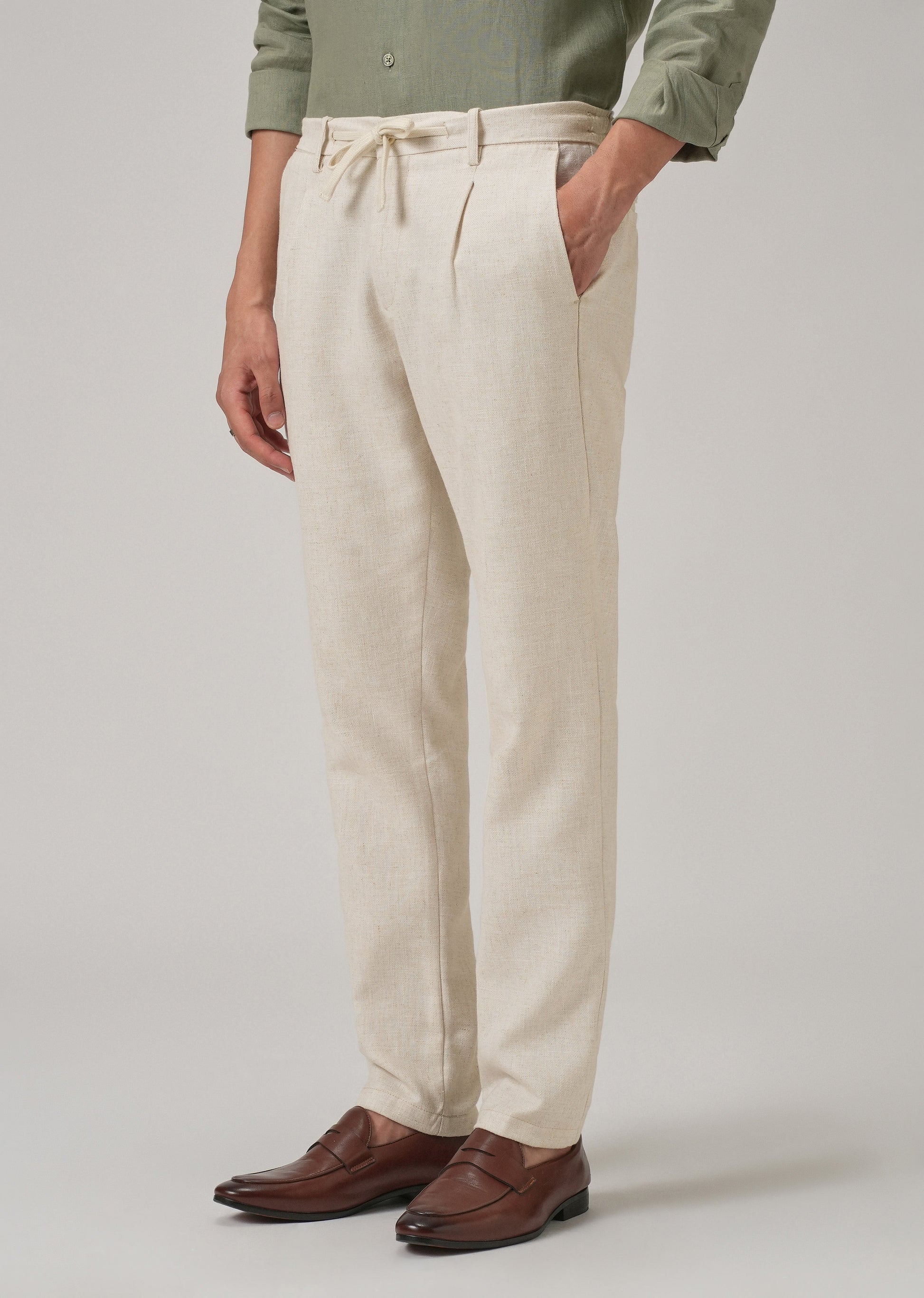 Designed for movement and made to keep up - these trousers feature an elasticated waist with a concealed drawstring, so you get a clean look without losing comfort. Crafted in a blended linen fabric, with belt loops and four functional pockets, this pair balances laid-back feel with everyday polish.