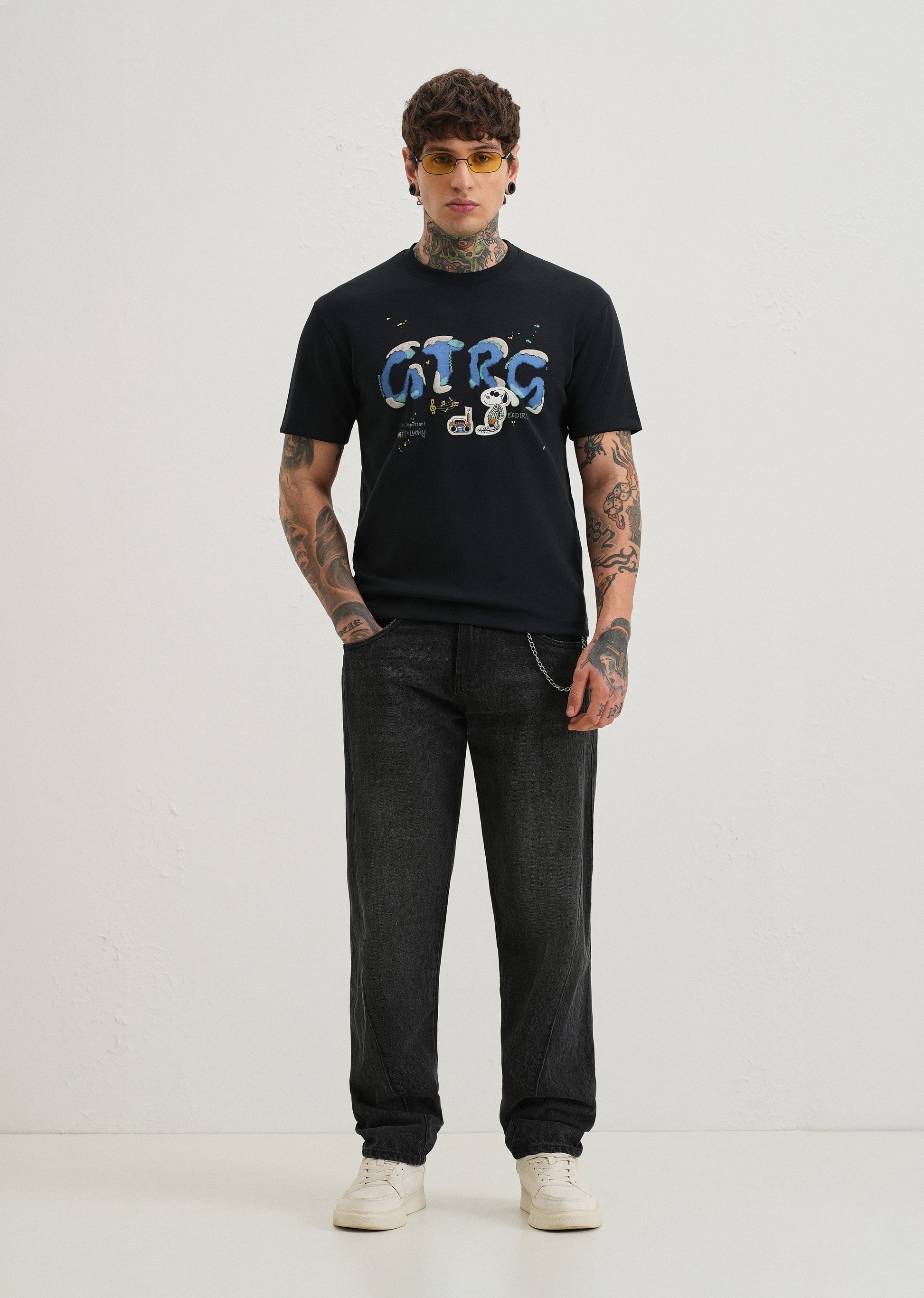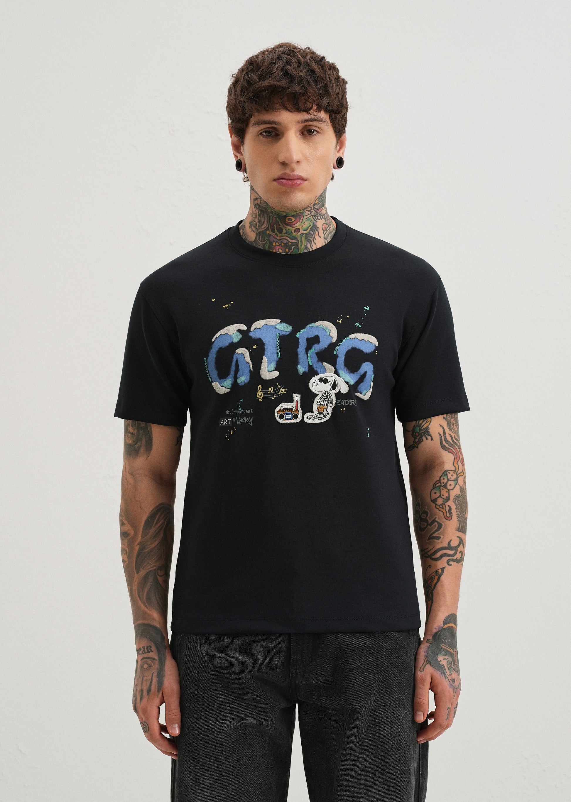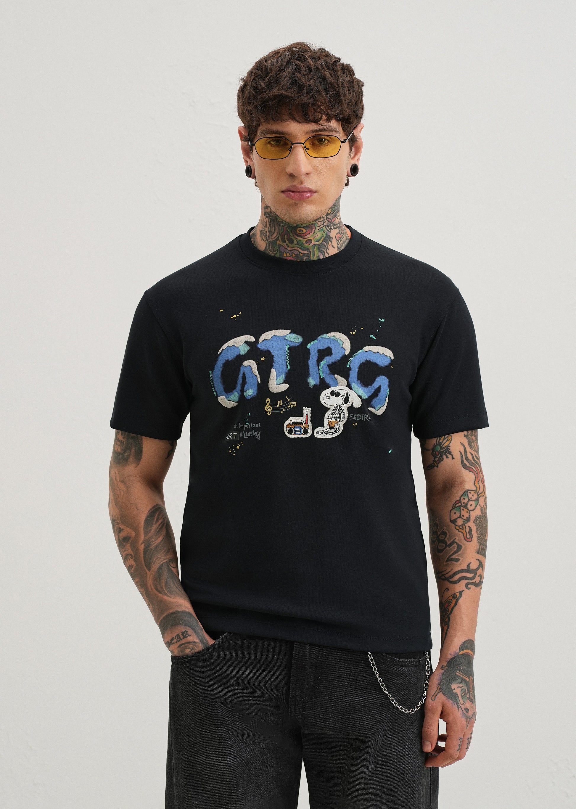 Style our graphic printed T-shirt. Featuring a bold multicolour print across the chest, it blends modern street style with comfort. The soft cotton fabric ensures breathability, while the classic crew neckline and short sleeves make it perfect for everyday wear. Pair it with jeans, shorts, or chinos for an effortlessly cool vibe.