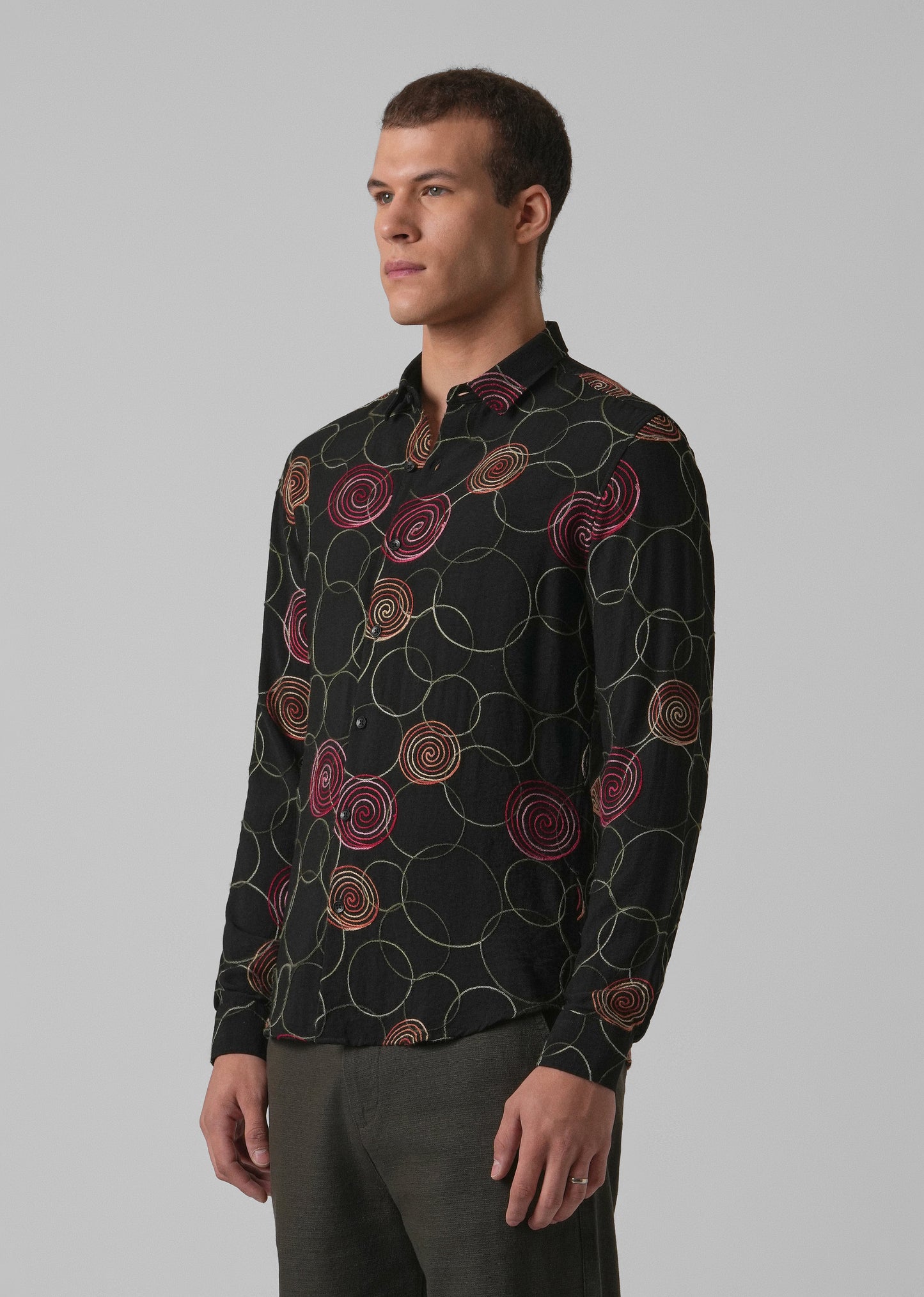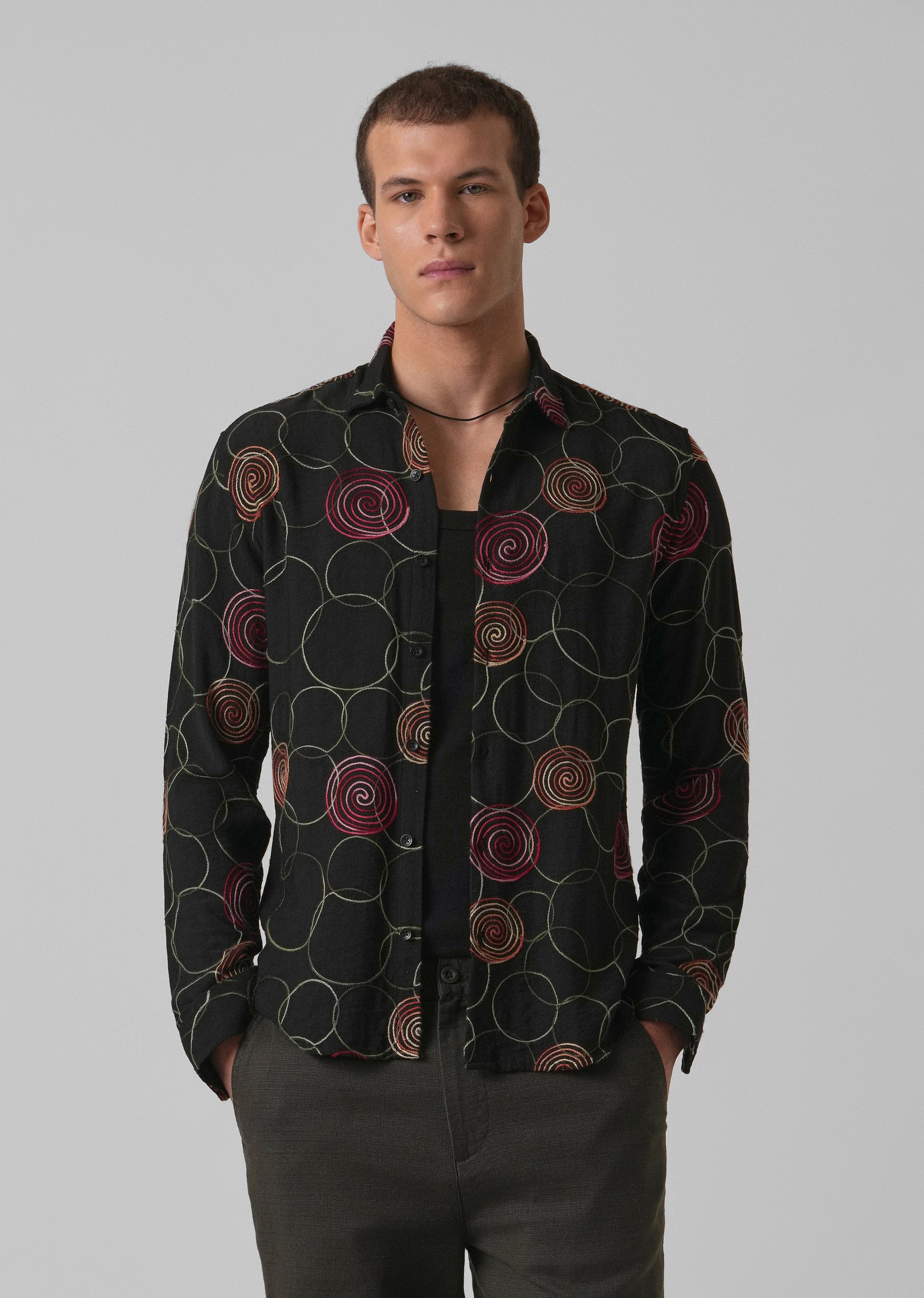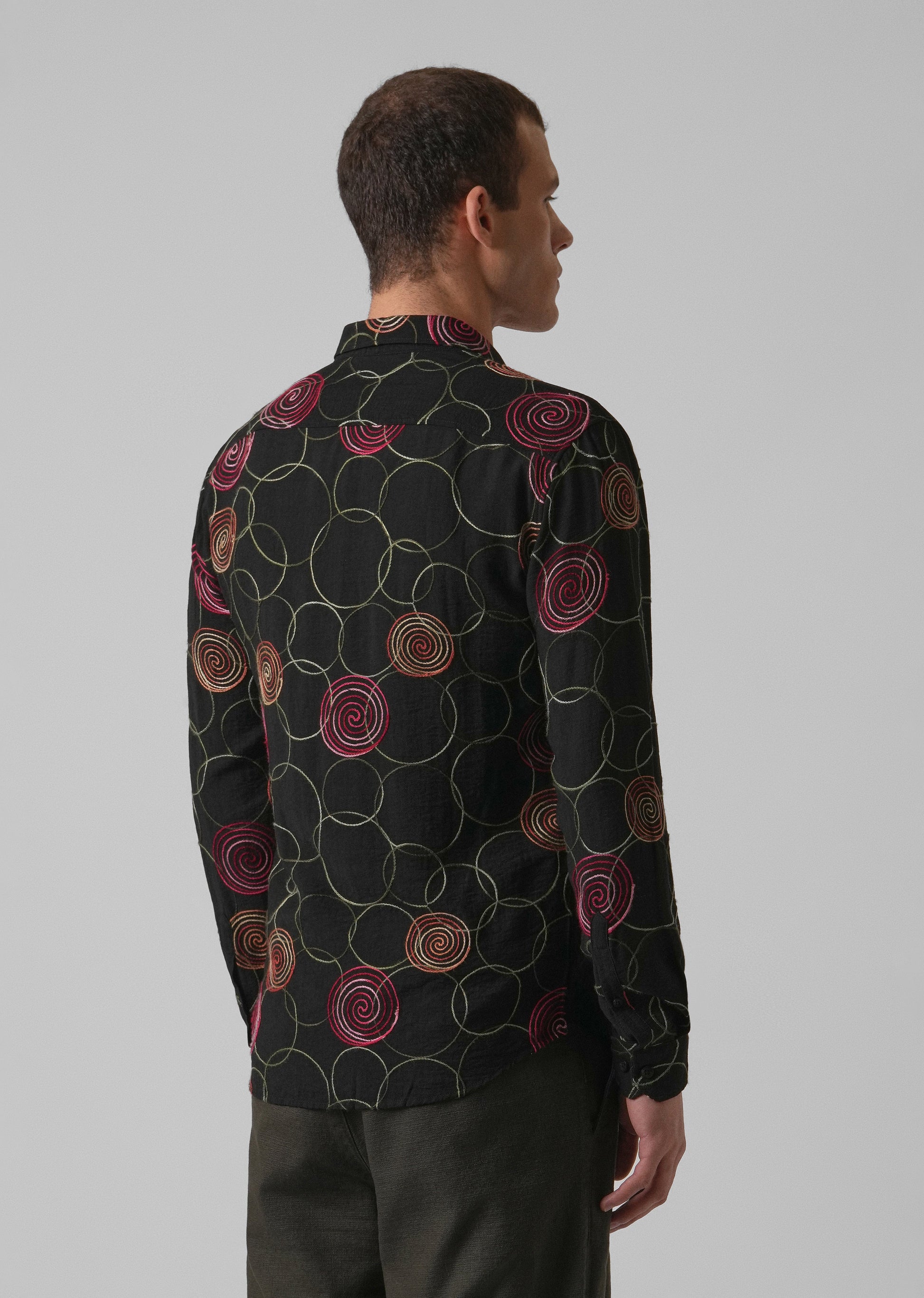 Black Circular Embroidered Shirt