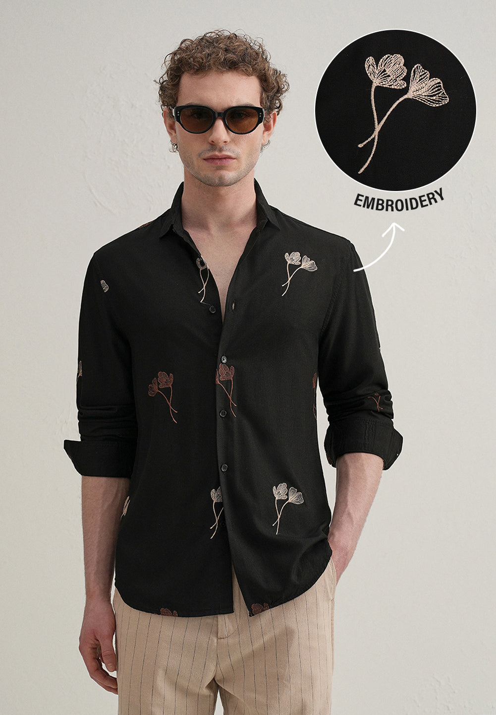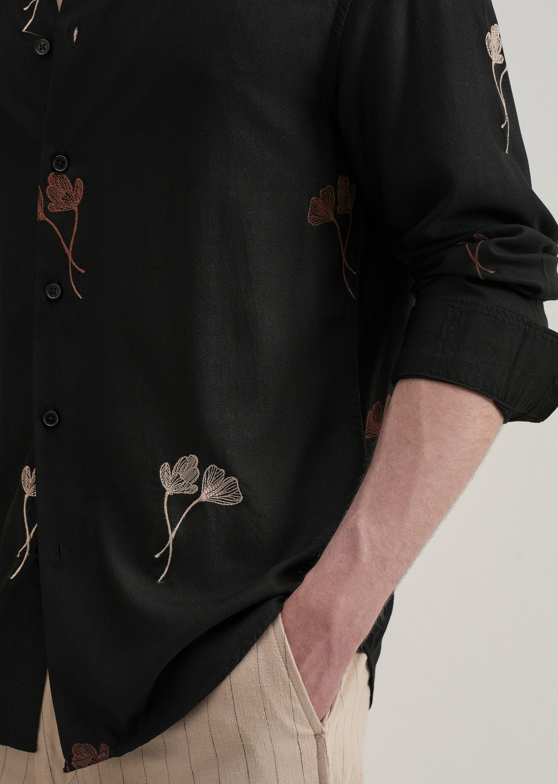 Black Floral Motif Embroidery Shirt