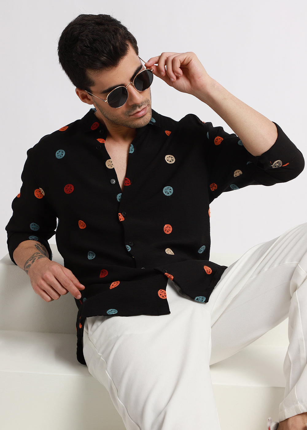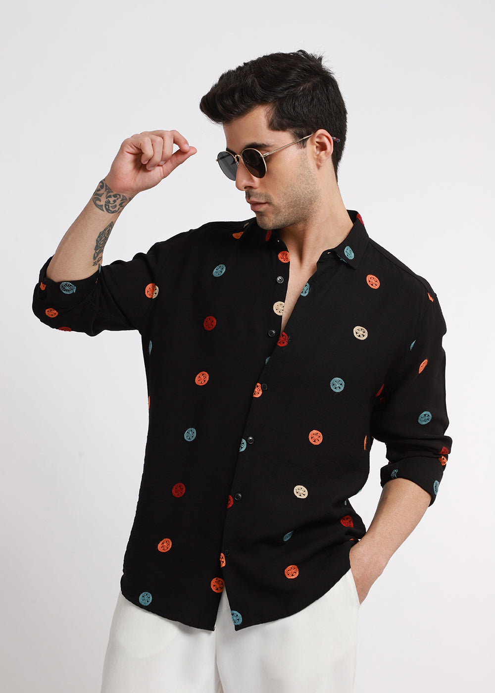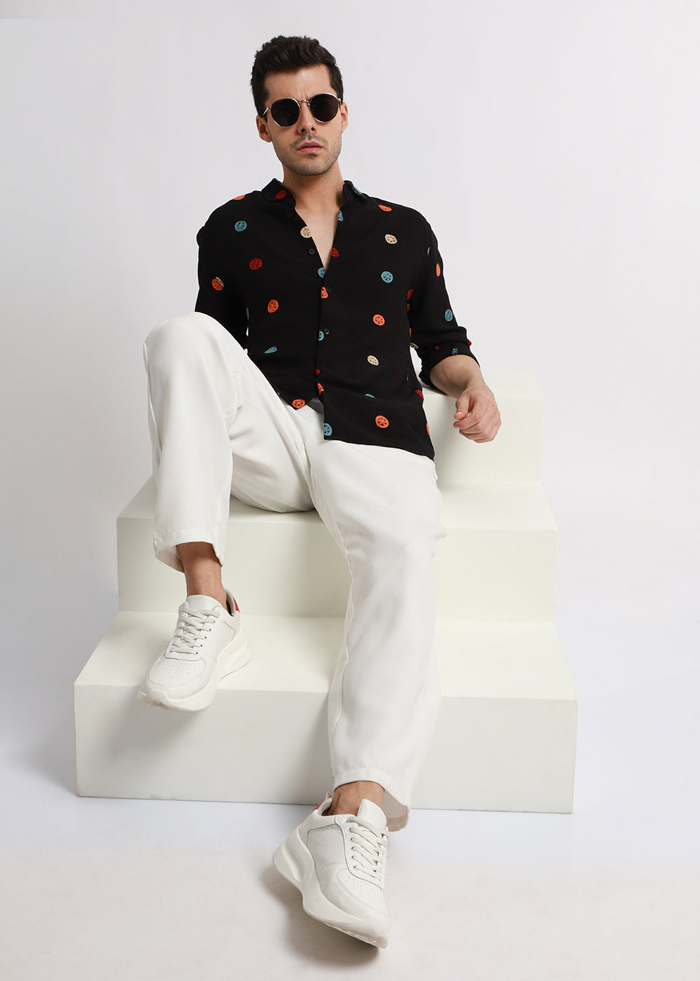Make an impression in this artistically embroidered shirt. Show off your personal style with the custom embroidered accents on this shirt. The soft rayon material keeps you relaxed, while the artistic details give your look a boost of self-expression. Perfect for free spirits who want to showcase their originality.