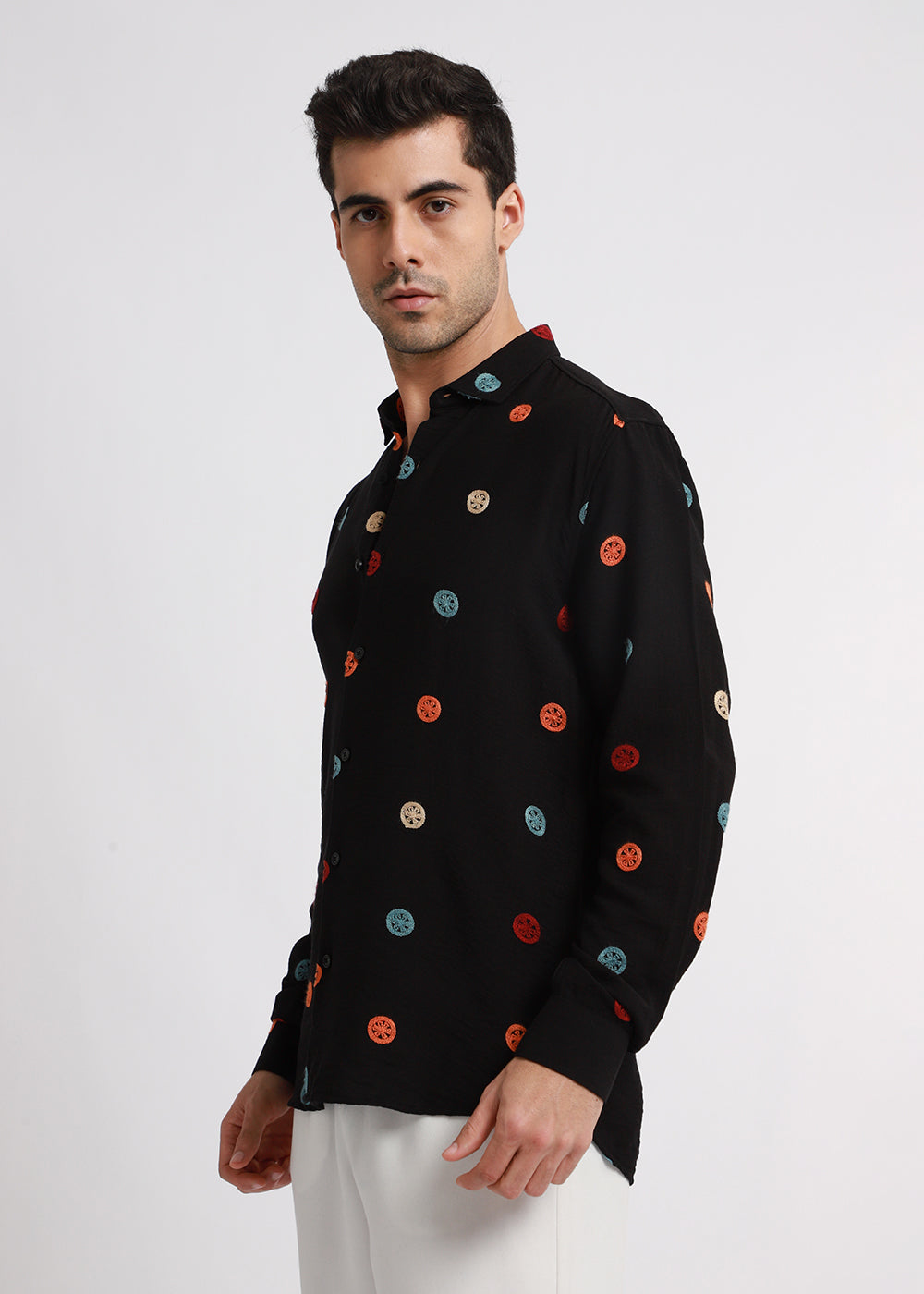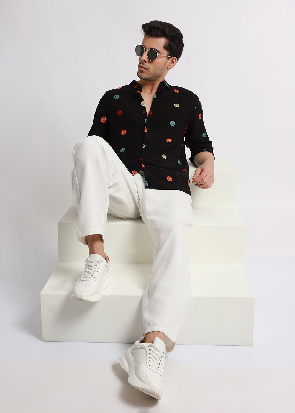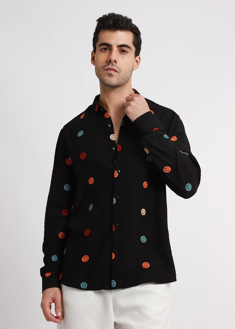 Make an impression in this artistically embroidered shirt. Show off your personal style with the custom embroidered accents on this shirt. The soft rayon material keeps you relaxed, while the artistic details give your look a boost of self-expression. Perfect for free spirits who want to showcase their originality.
