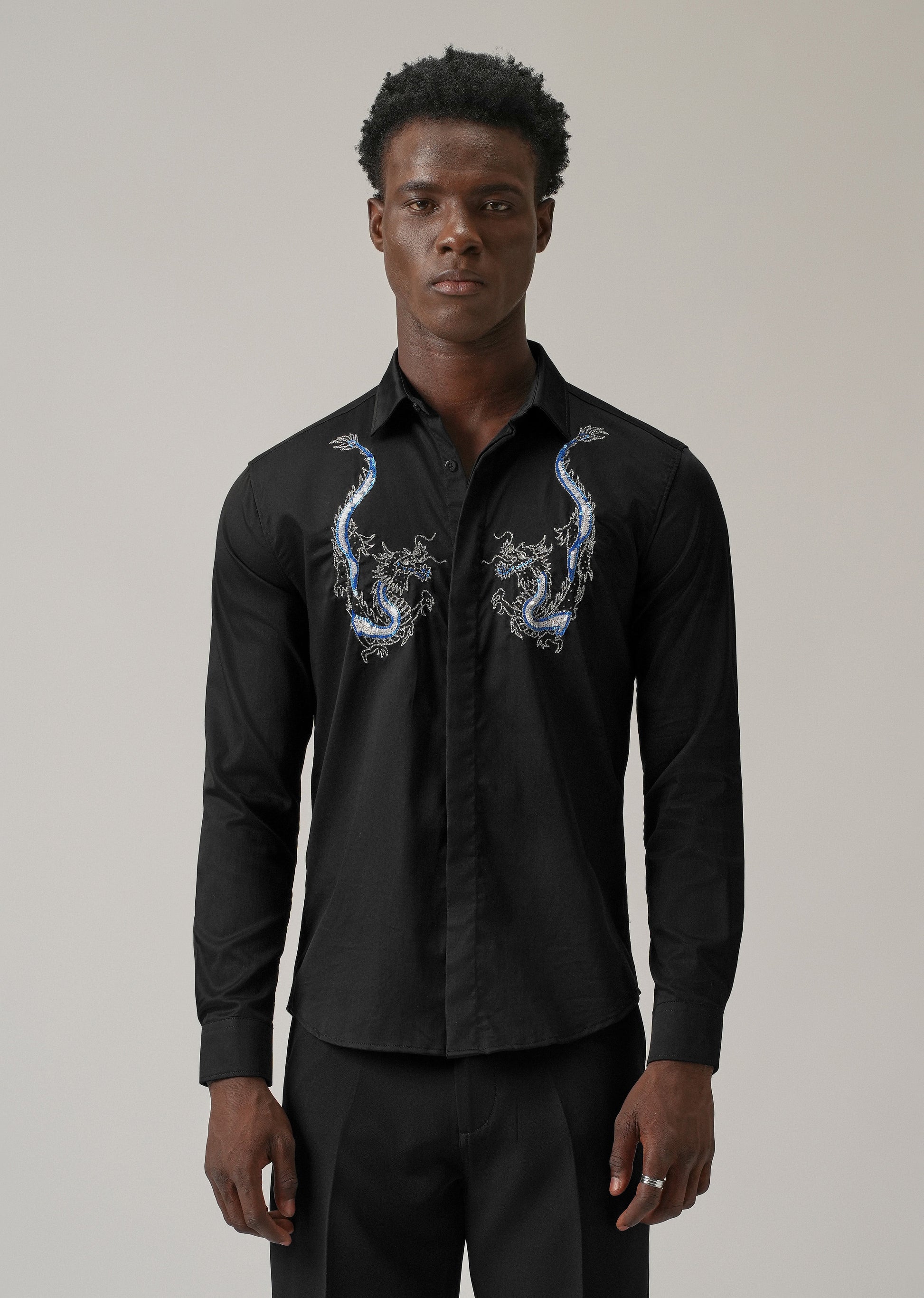 Black Handcrafted Dragon Designer Shirt