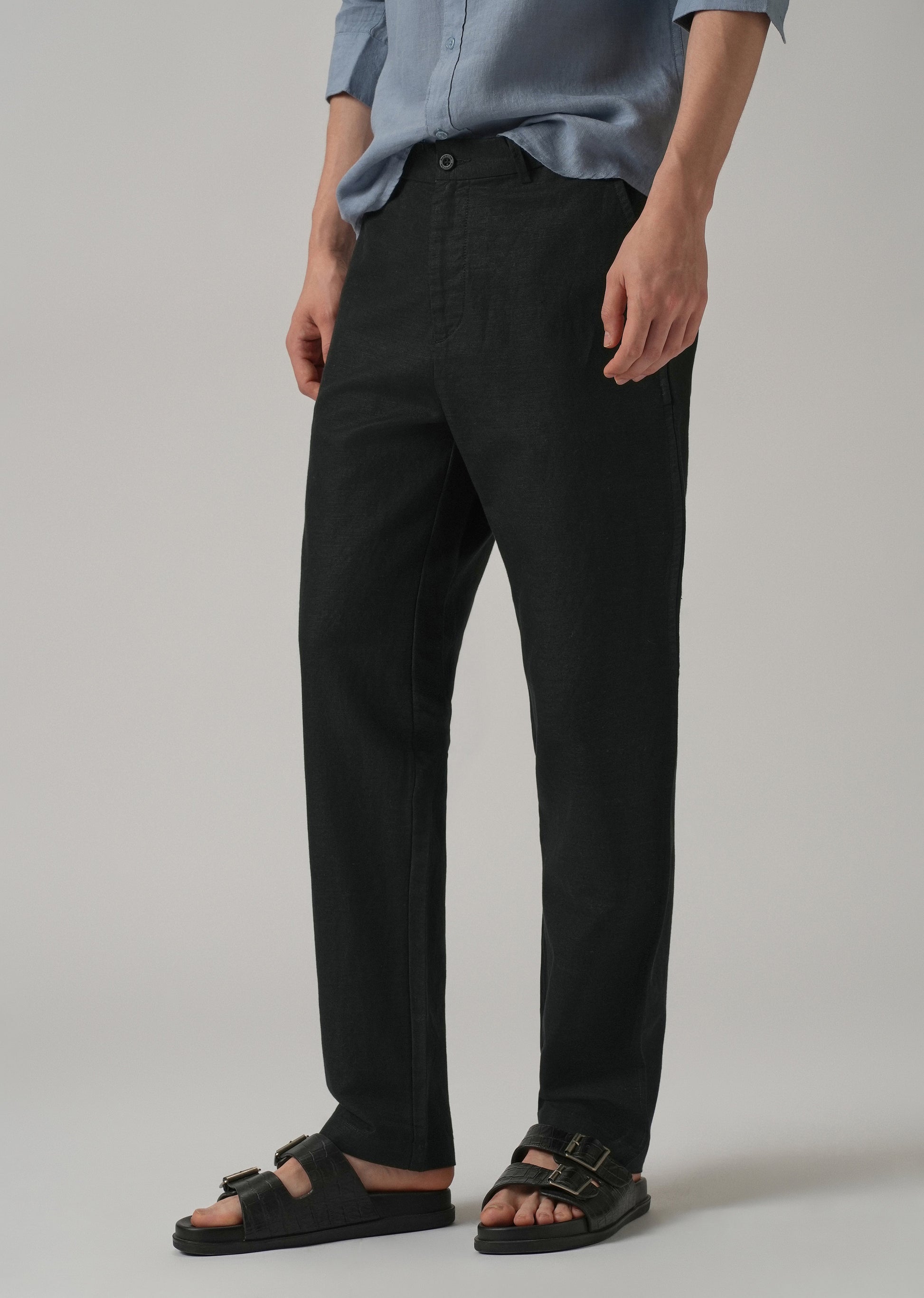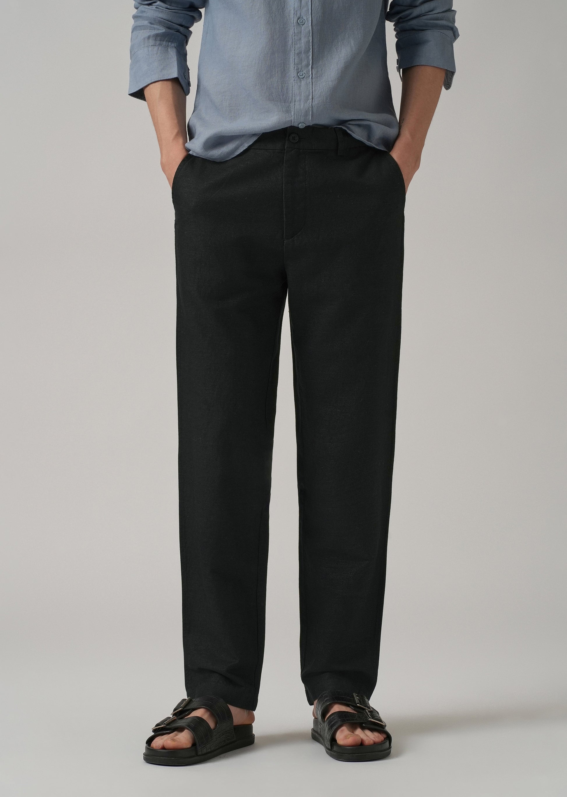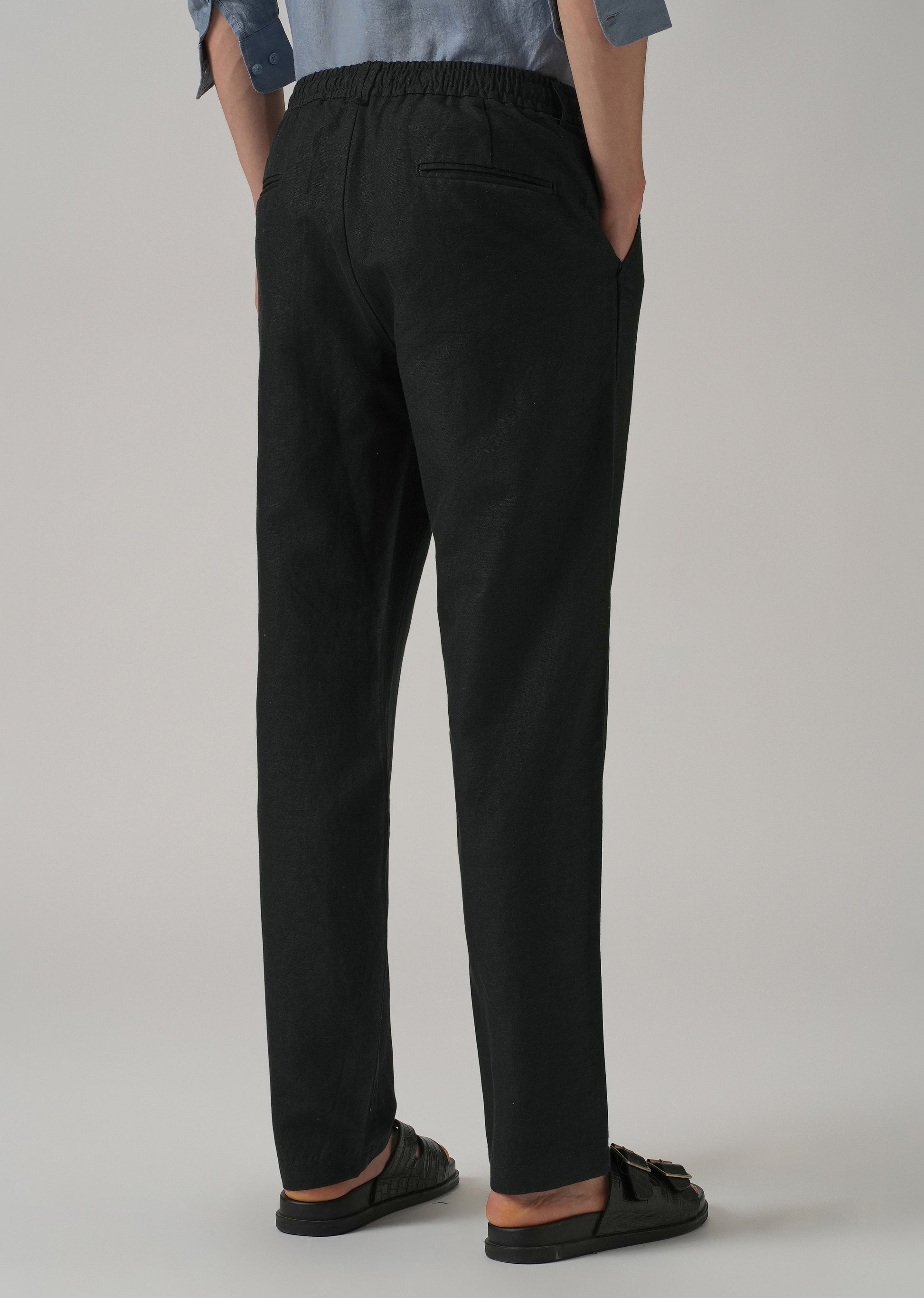 Black Linen Relaxed Fit Trouser