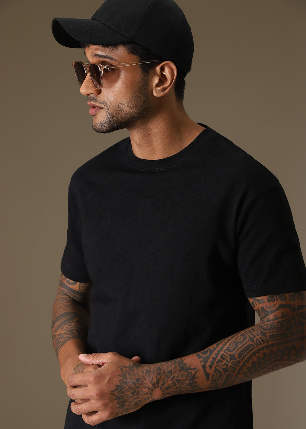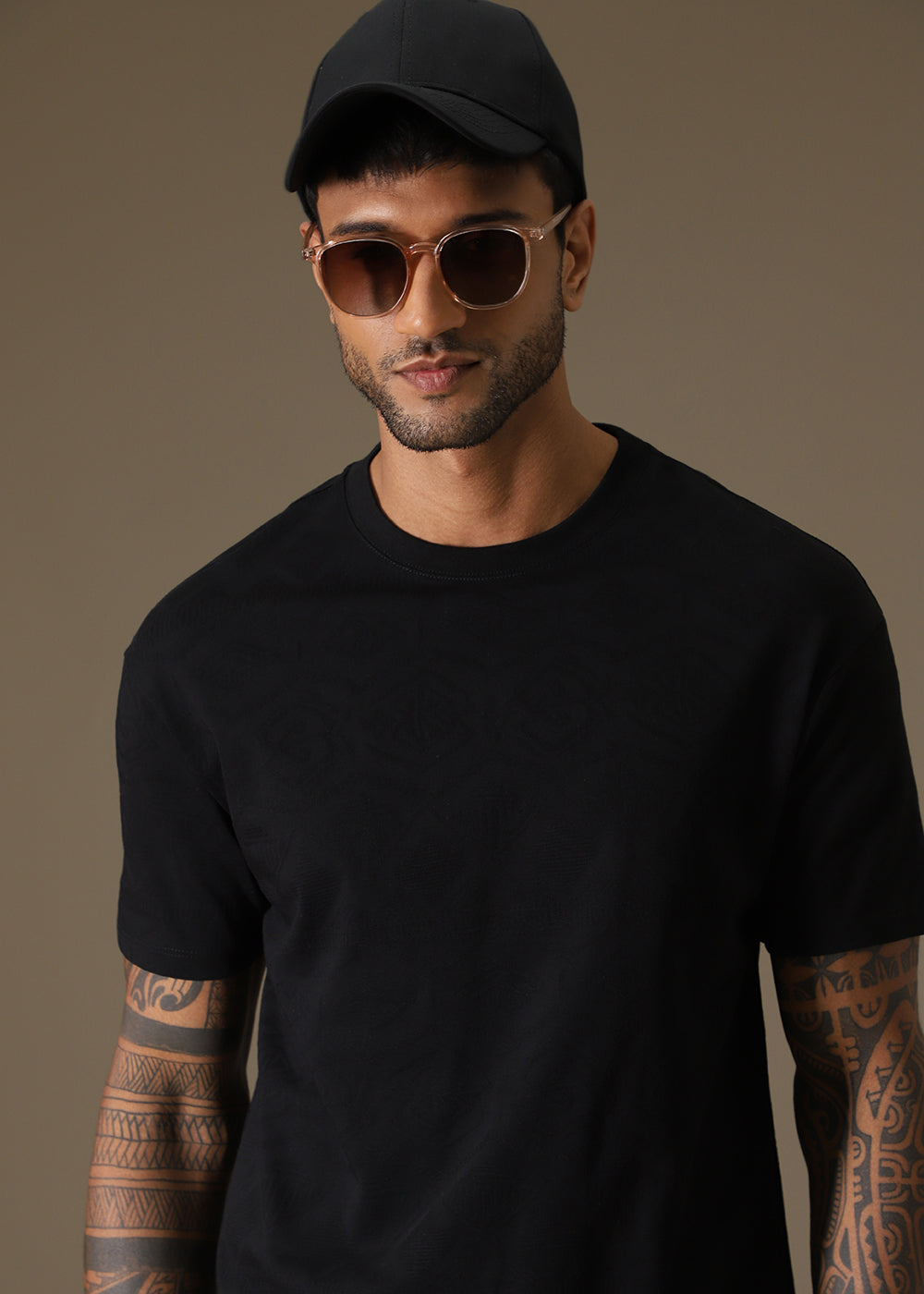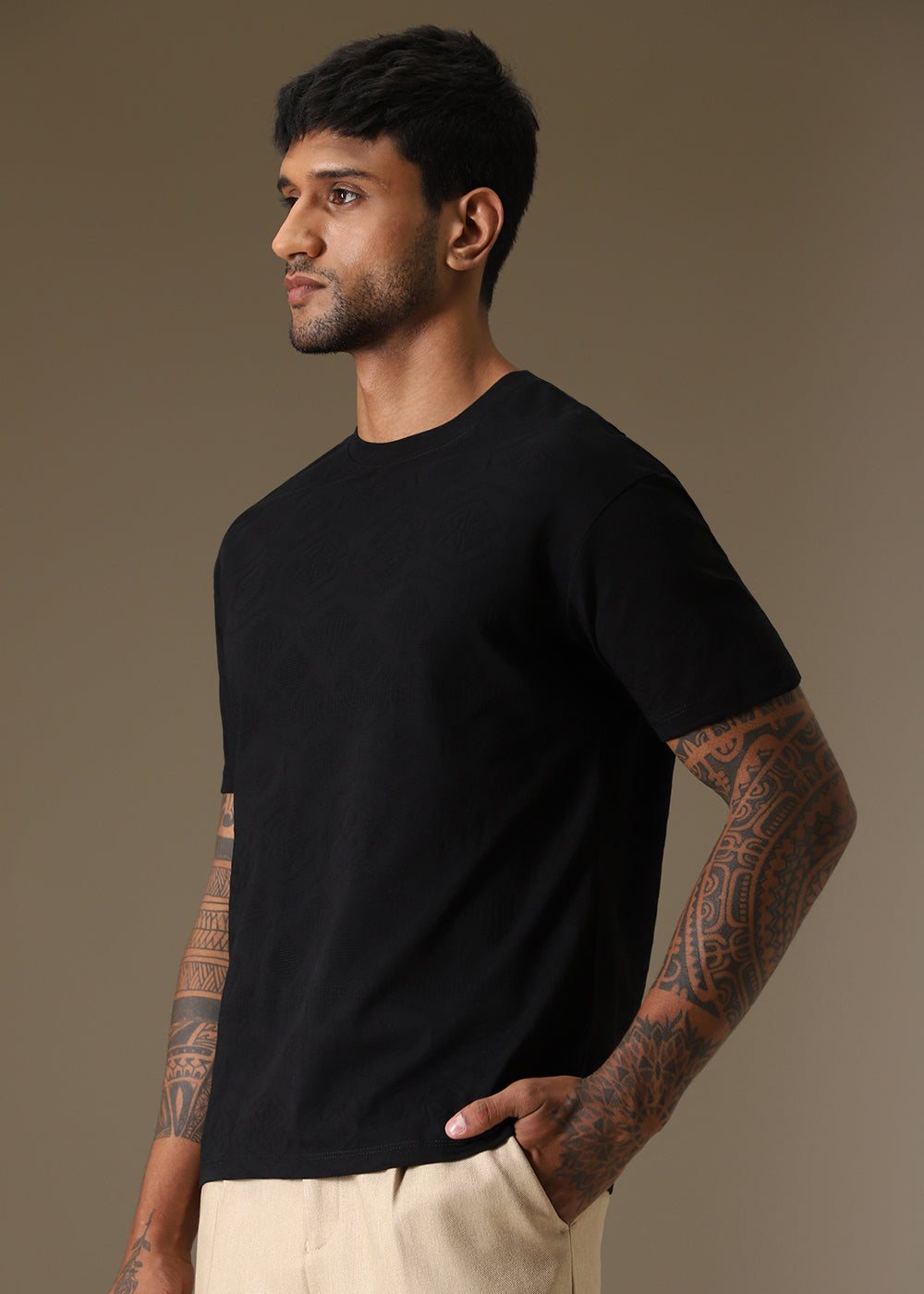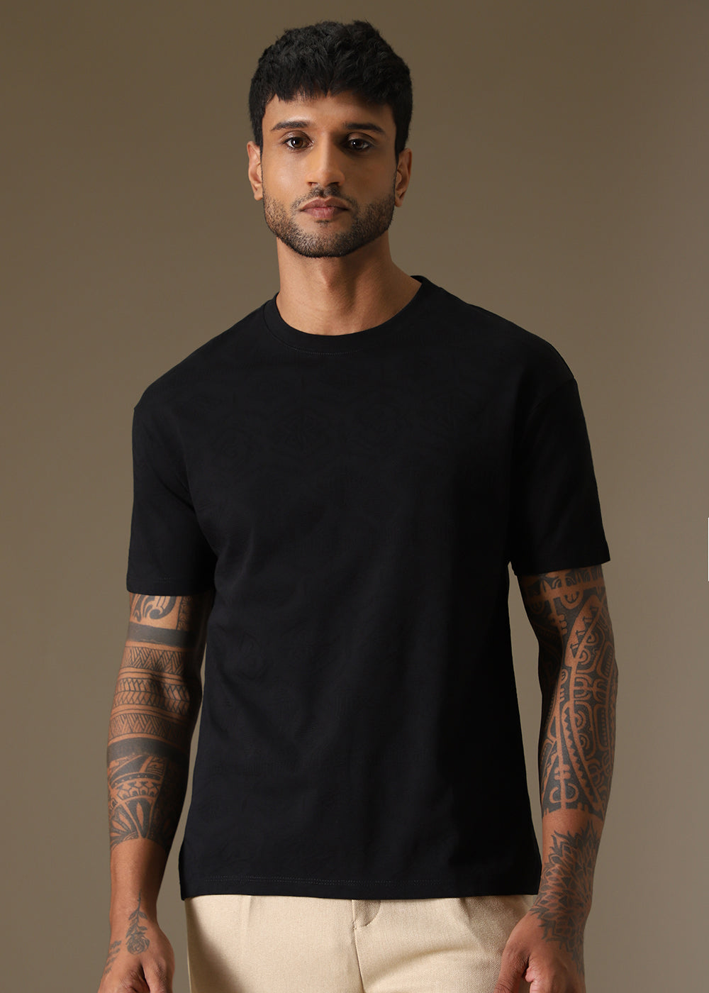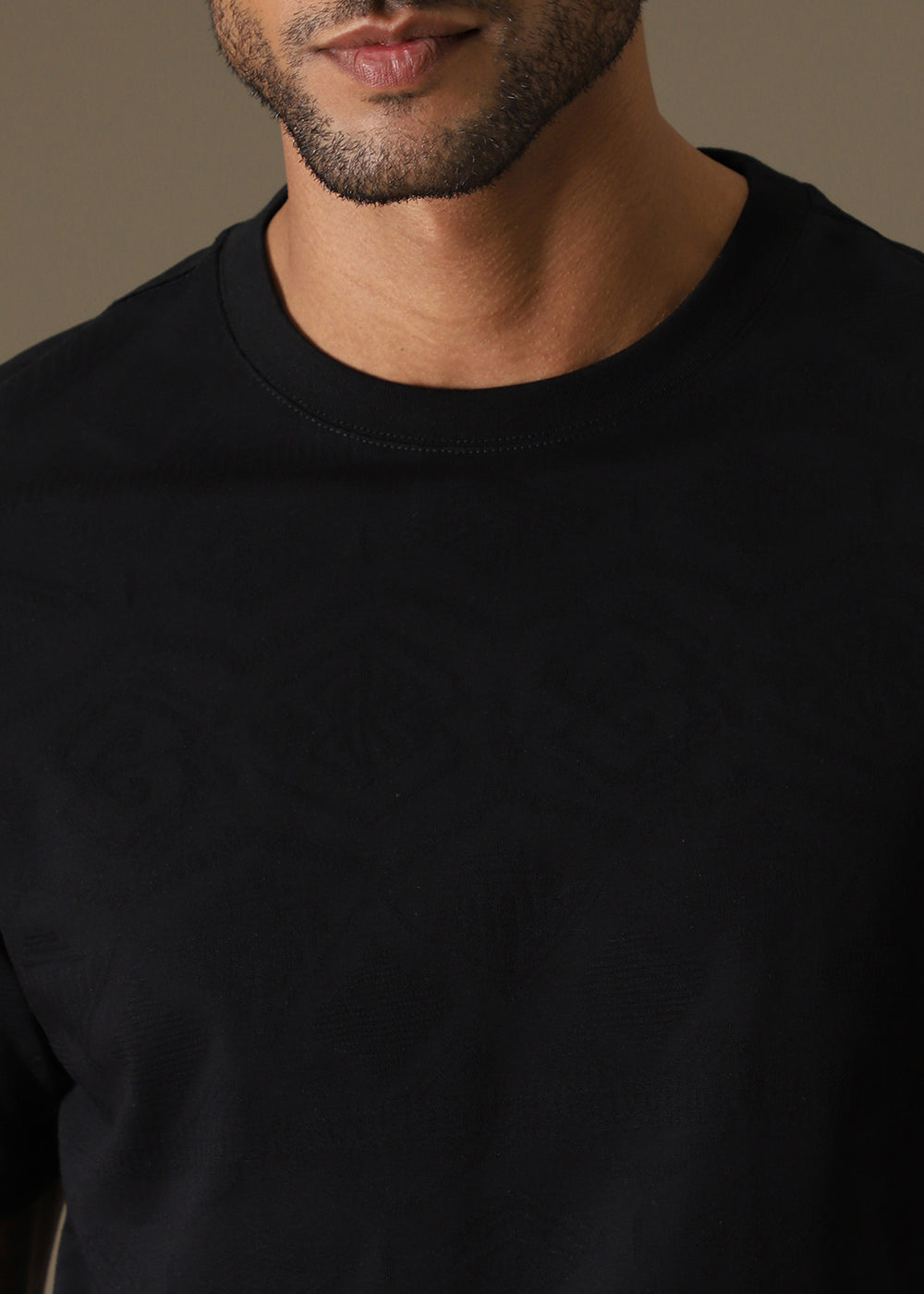 Black Self Pattern Regular T-Shirt