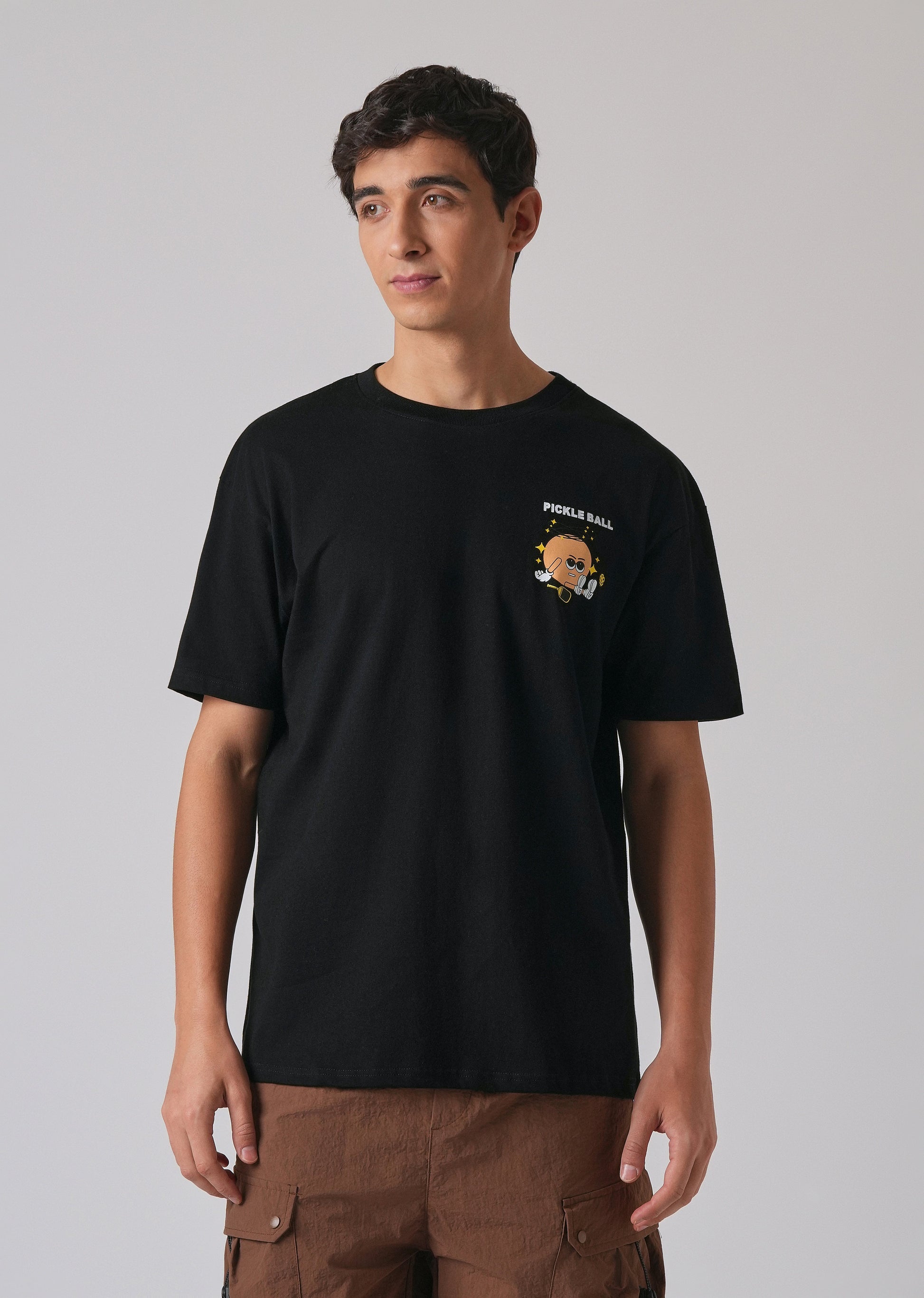 This Printed t-shirt is made for everyday comfort and laid-back style. It has a round neckline, drop shoulders, and a straight hem that give it a relaxed look. Made from soft cotton with a bit of stretch, it feels light and easy to move in. The oversized fit makes it great for casual outfits, whether you're wearing it on its own or layering it.