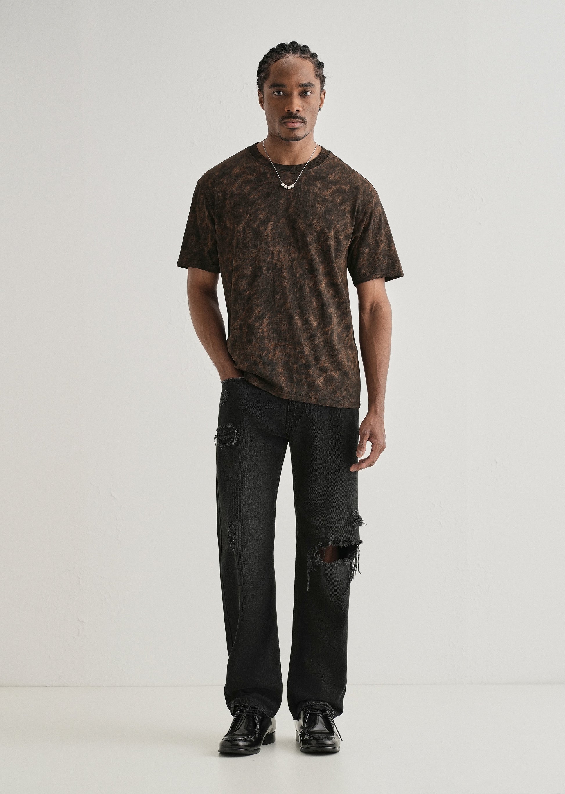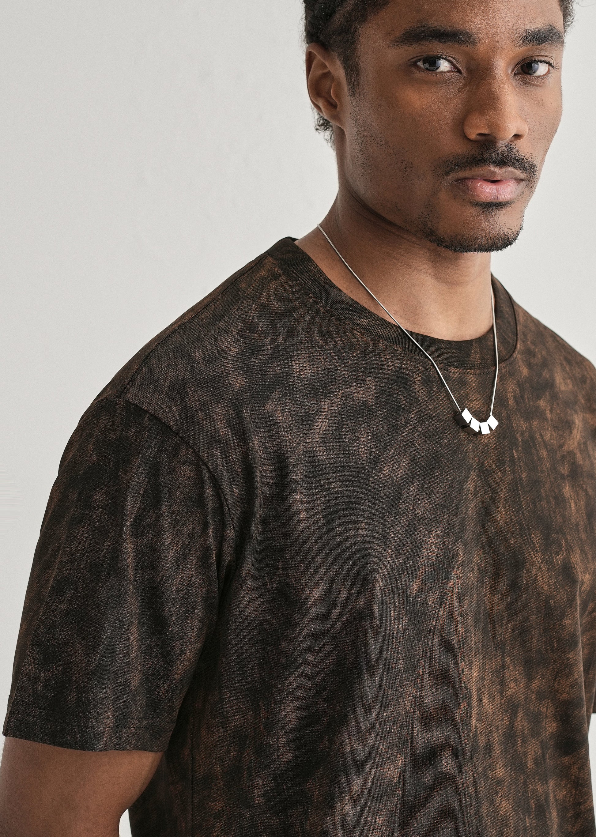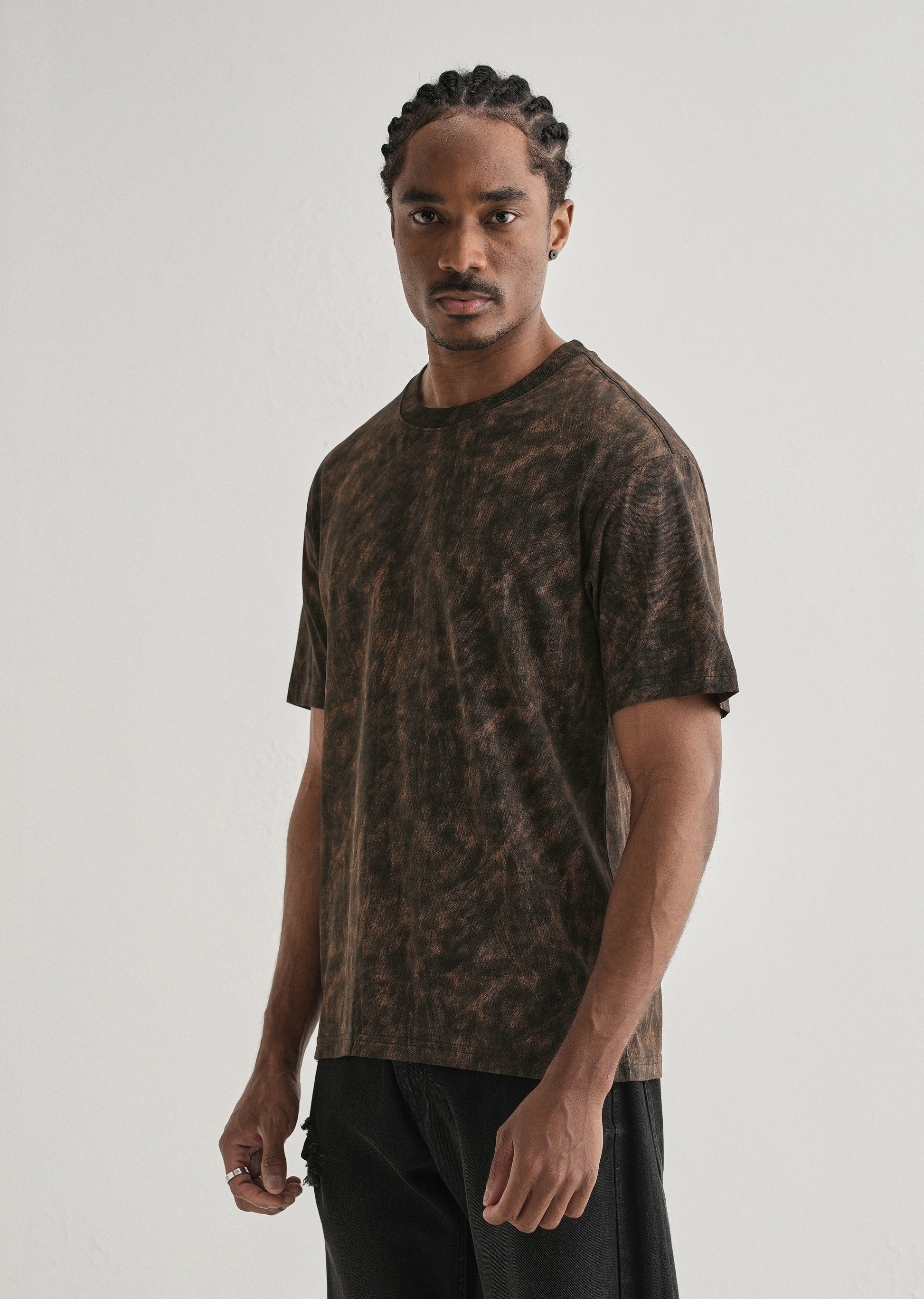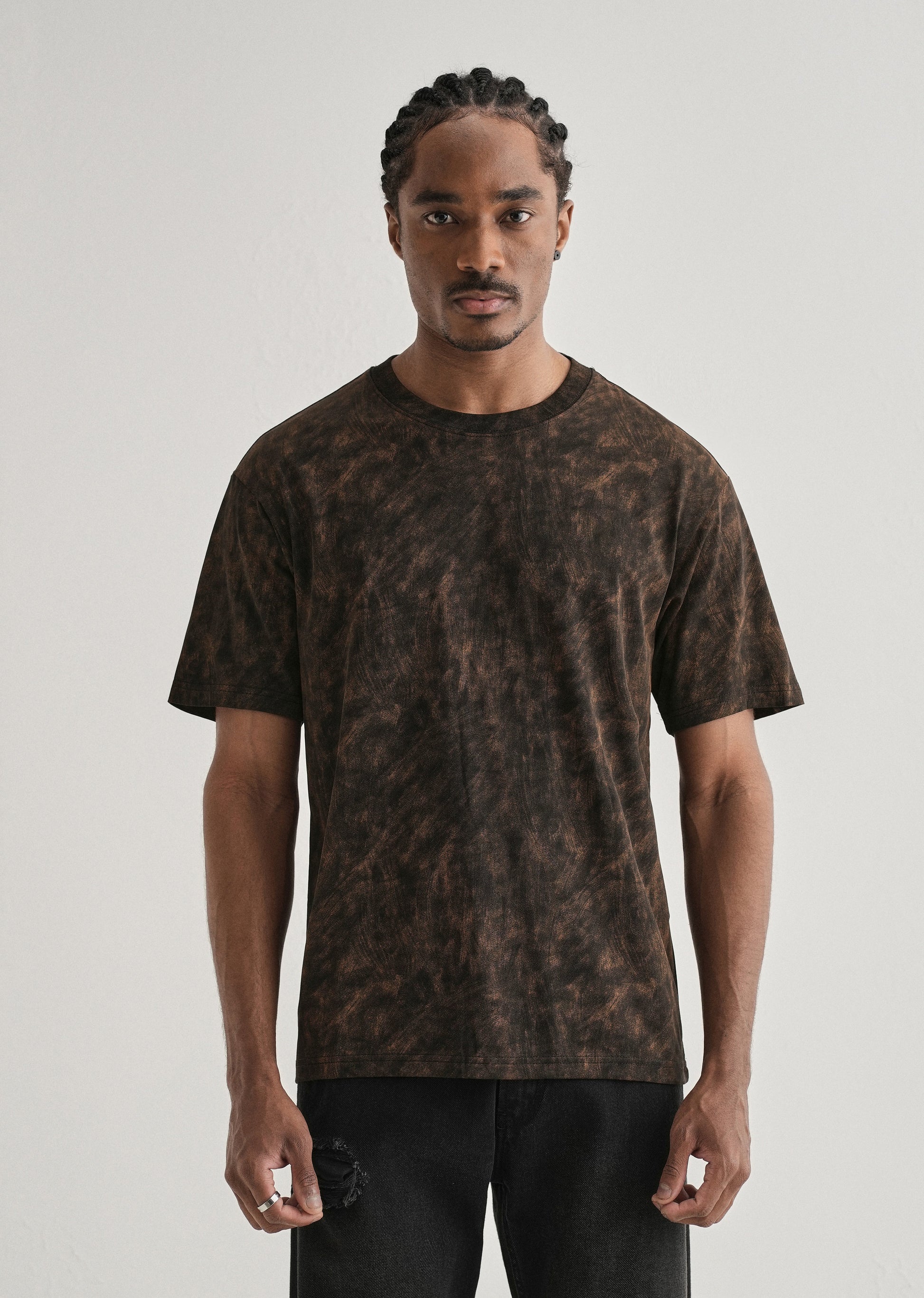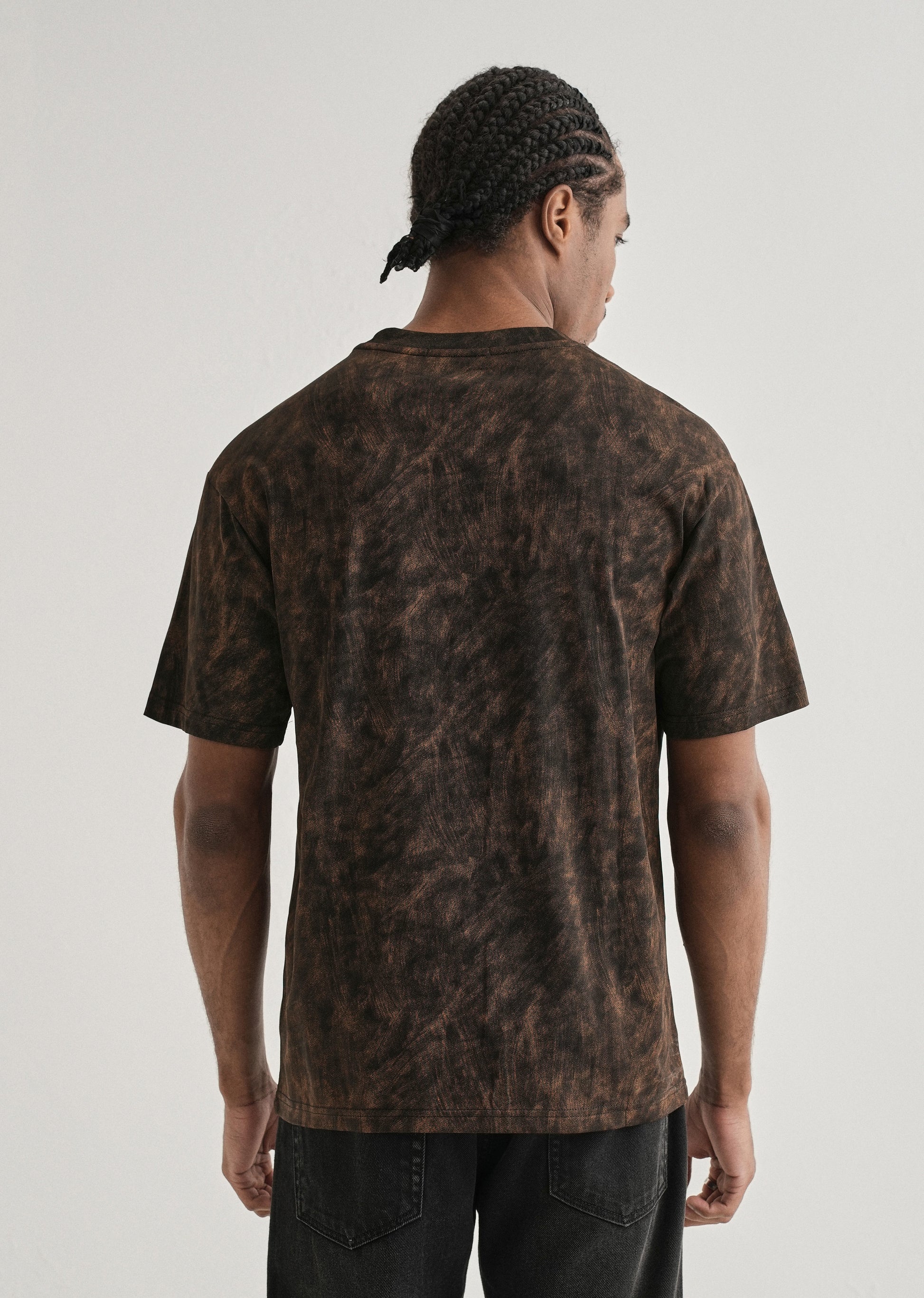 Refresh your casual edit with this brushstroke wash t-shirt. Featuring a crew neckline, half sleeves, and a relaxed silhouette, this tee is crafted from lightweight, breathable cotton-blend fabric that ensures comfort and ease of movement. The all-over washed texture effect adds a unique, lived-in appeal, making it a versatile pick for both streetwear and weekend styling.