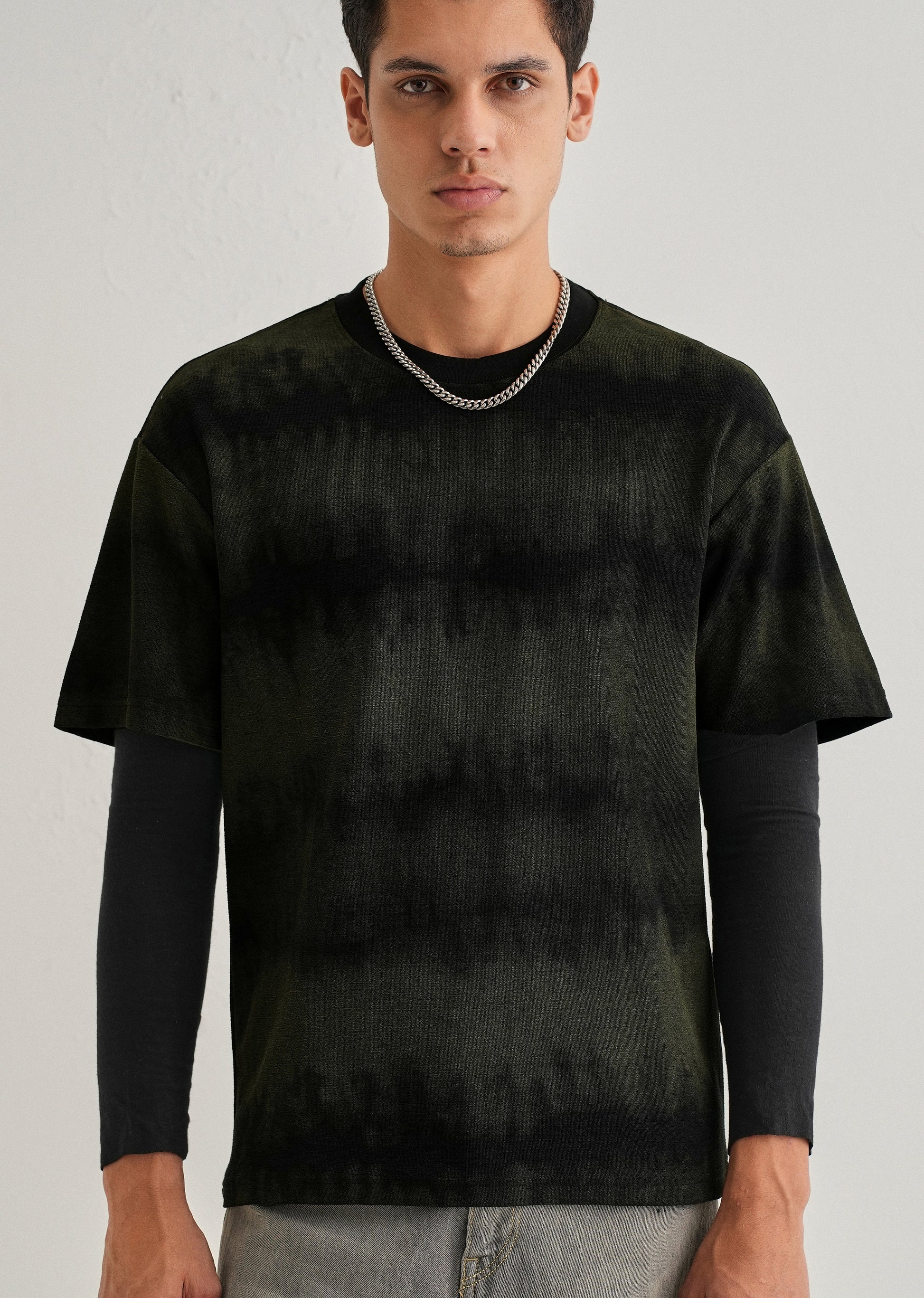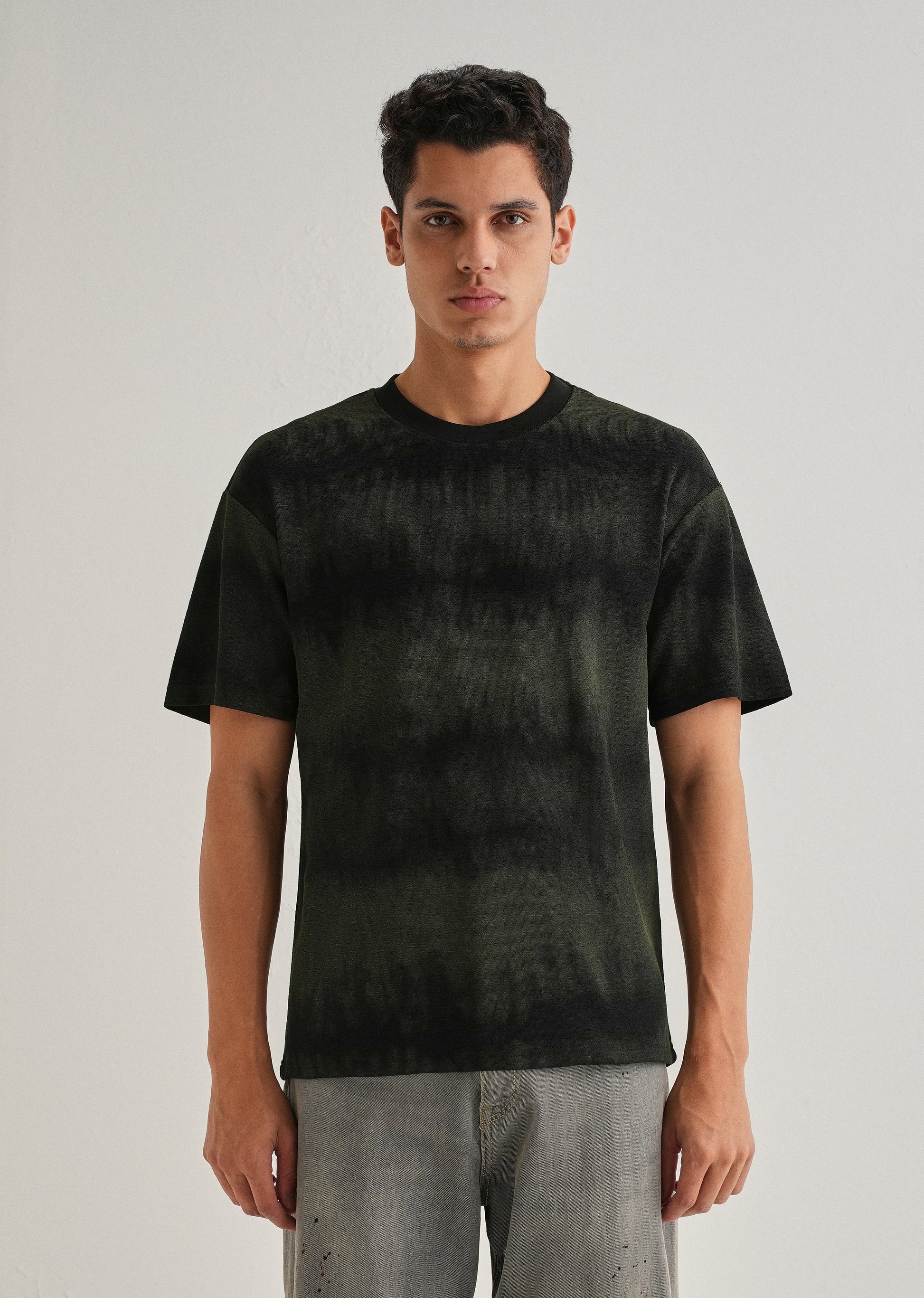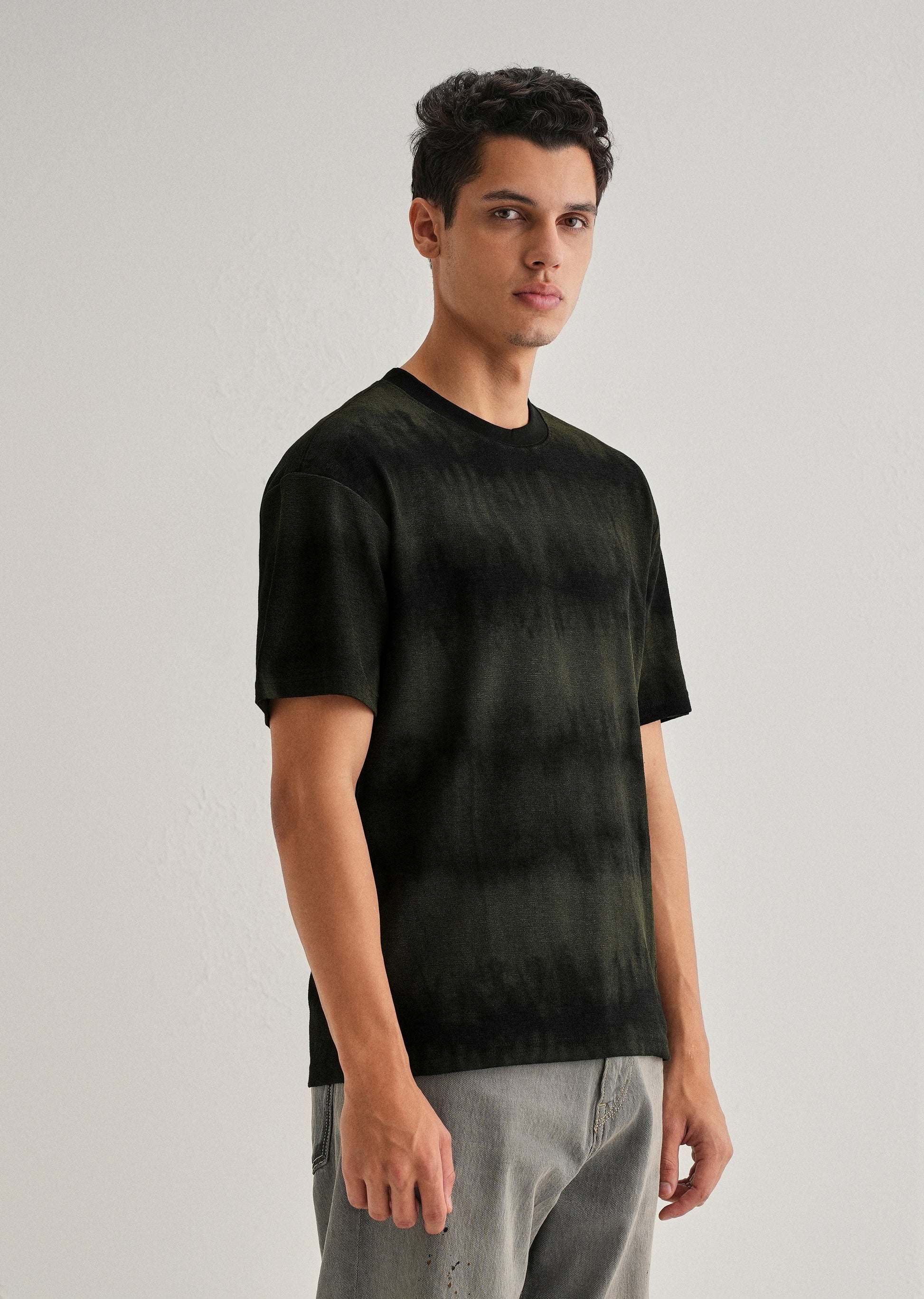 Style with this tie-dye effect textured t-shirt, designed to bring an edge to your everyday look. Crafted from premium breathable cotton-blend fabric, it ensures lasting comfort while offering a modern aesthetic. The smoky tie-dye pattern across the t-shirt adds a unique, streetwear-inspired touch, making it a versatile piece for casual outings. Finished with a classic crew neckline, short sleeves, and a relaxed silhouette.