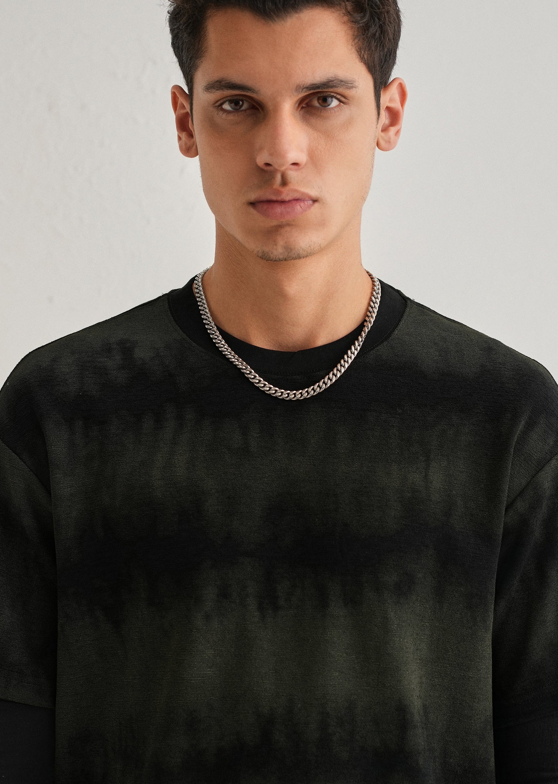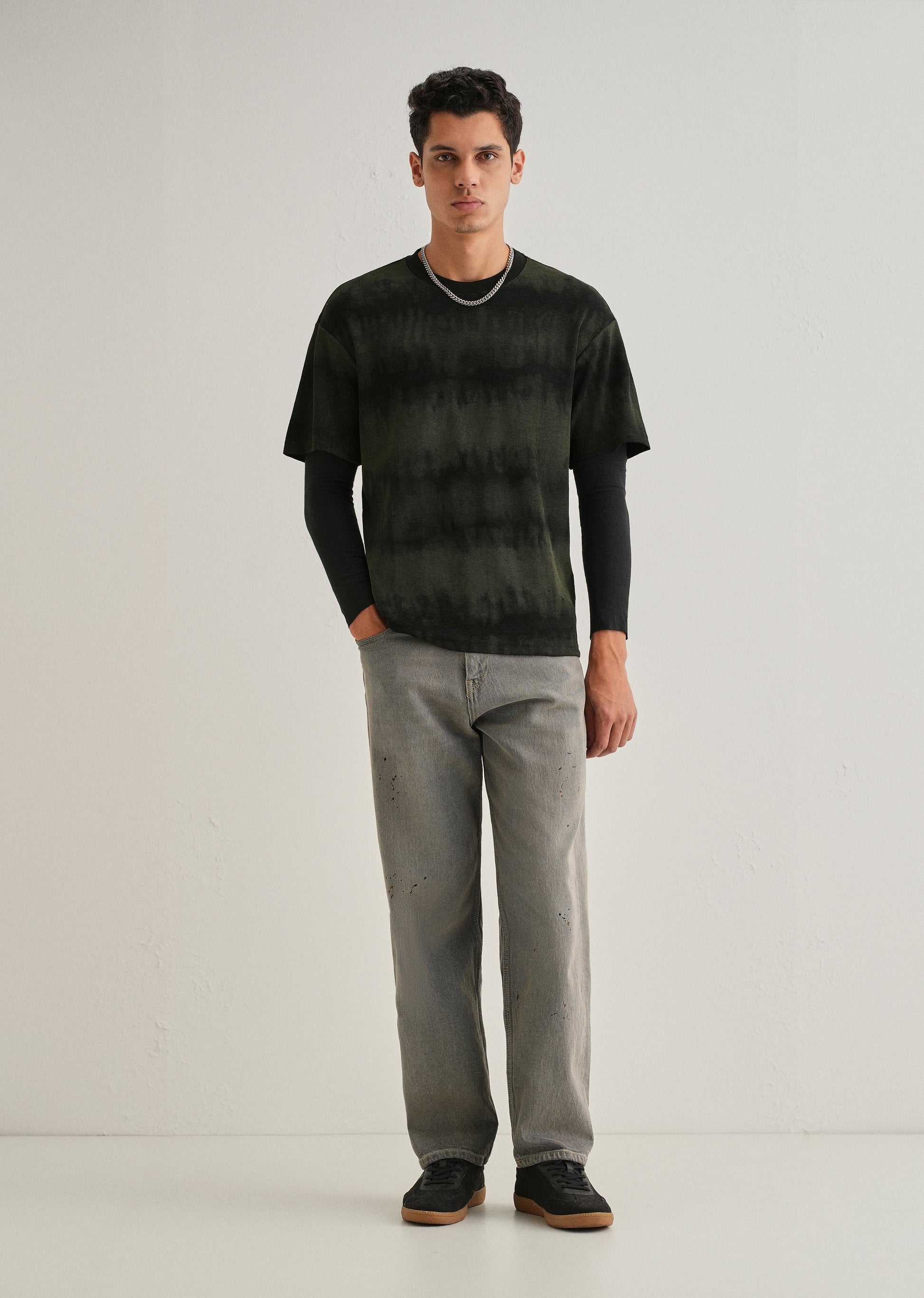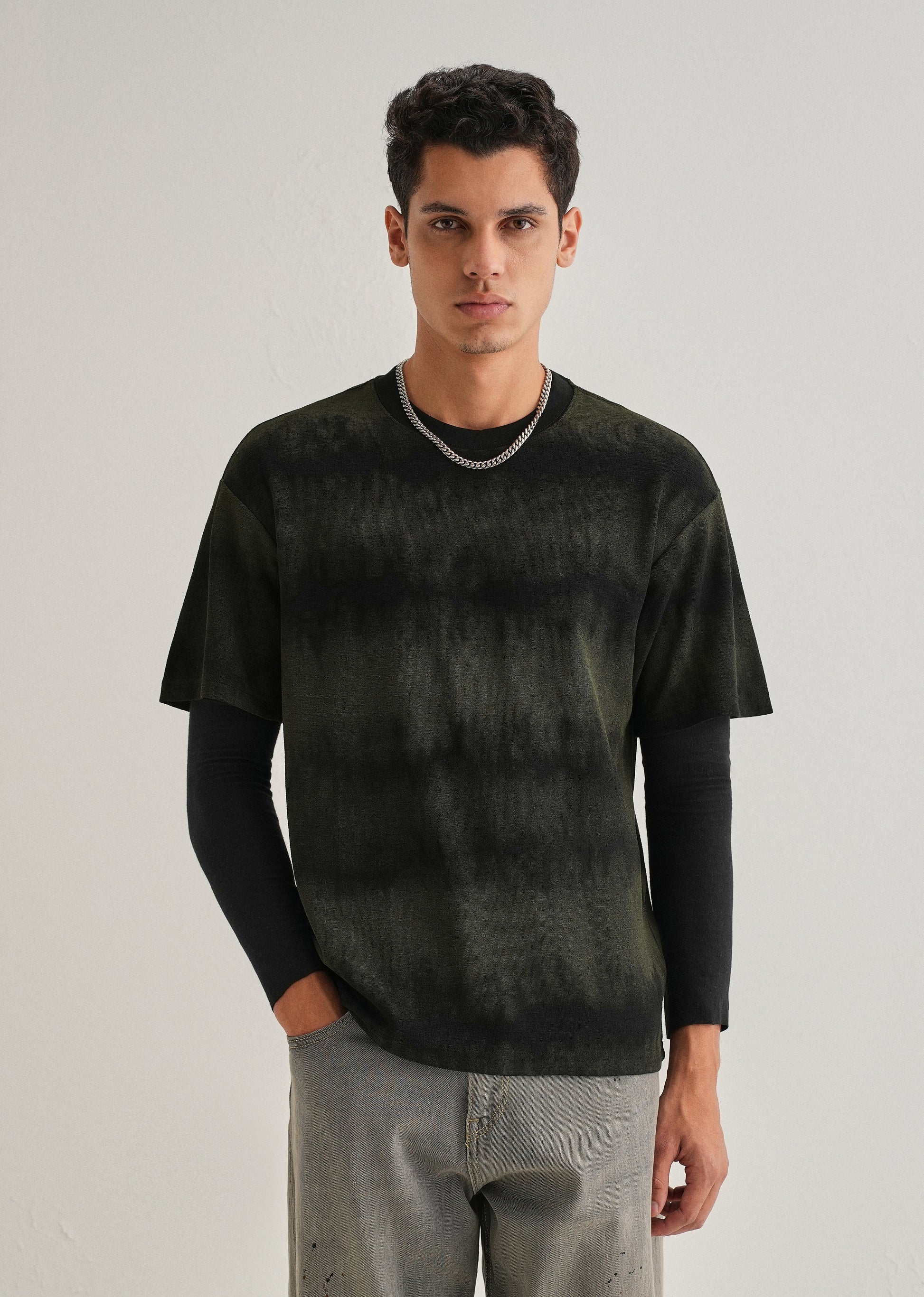 Style with this tie-dye effect textured t-shirt, designed to bring an edge to your everyday look. Crafted from premium breathable cotton-blend fabric, it ensures lasting comfort while offering a modern aesthetic. The smoky tie-dye pattern across the t-shirt adds a unique, streetwear-inspired touch, making it a versatile piece for casual outings. Finished with a classic crew neckline, short sleeves, and a relaxed silhouette.