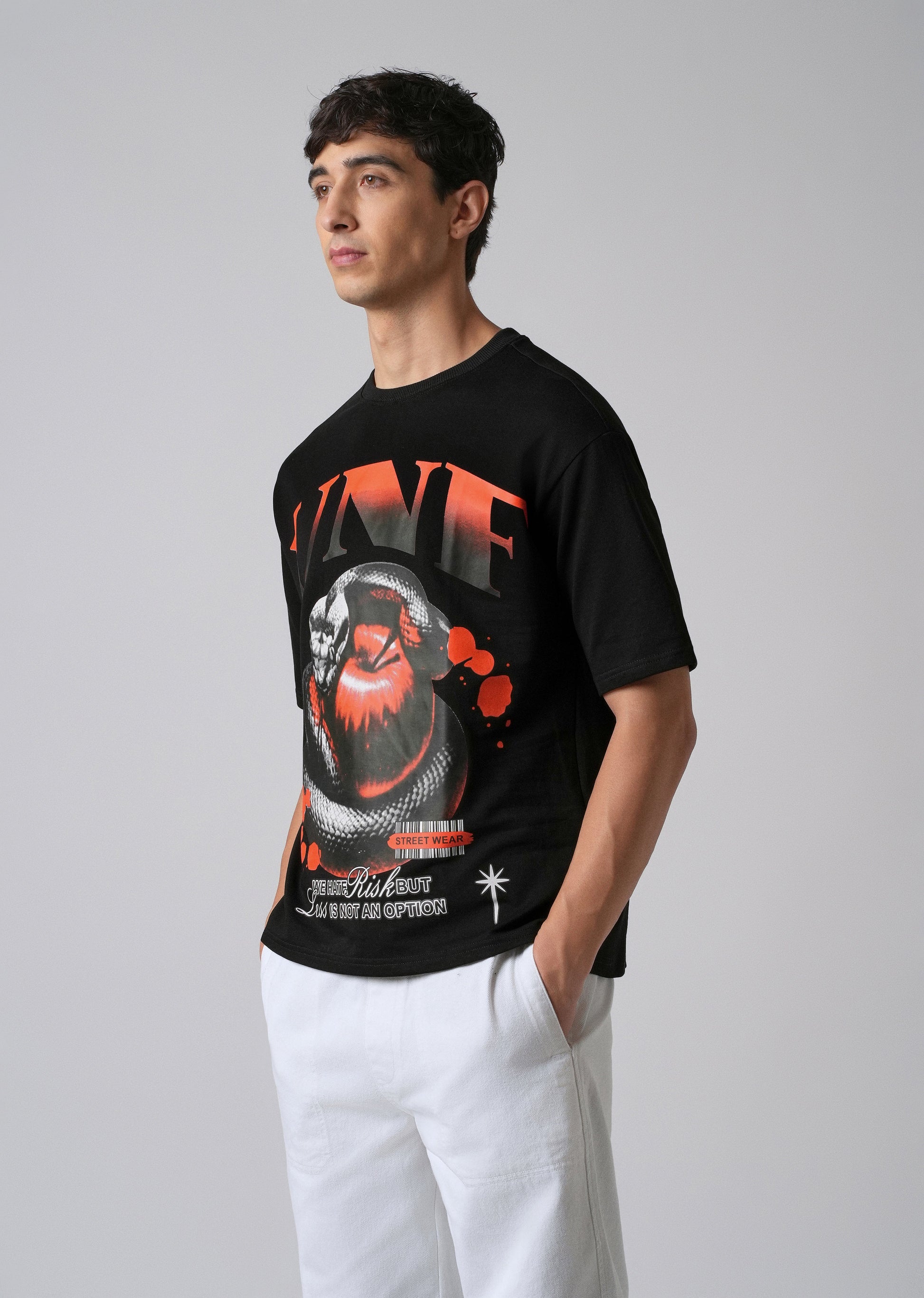 This Printed t-shirt is made for everyday comfort and laid-back style. It has a round neckline, drop shoulders, and a straight hem that give it a relaxed look. Made from soft cotton with a bit of stretch, it feels light and easy to move in. The relaxed fit makes it great for casual outfits, whether you're wearing it on its own or layering it.