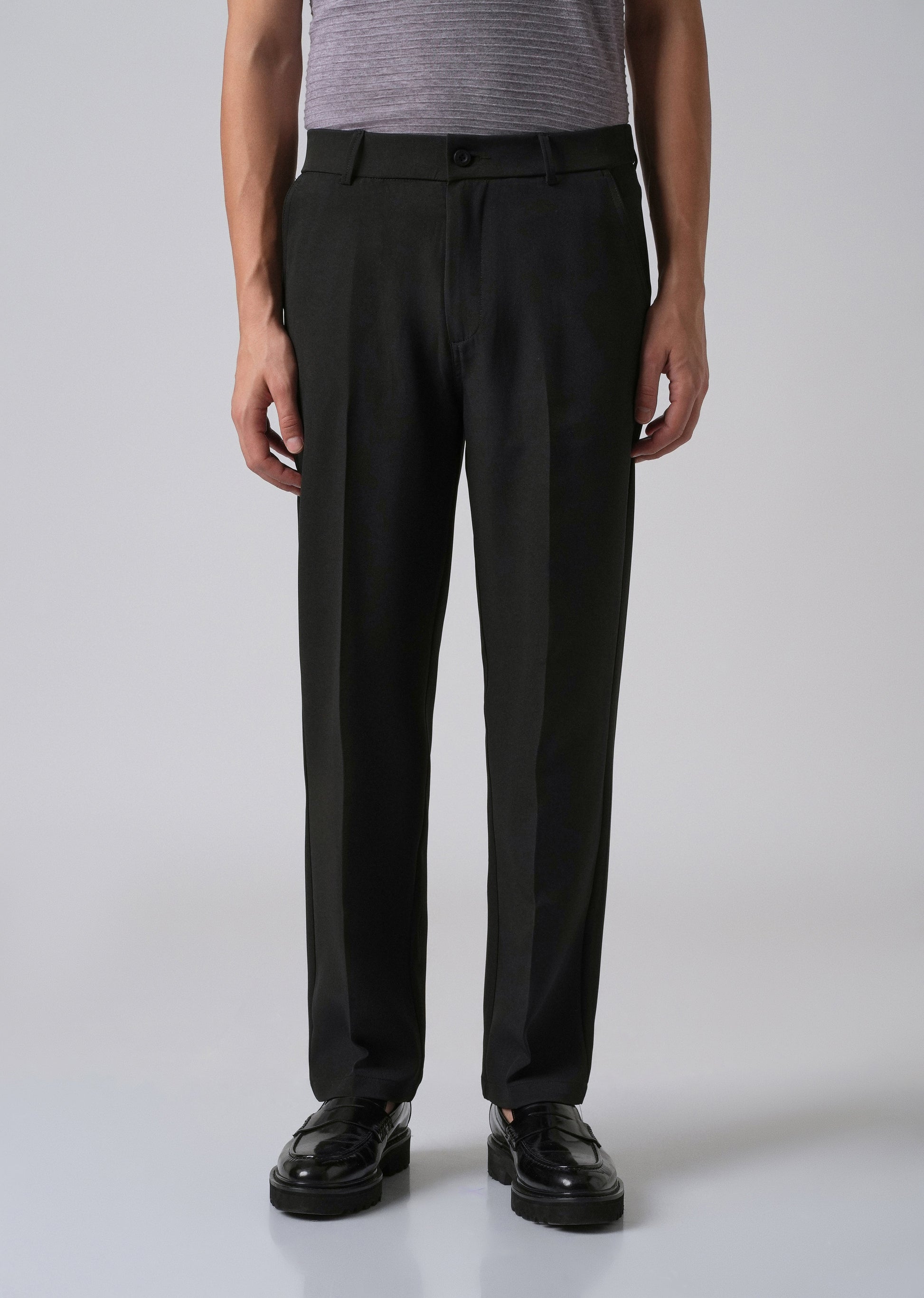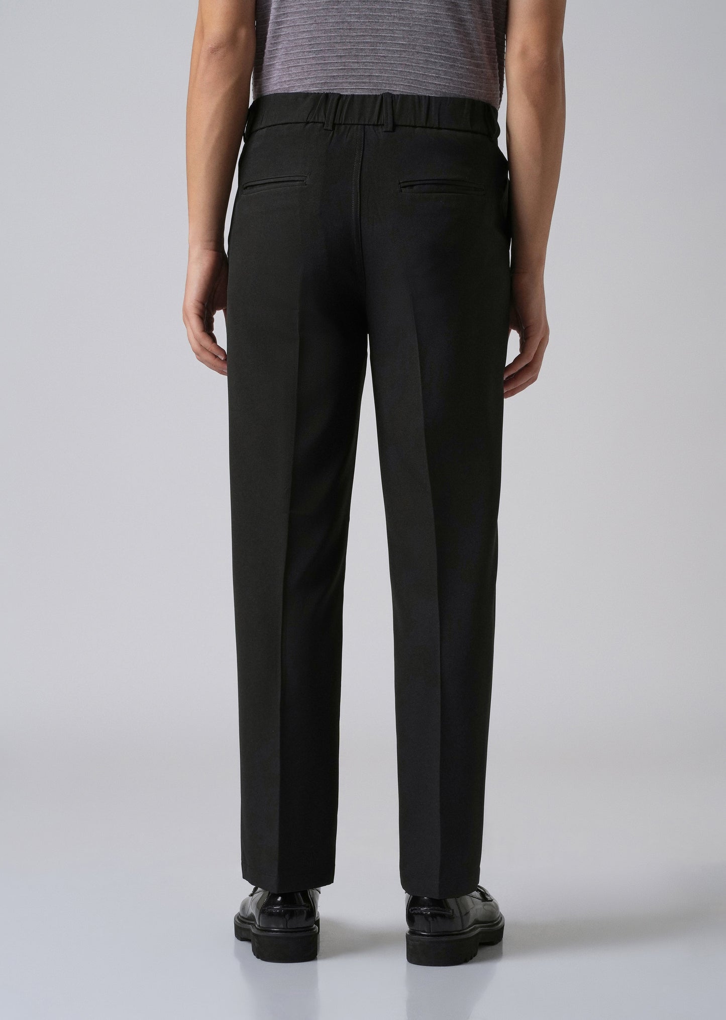 These trousers combine comfort and style with a semi-elasticated waistband and belt loops for a flexible yet polished fit. They feature a button and zipper closure, two side pockets, and two back welt pockets for everyday convenience. Made from a 96% polyester, 4% spandex blend, they offer gentle stretch and hold their shape—perfect for both casual and smart-casual wear.