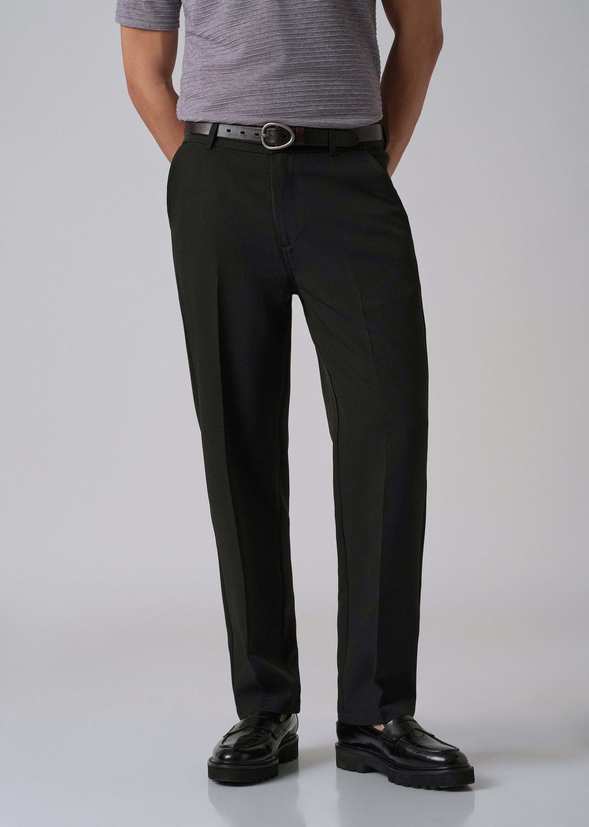 - Semi-elasticated waist with belt loops for a tailored yet flexible fit.