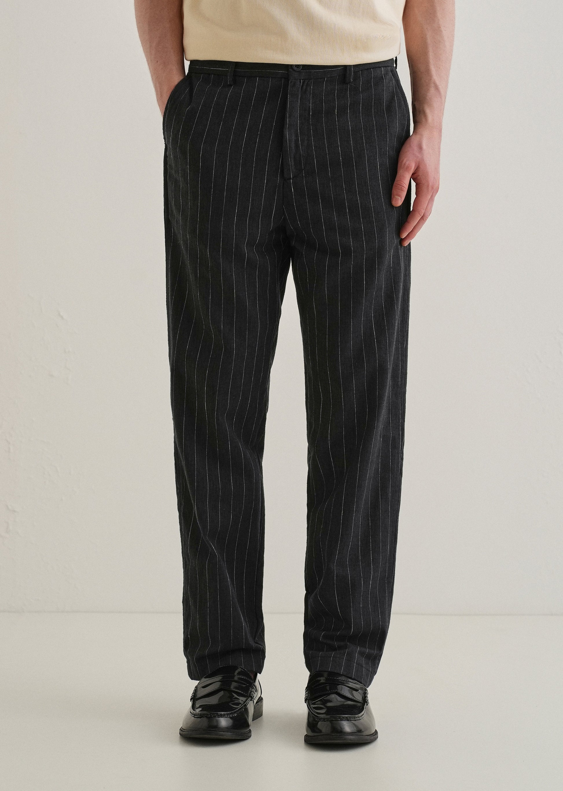Black Stripe Relaxed Linen Trouser