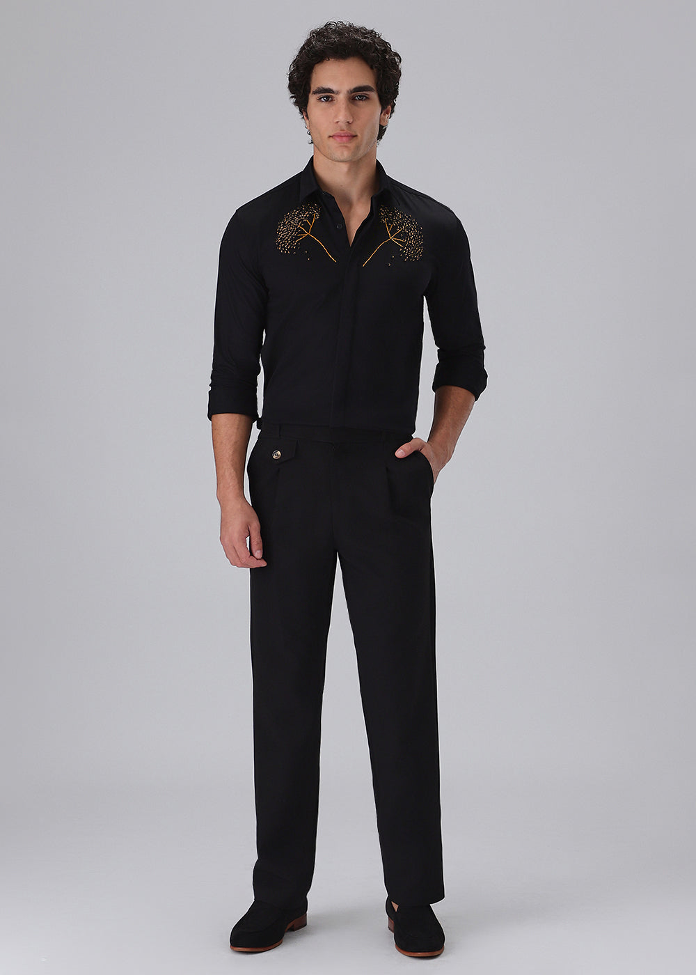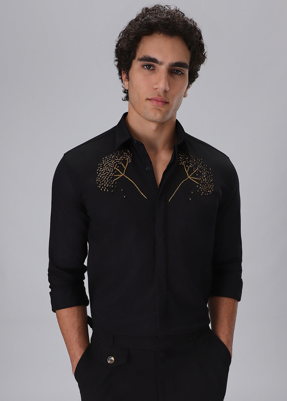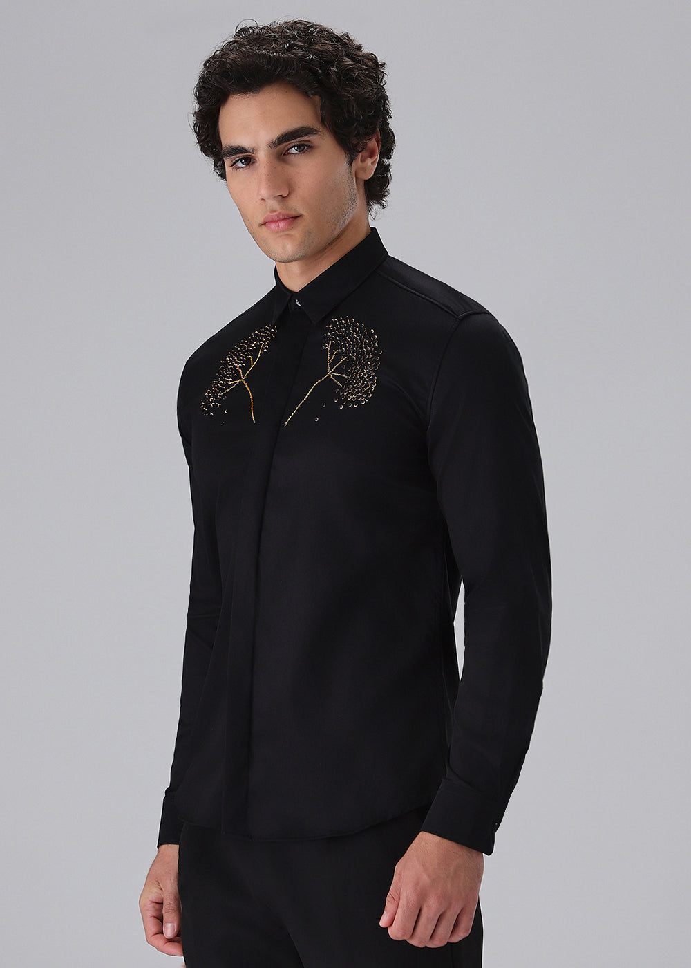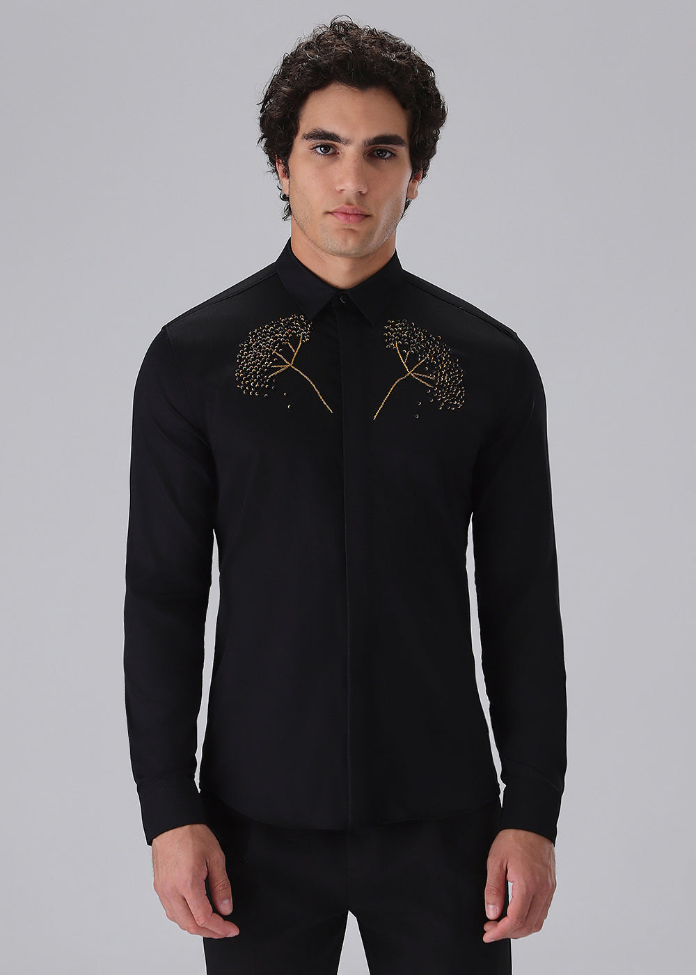 Hand Embroidered Black Designer Shirt