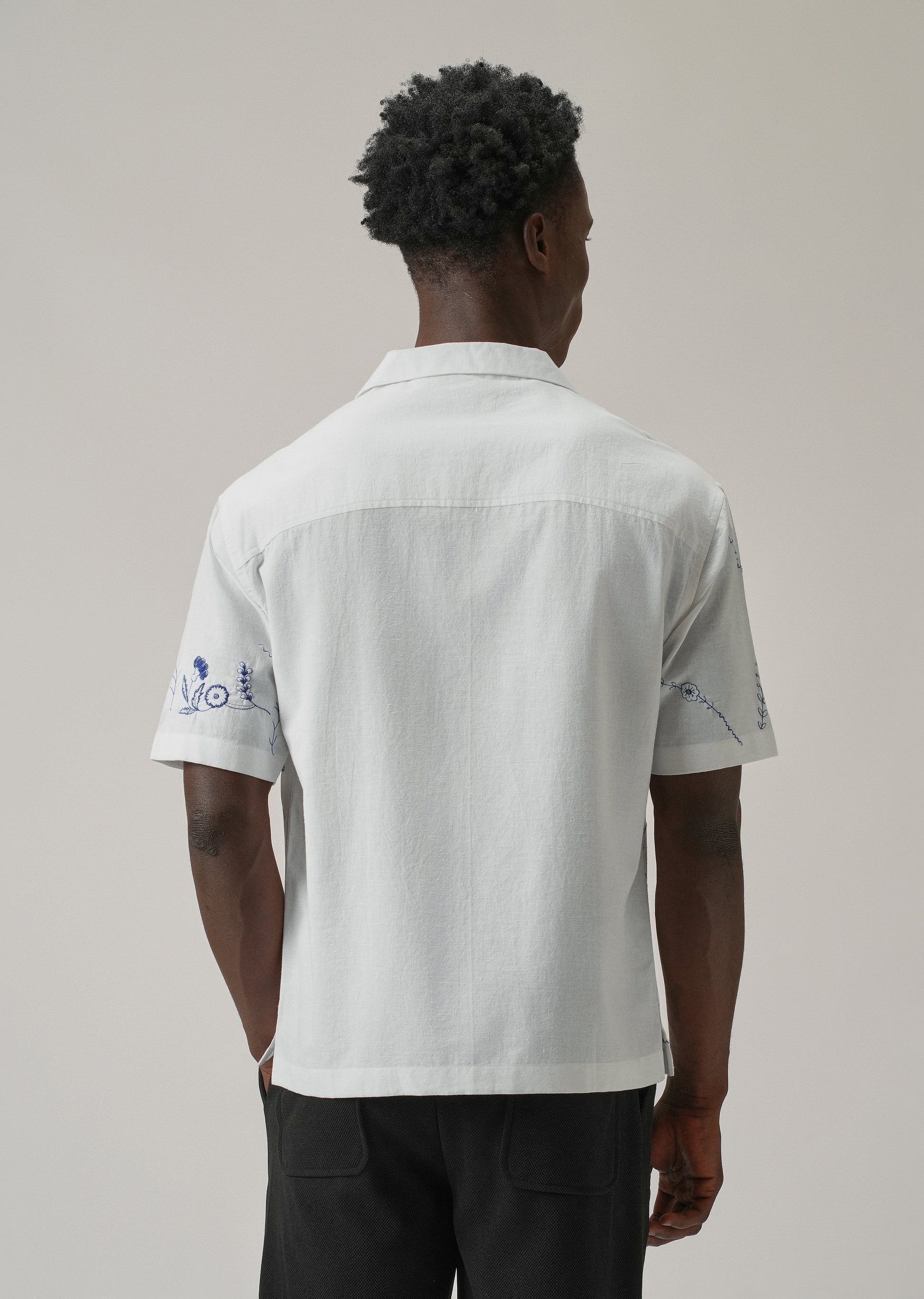 Blue Floral Embroidery Linen Shirt