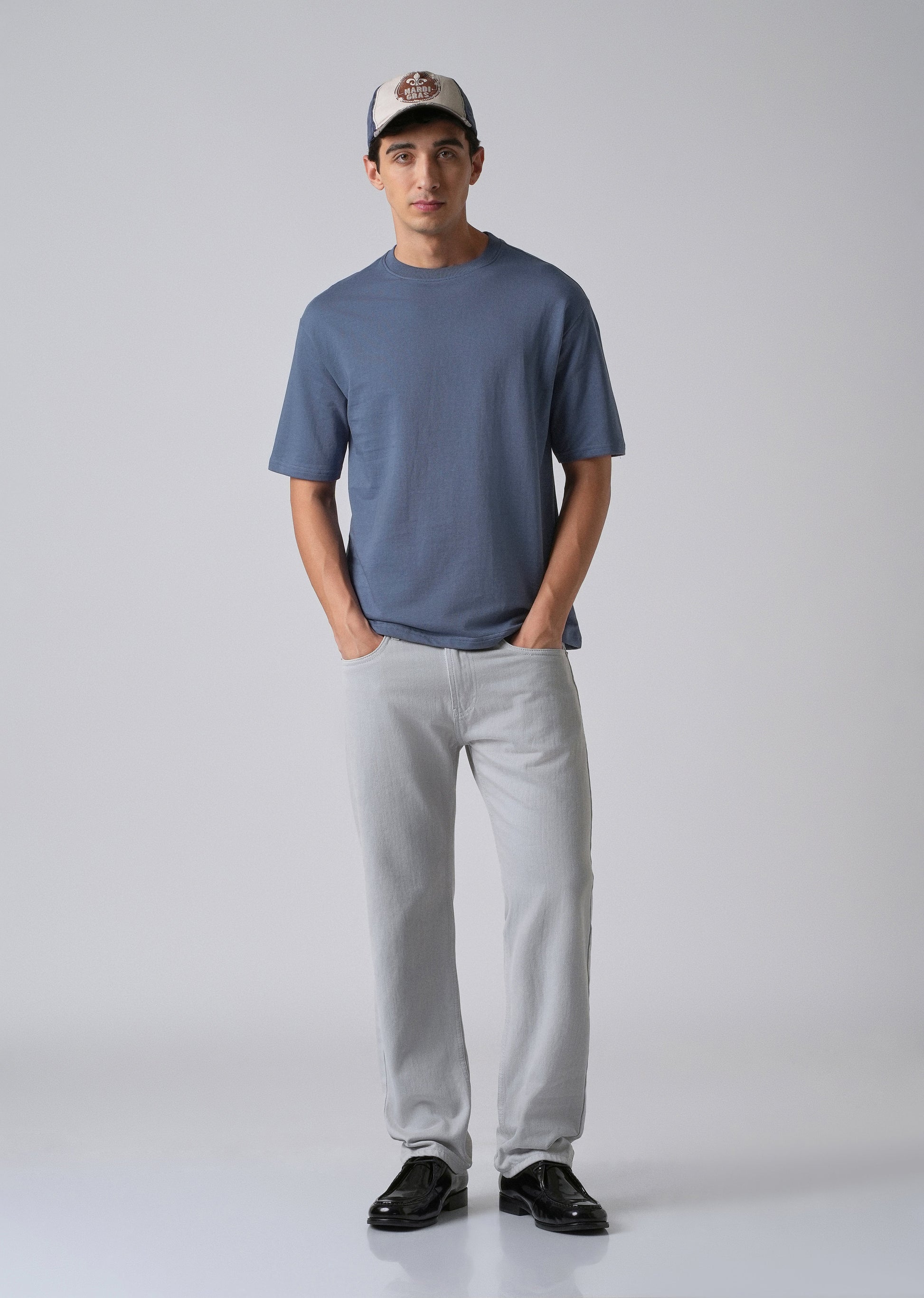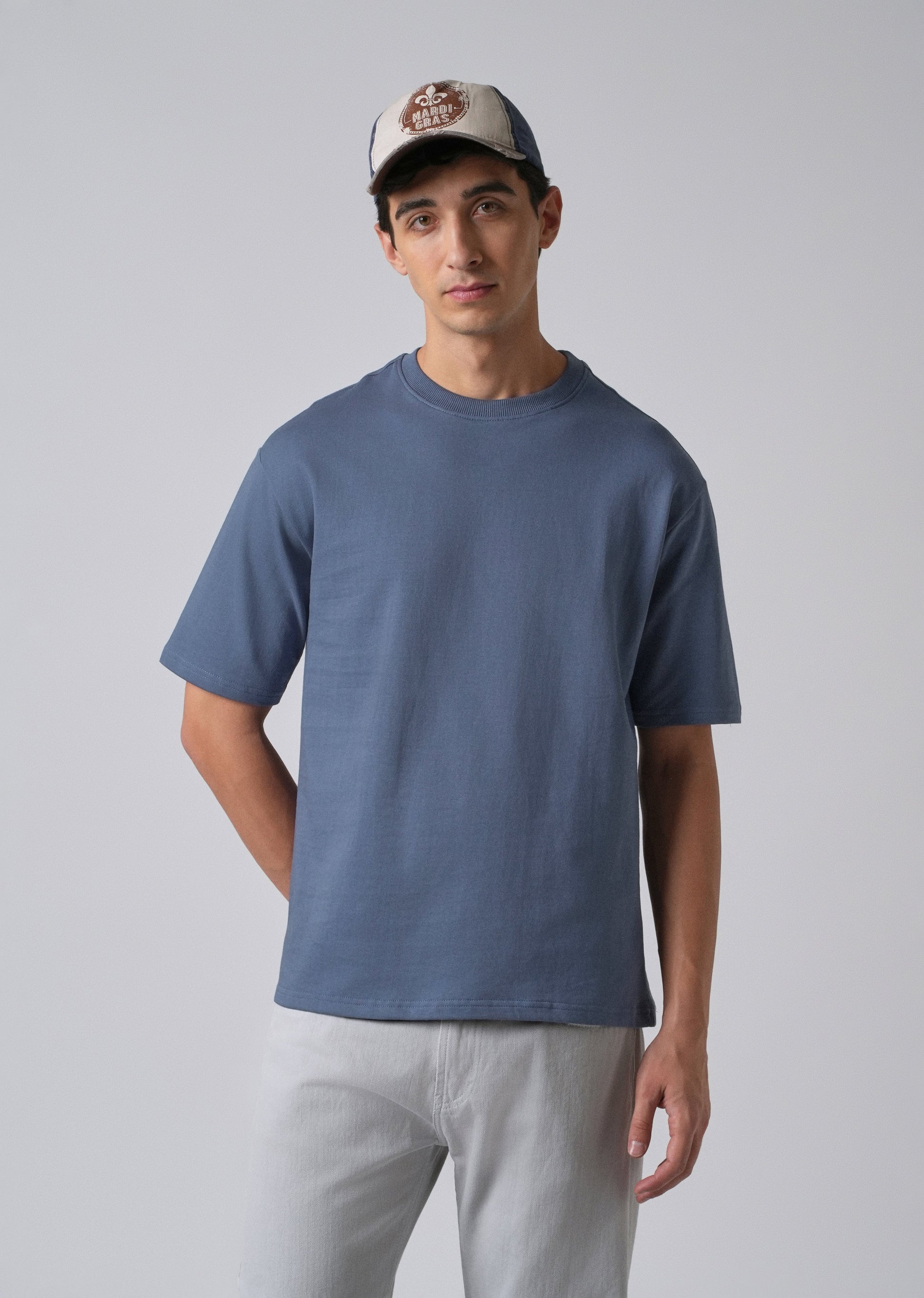 This basic t-shirt features a round crew neckline, drop shoulder sleeves, and a straight hemline, creating a clean and relaxed look. The relaxed fit offers everyday comfort, while the cotton fabric with light stretch ensures breathability and easy movement—making it a versatile piece for casual wear.