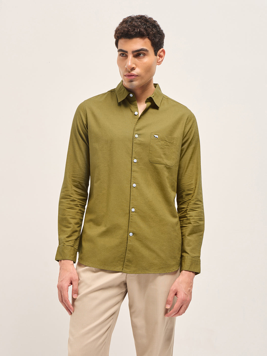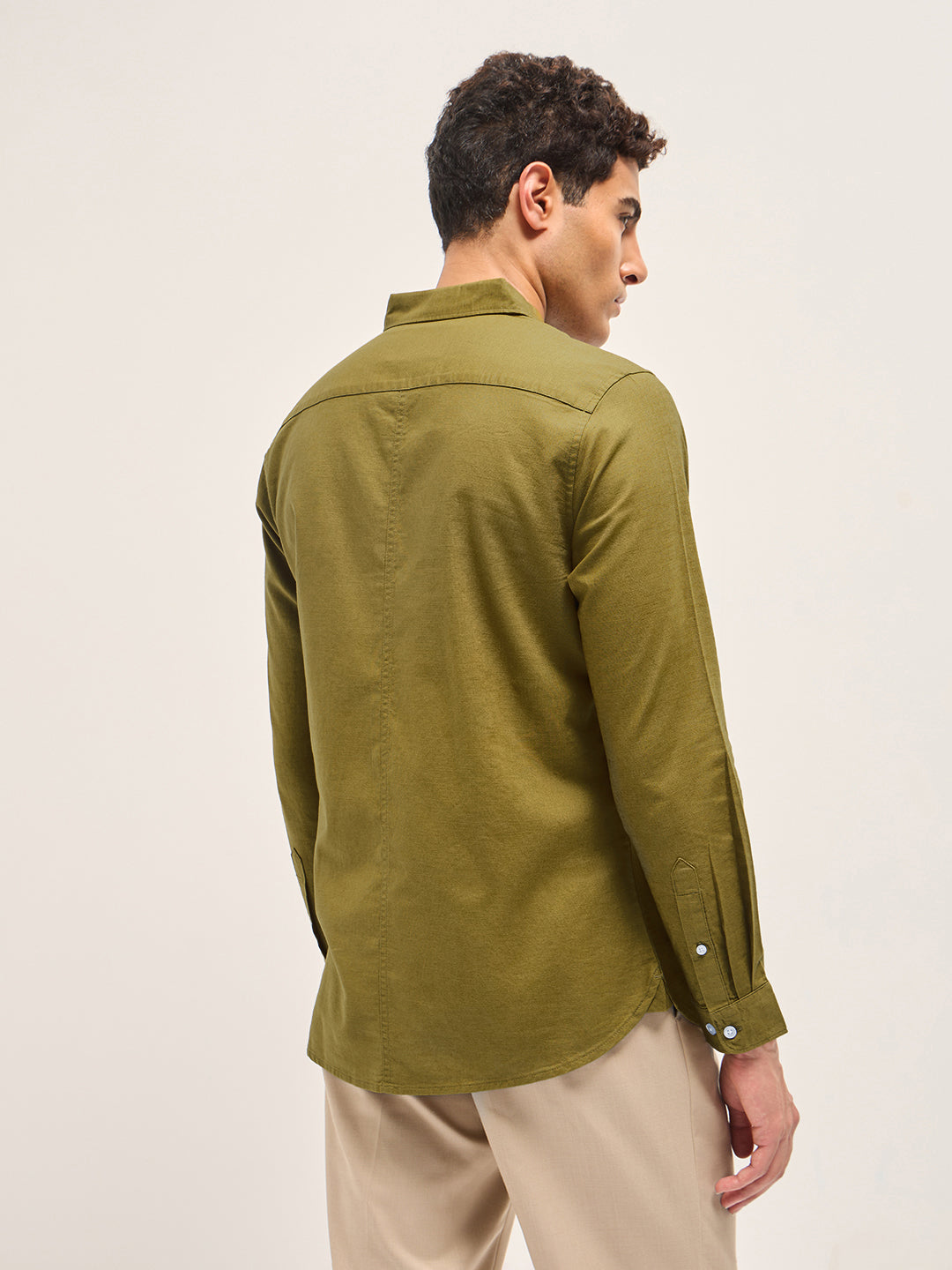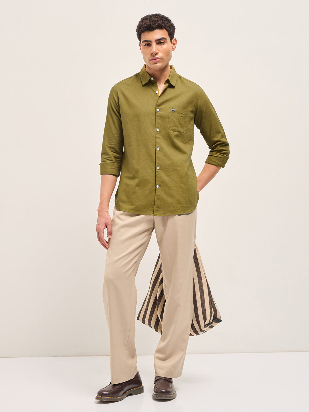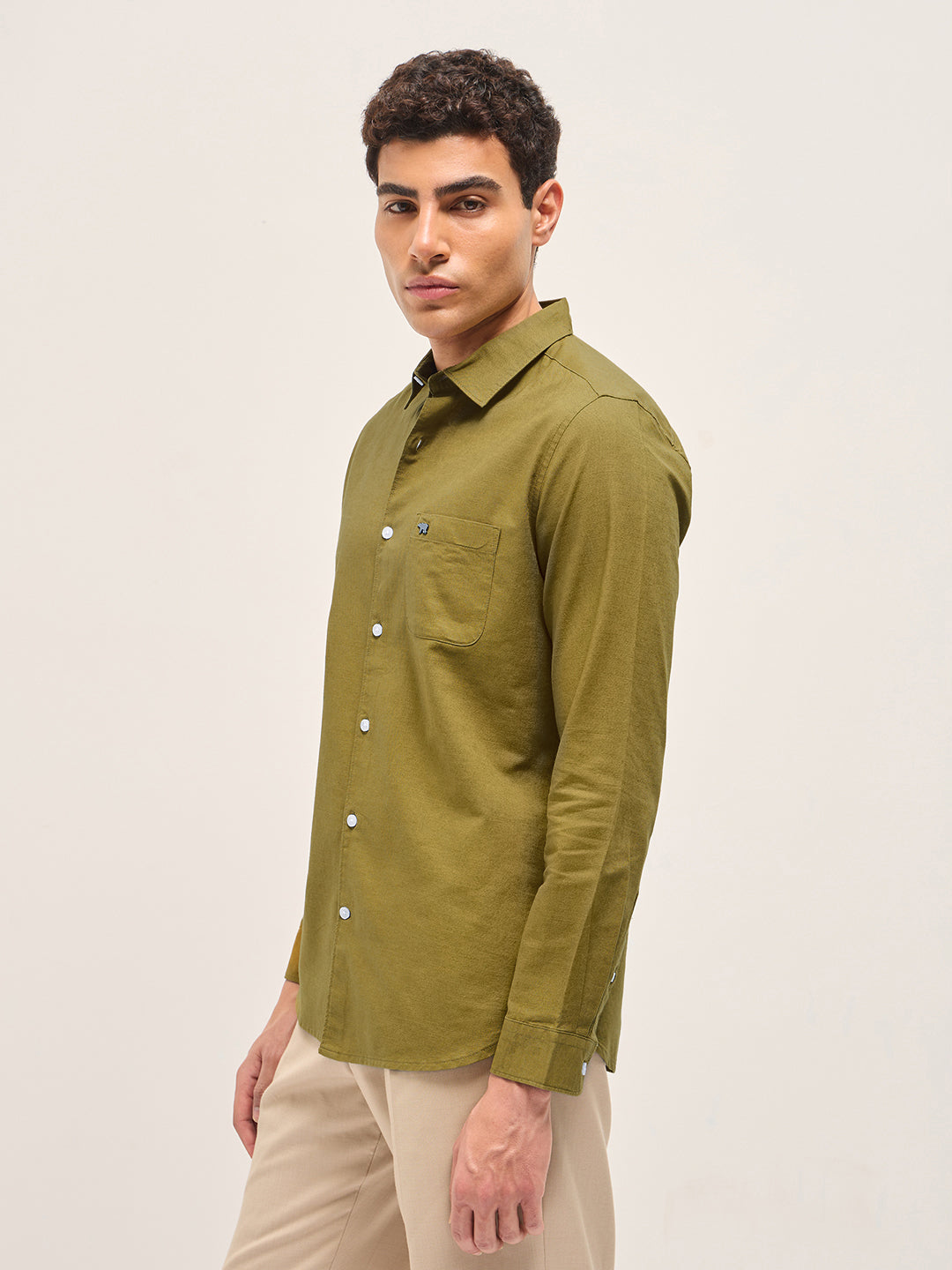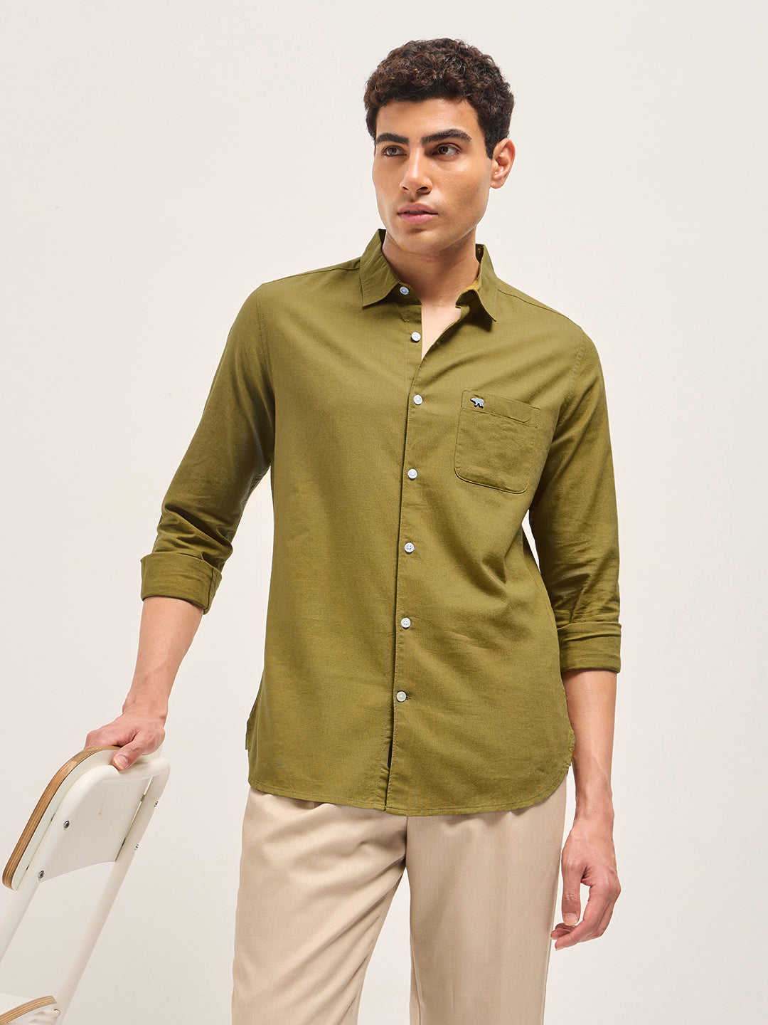 Mustard Cotton Linen Slim Fit Solid Casual Shirt