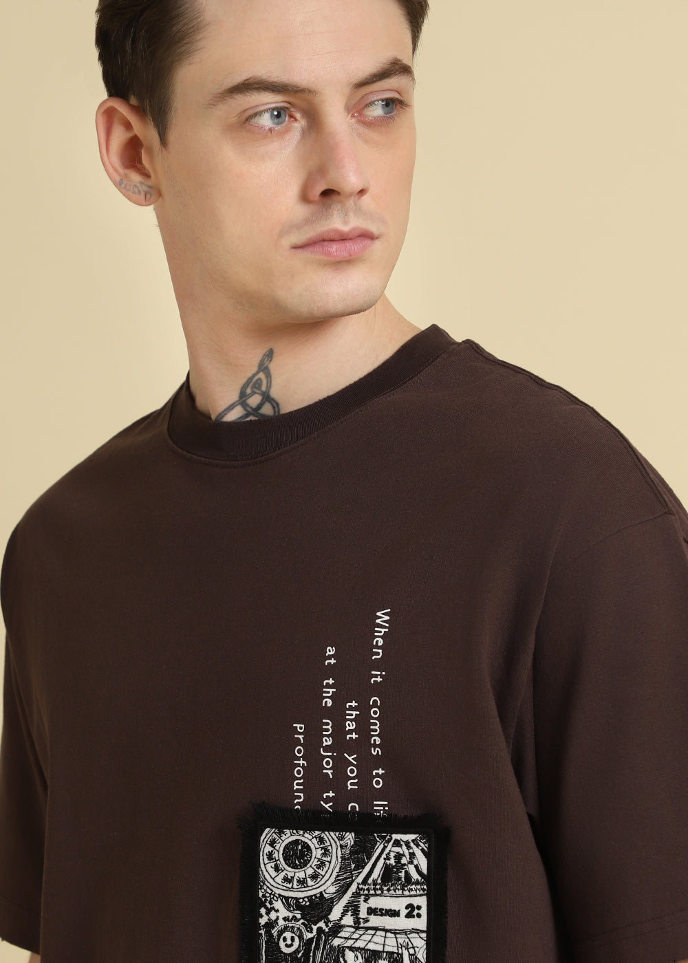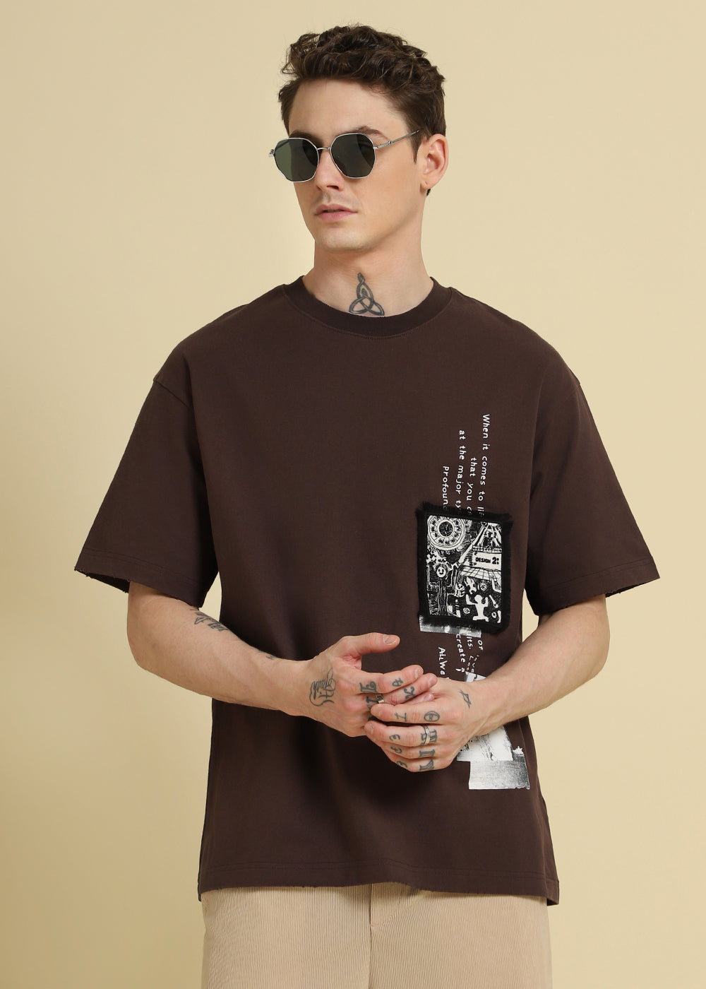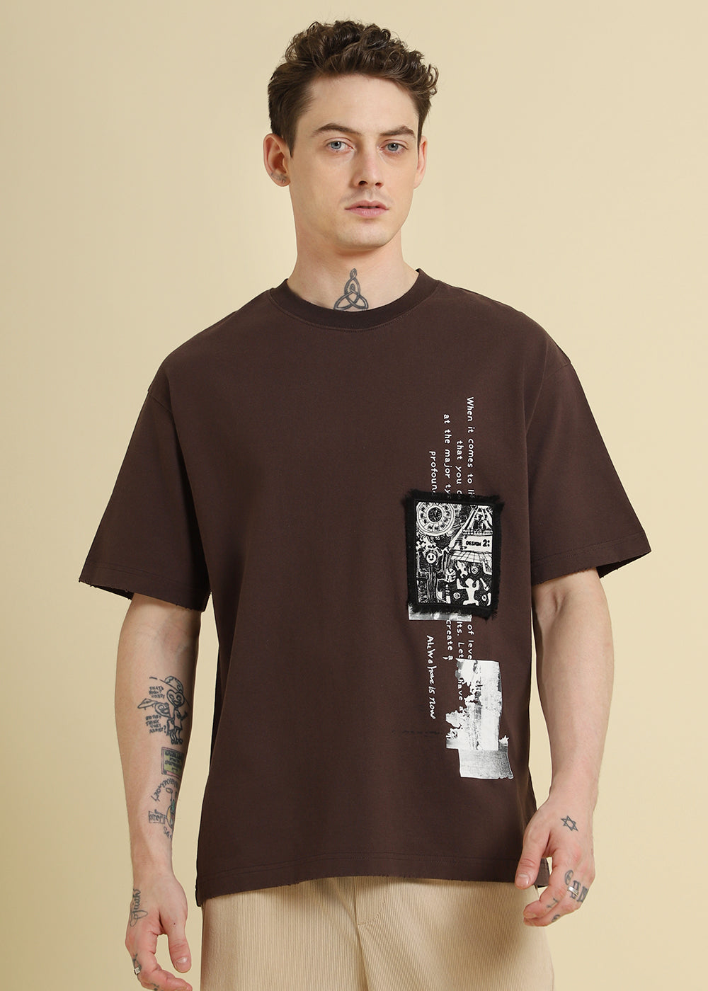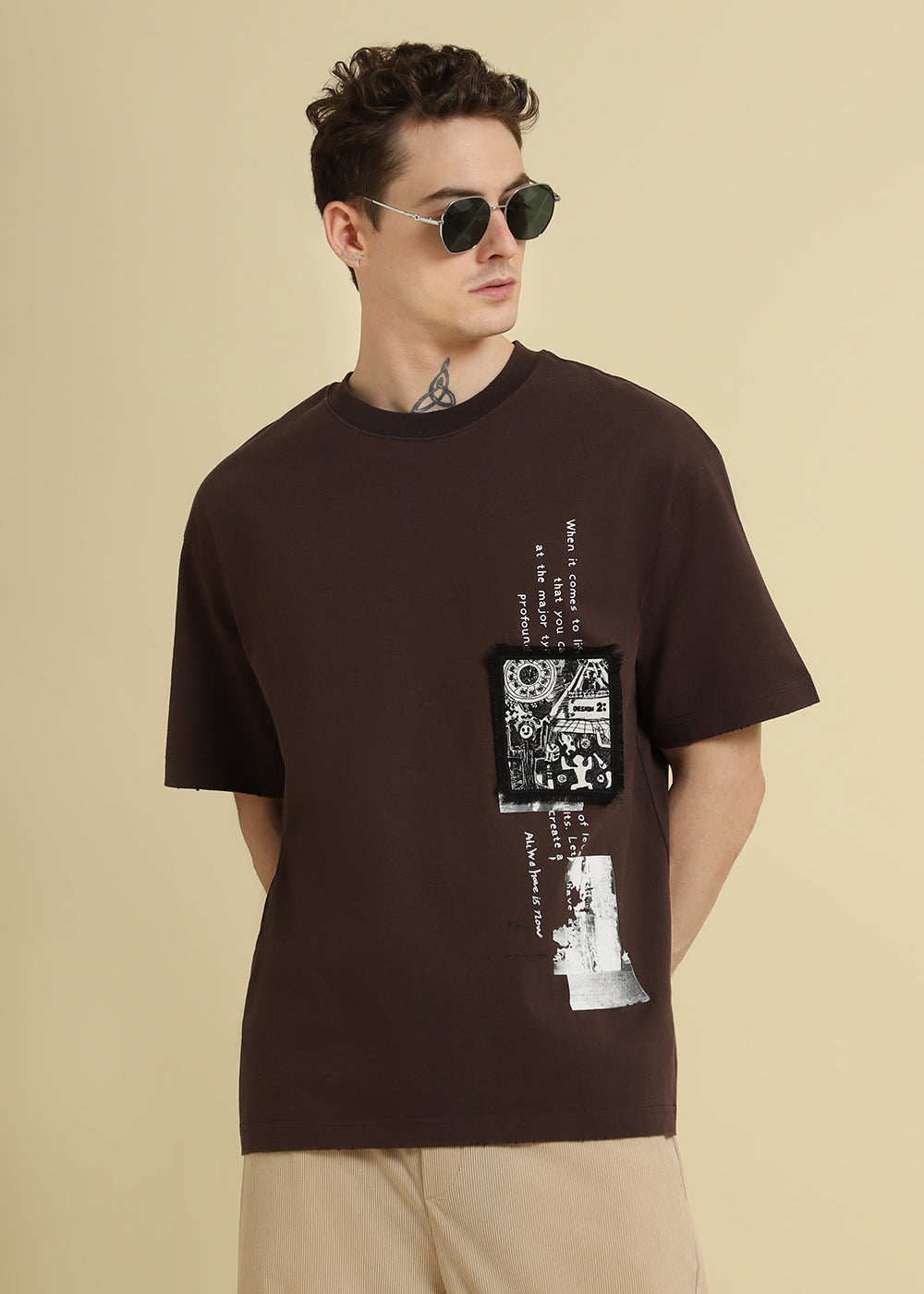 Brown Applique Printed Oversized T-shirt