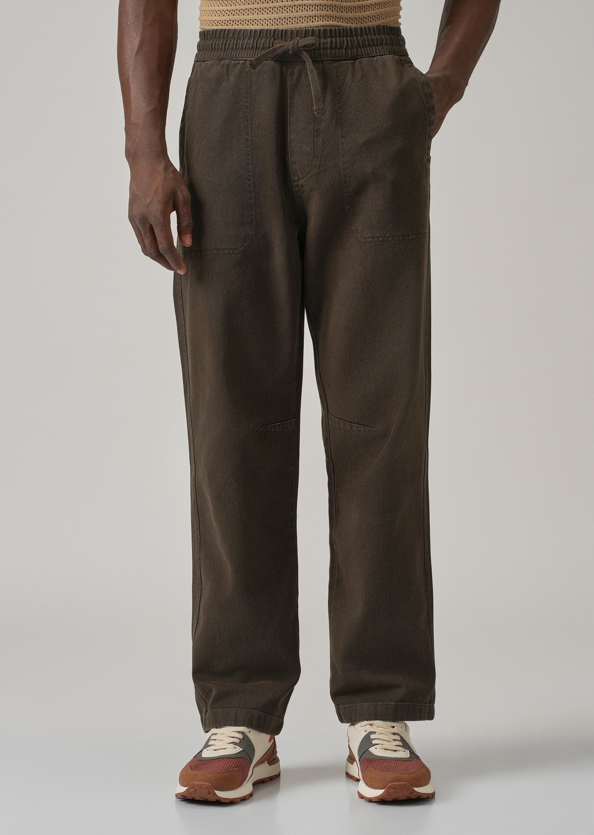 Brown Drawstring Drill Denim