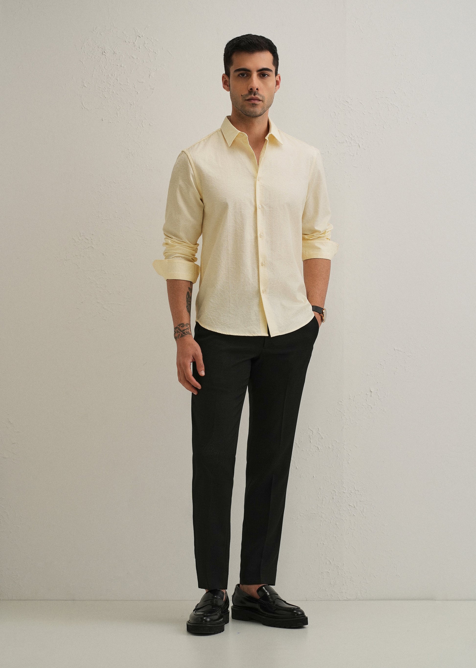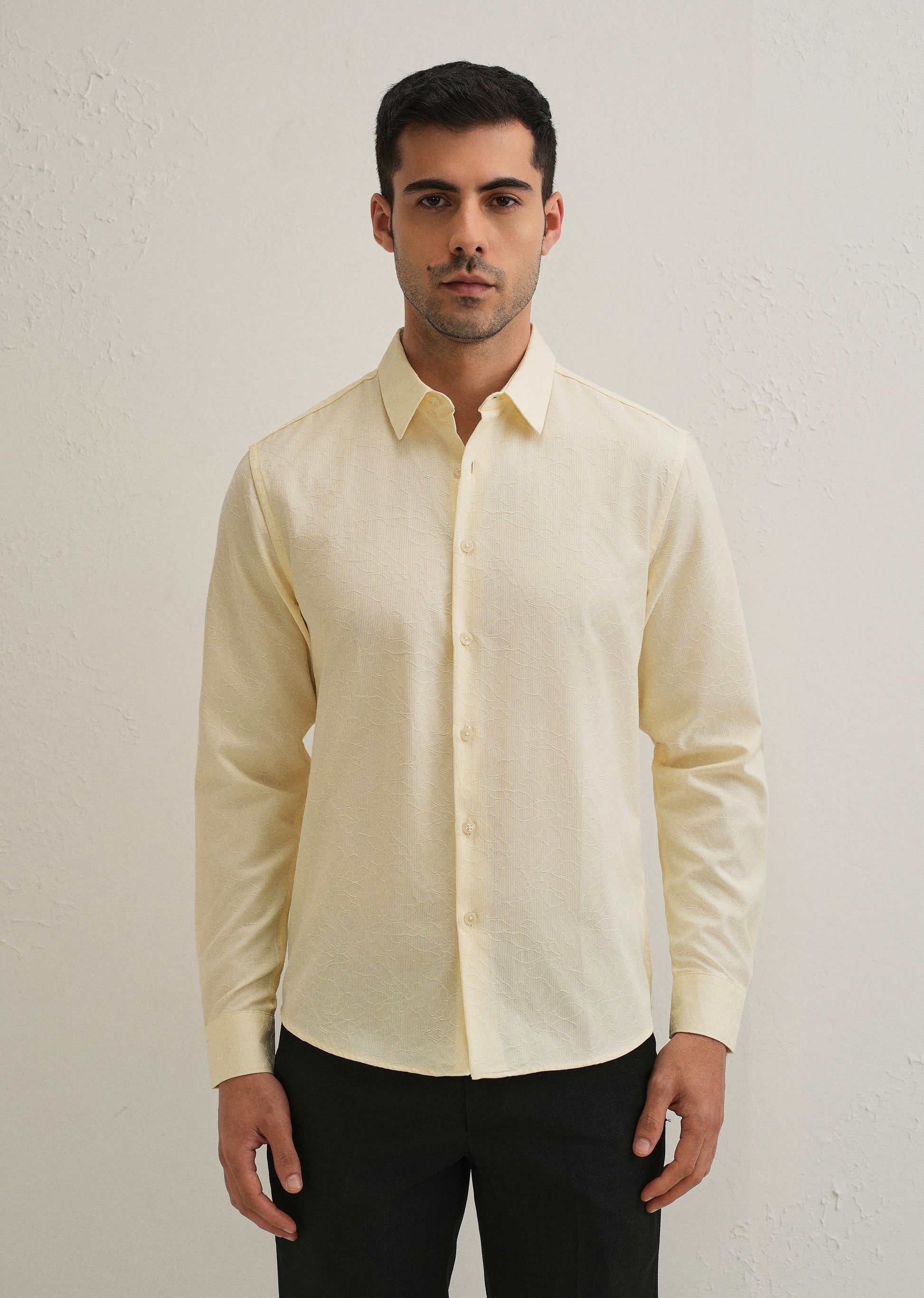 Elevate your casual wardrobe with our jacquard Shirt. This regular fit shirt features a spread collar and full sleeves, perfect for any occasion. The button closure ensures a sleek look, while the fabric adds a touch of elegance. Crafted from high-quality woven fabric which is lightweight and breathable. Ideal for those seeking a unique and fashionable addition to their collection, this shirt is a must-have for any fashion-forward individual.
