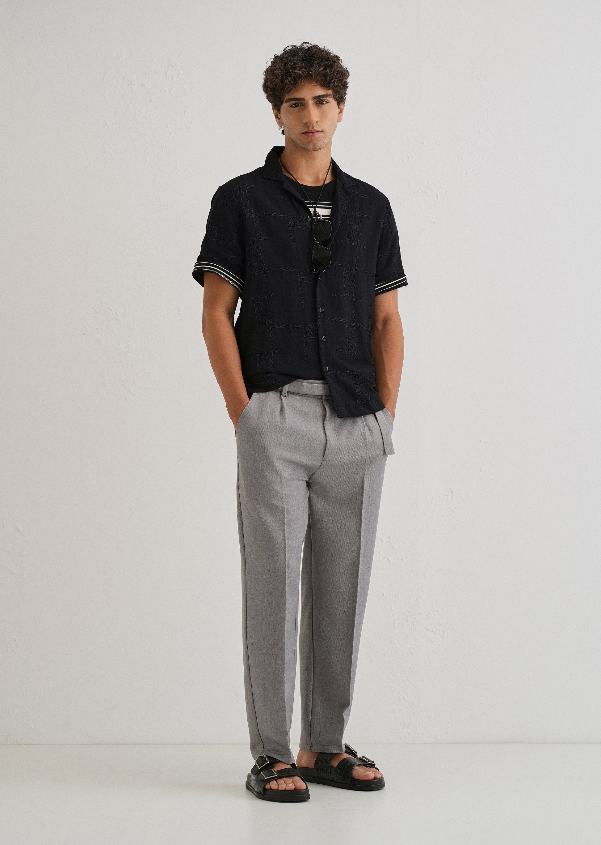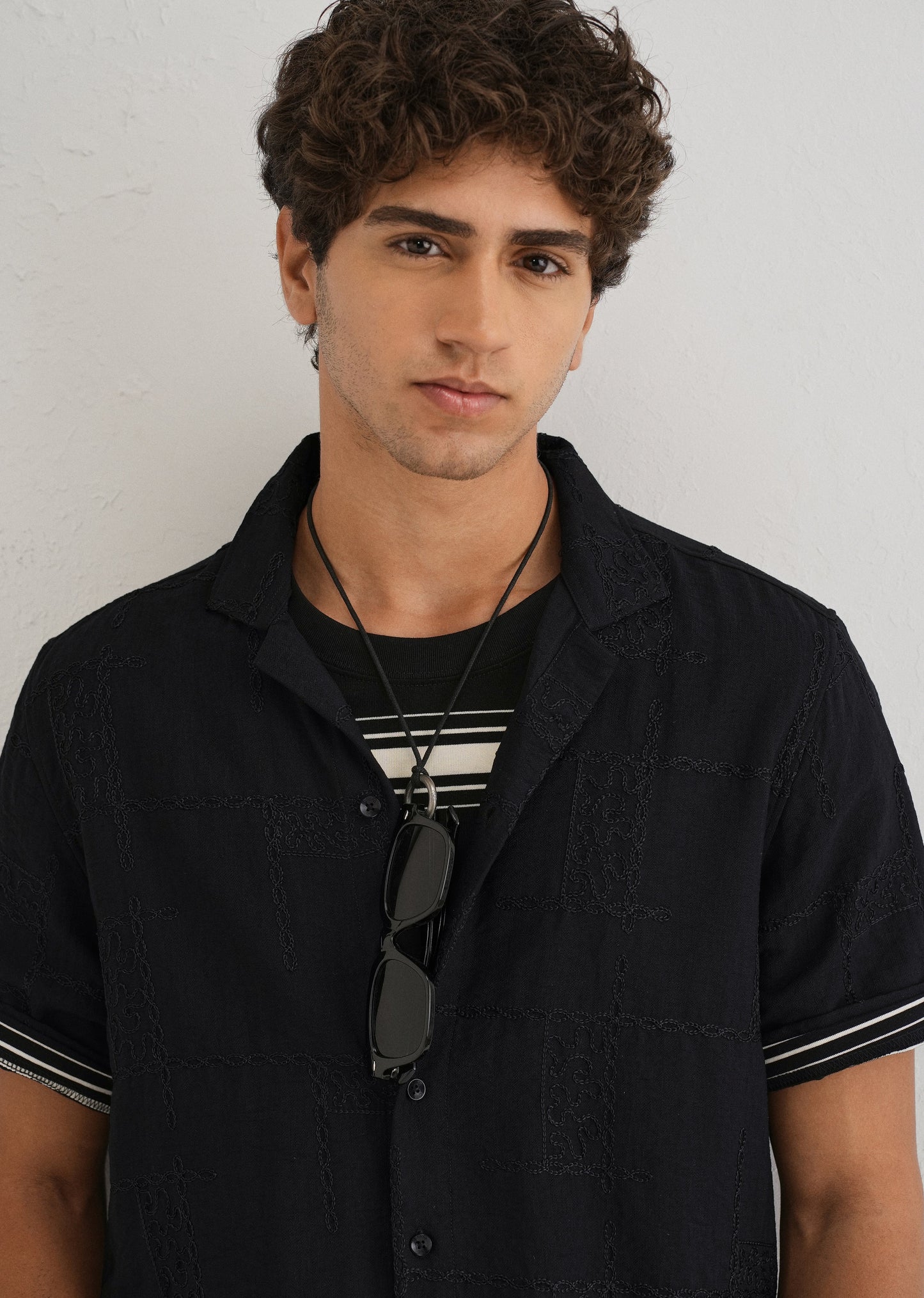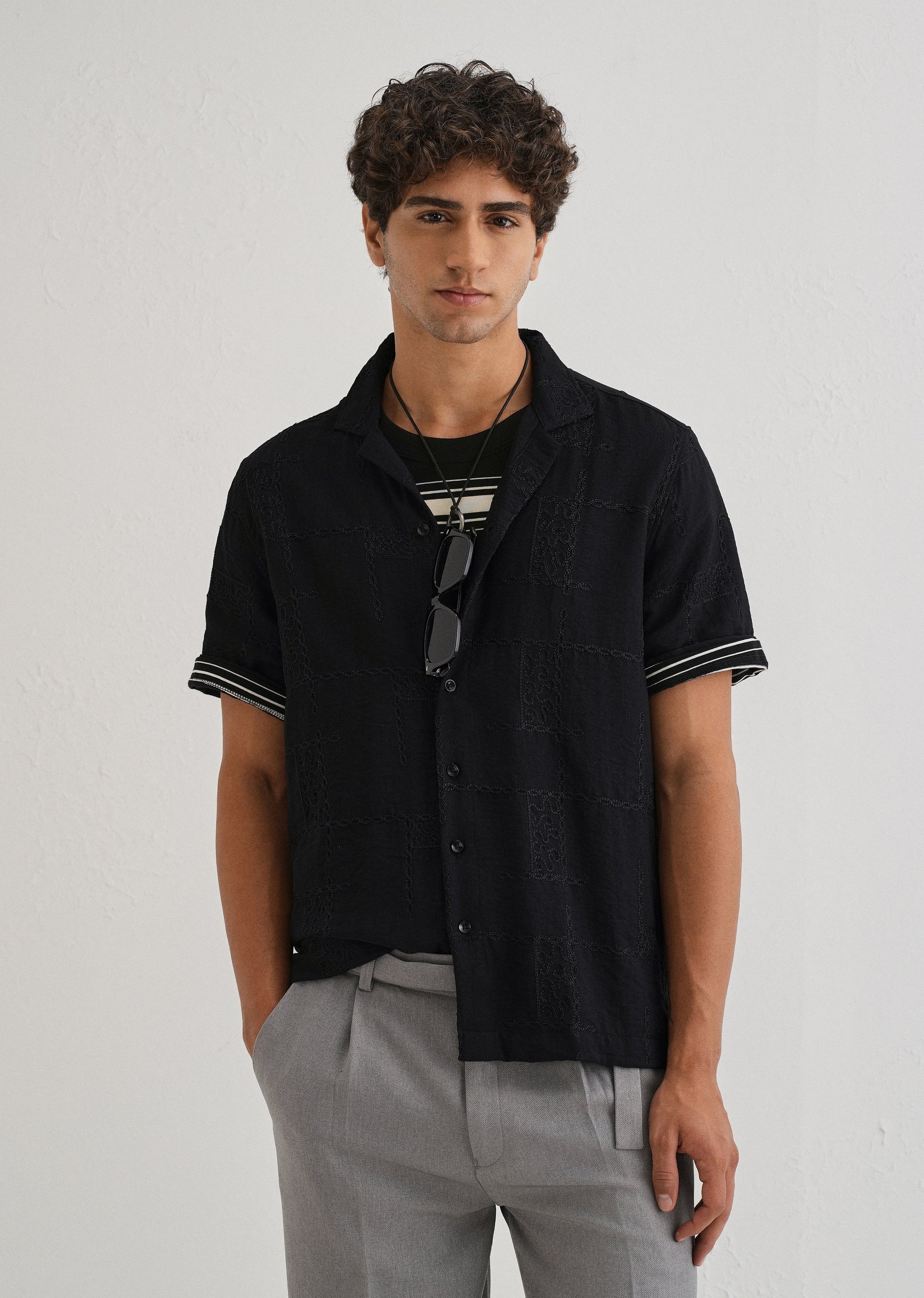 - Featuring a spread collar and short sleeves with buttoned cuffs.