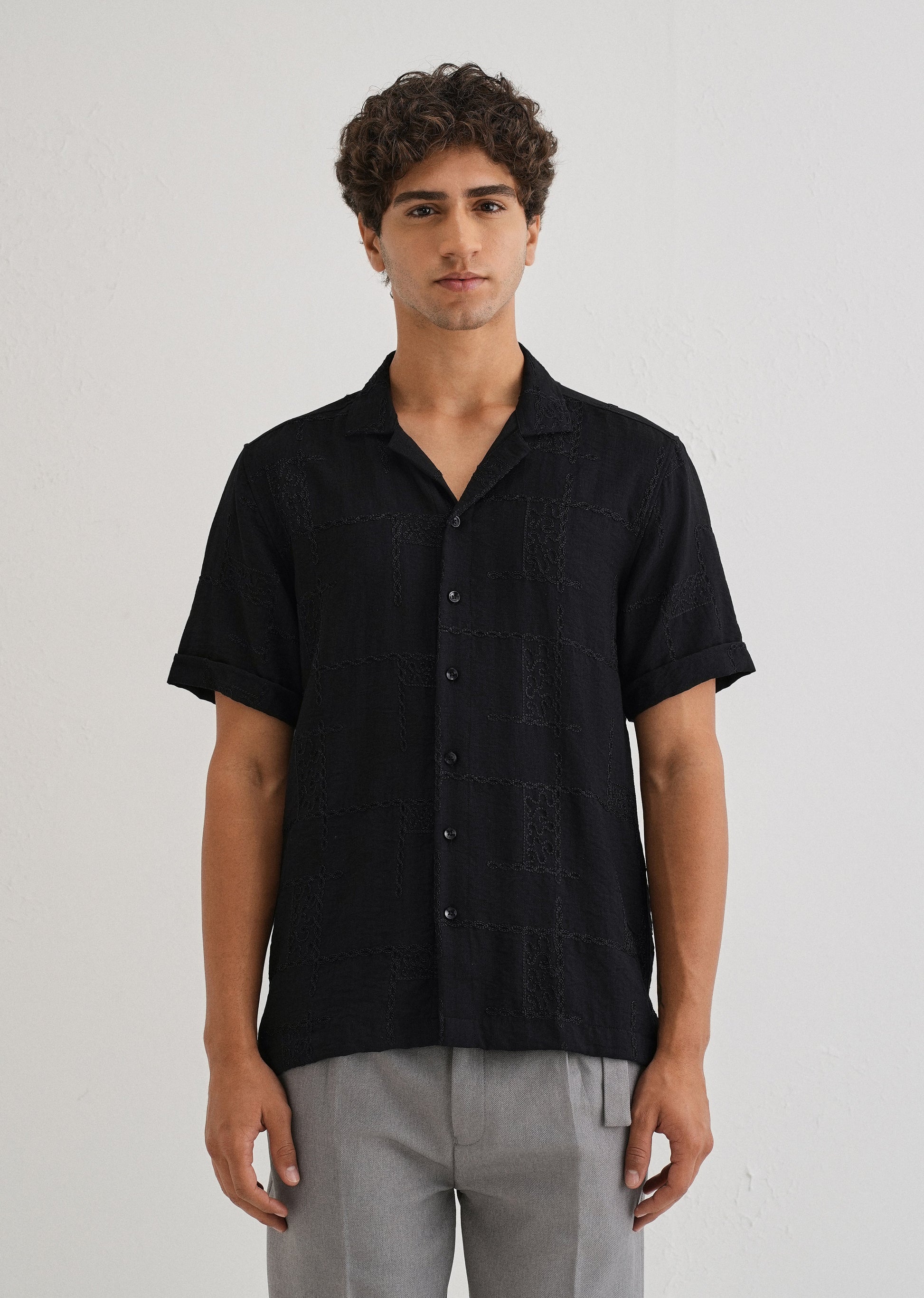 Make an impression in this artistically embroidered shirt. Show off your personal style with the custom embroidered accents on this shirt. The soft rayon material keeps you relaxed, while the artistic details give your look a boost of self-expression. Perfect for free spirits who want to showcase their originality.