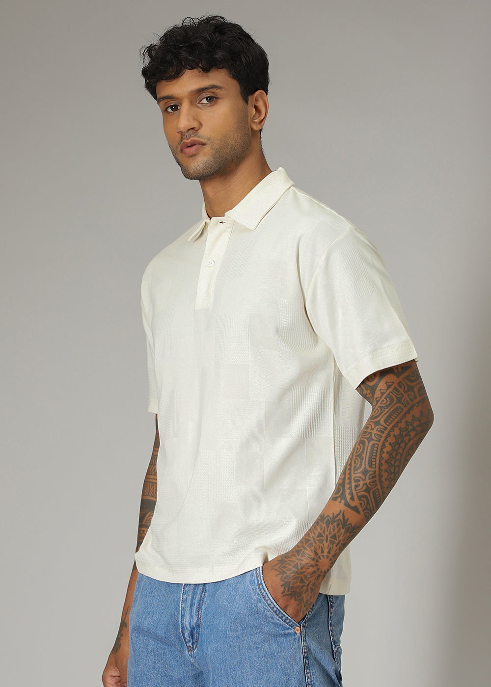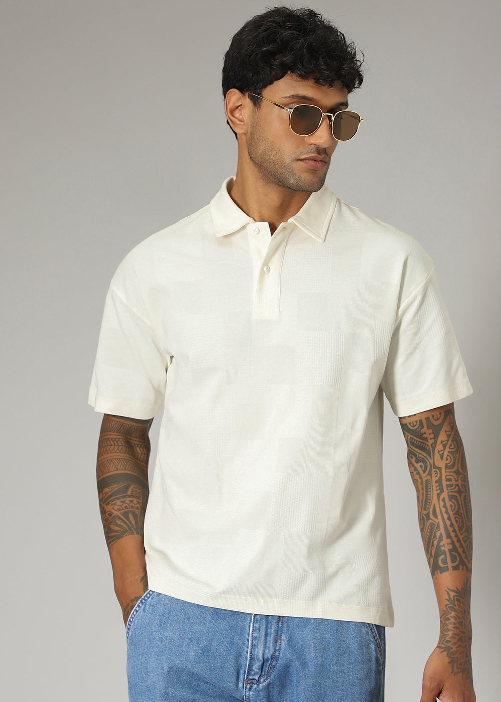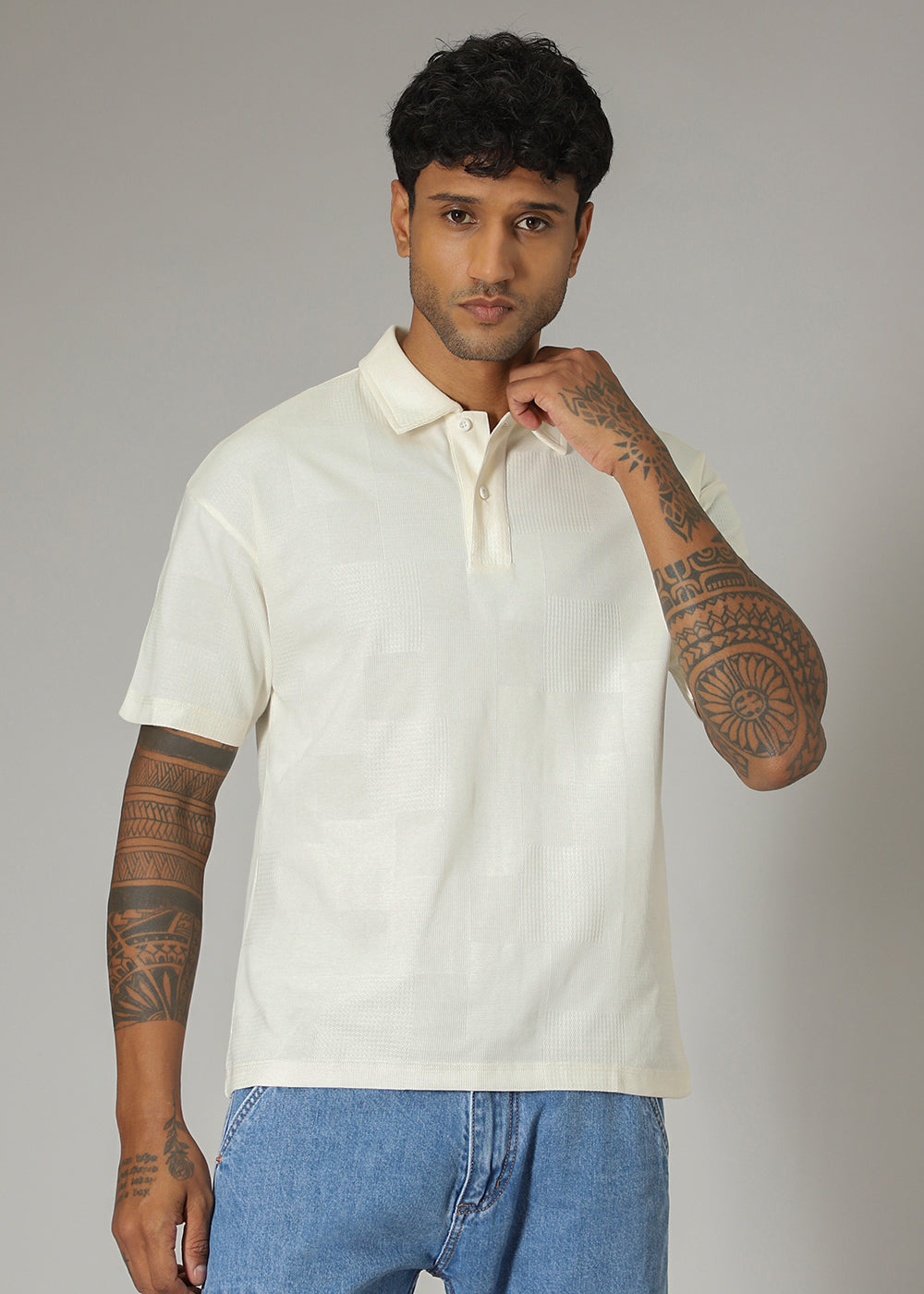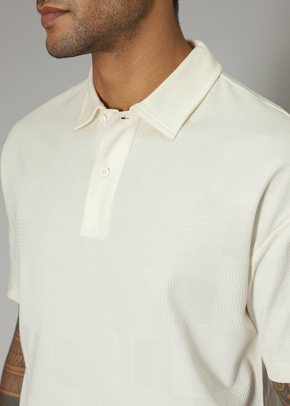 Cream Patterned Polo T-shirt