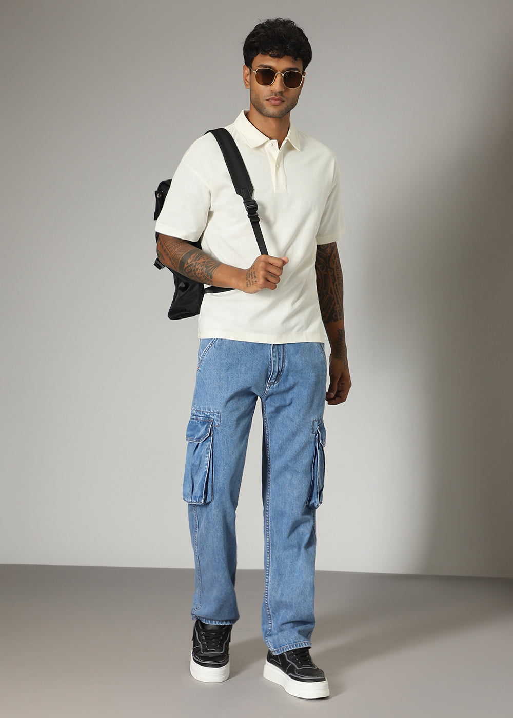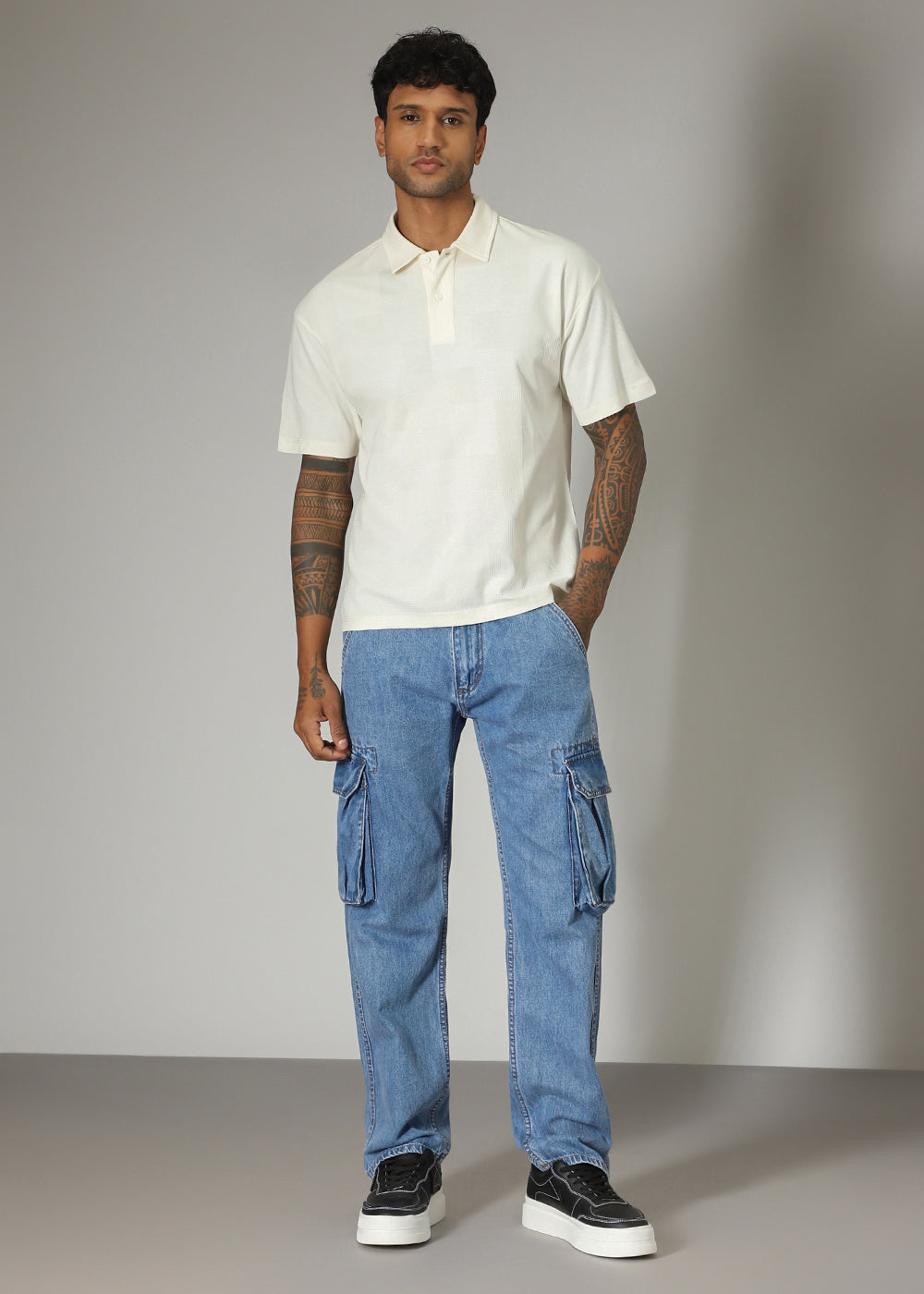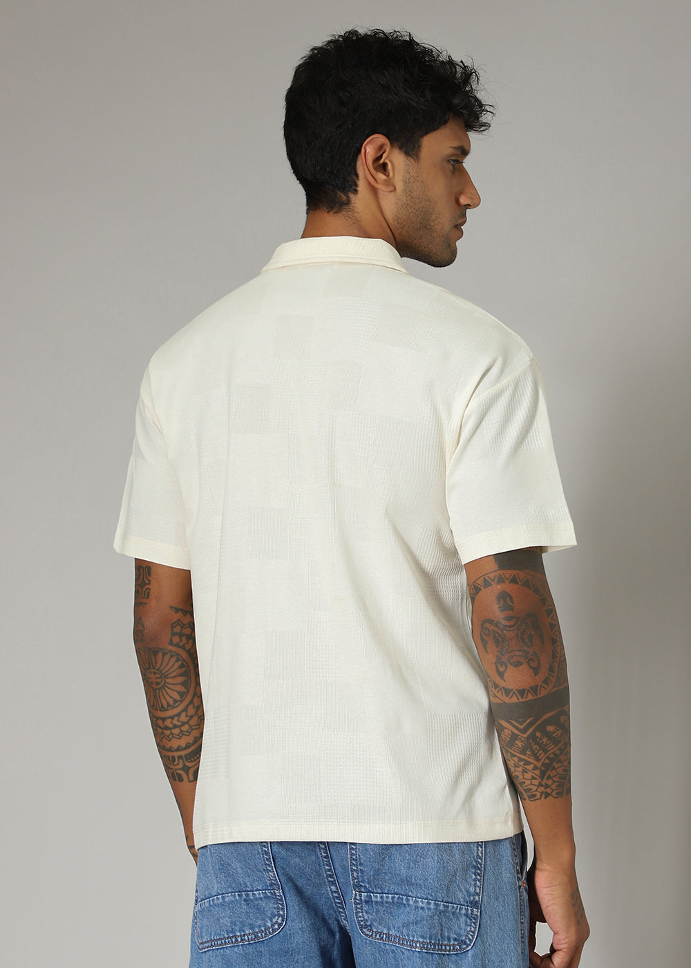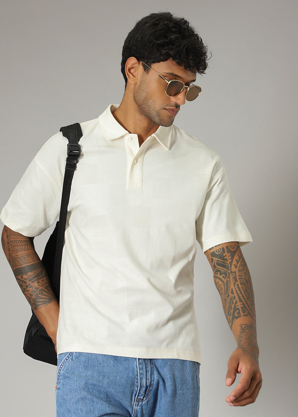 Cream Patterned Polo T-shirt