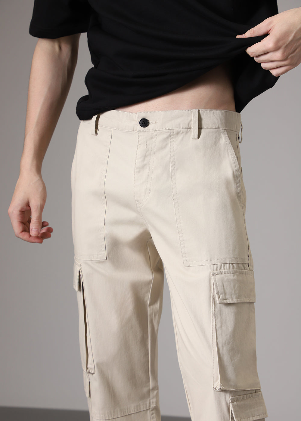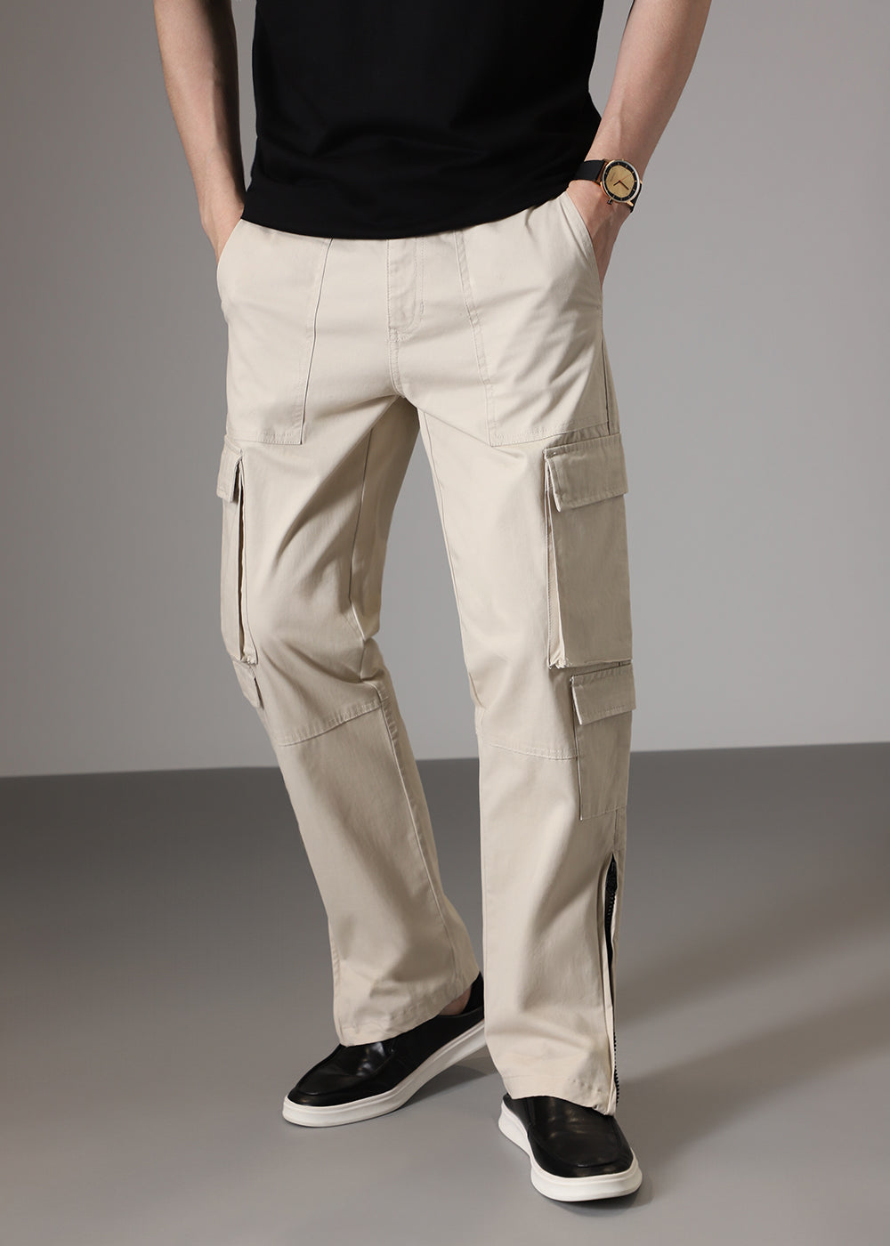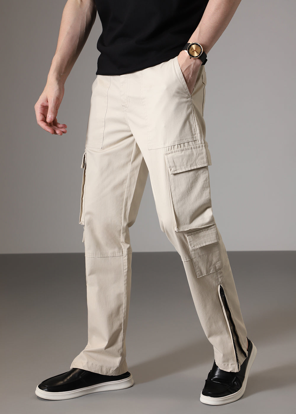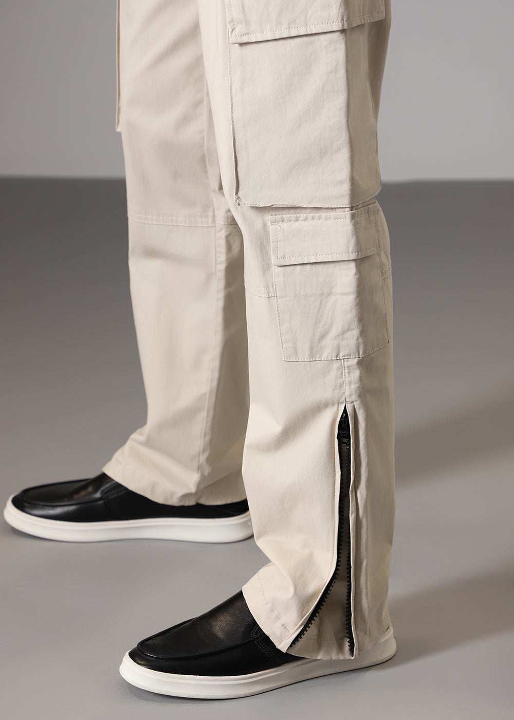 Cream Zipper Cargo Pant