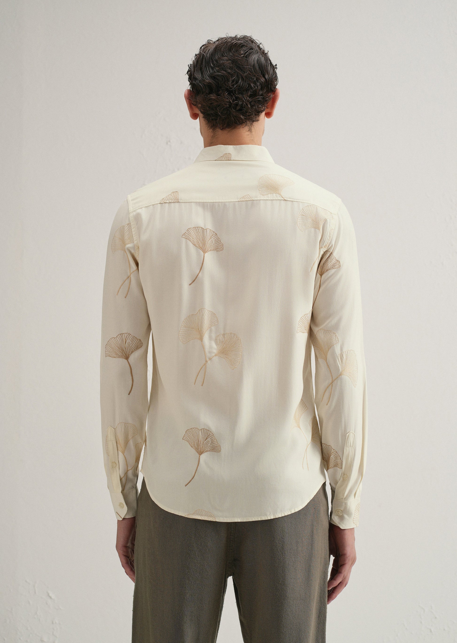Cream Abstract Leaf Embroidery Shirt