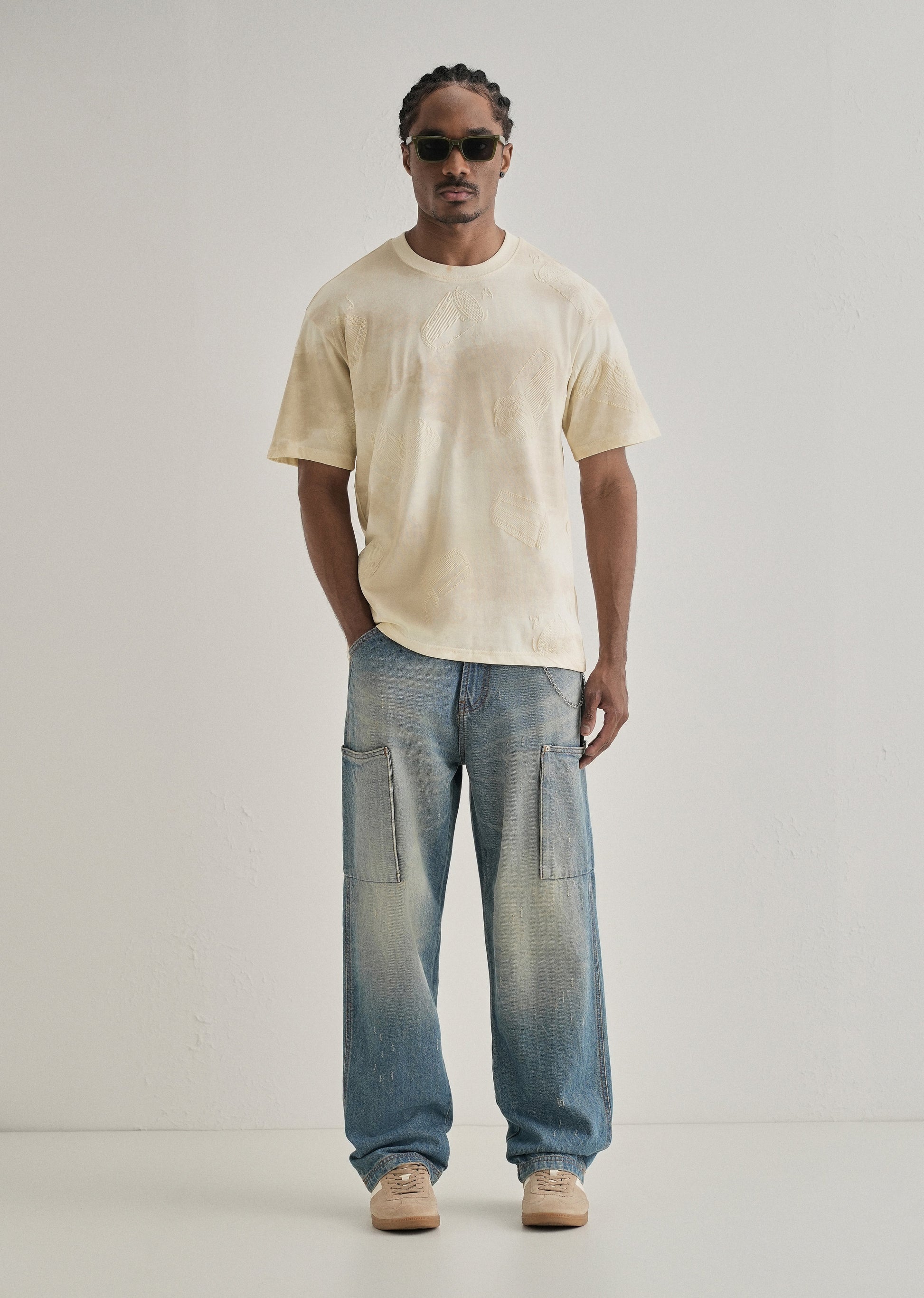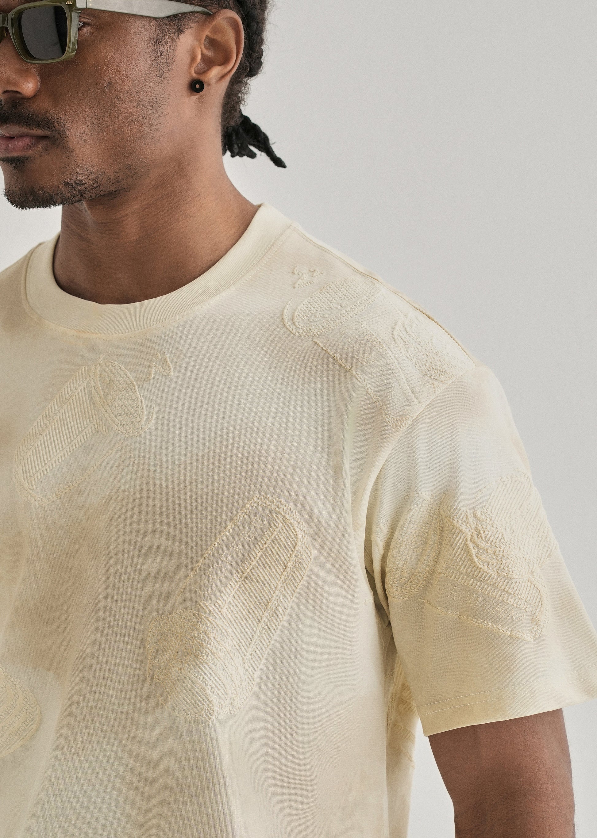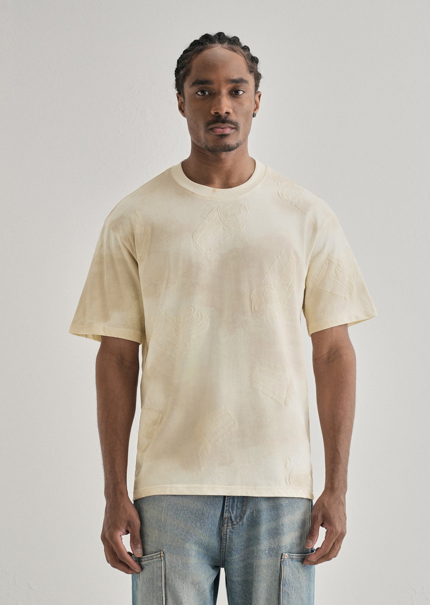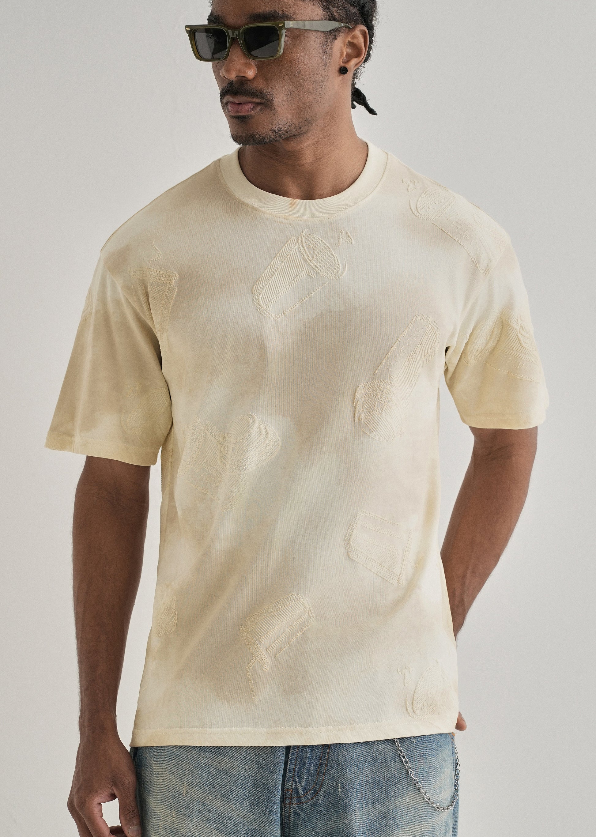 Cream Beige Printed Oversized T-shirt