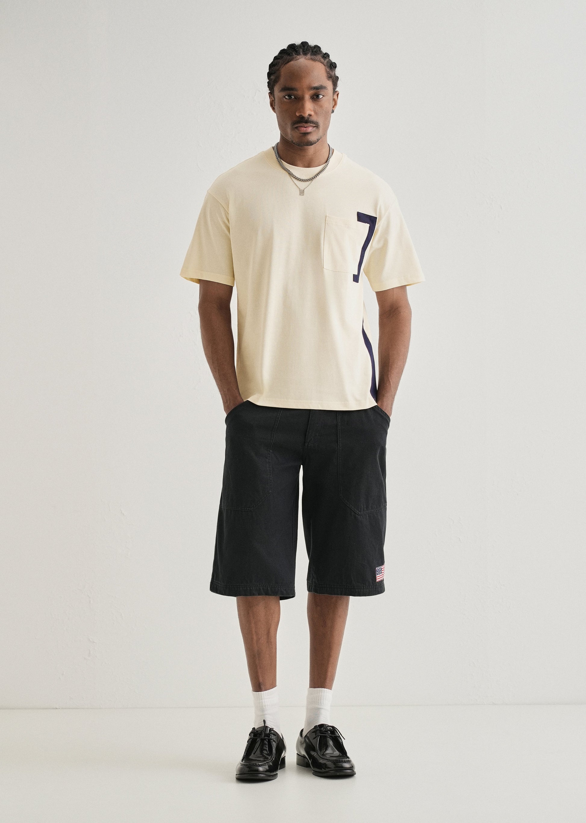 - Patch pocket with colourblock detail.
