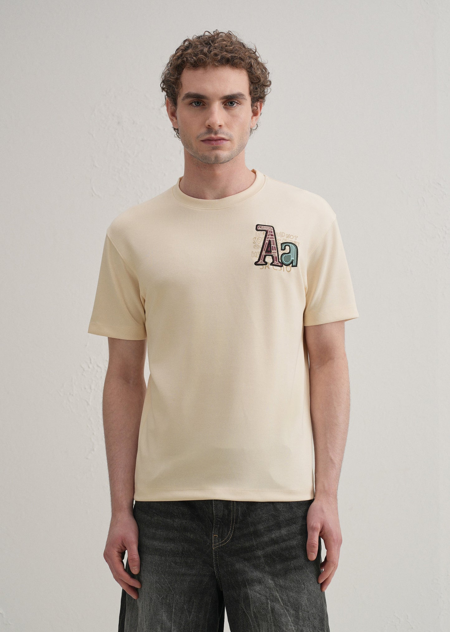 Cream Typography Printed T-shirt