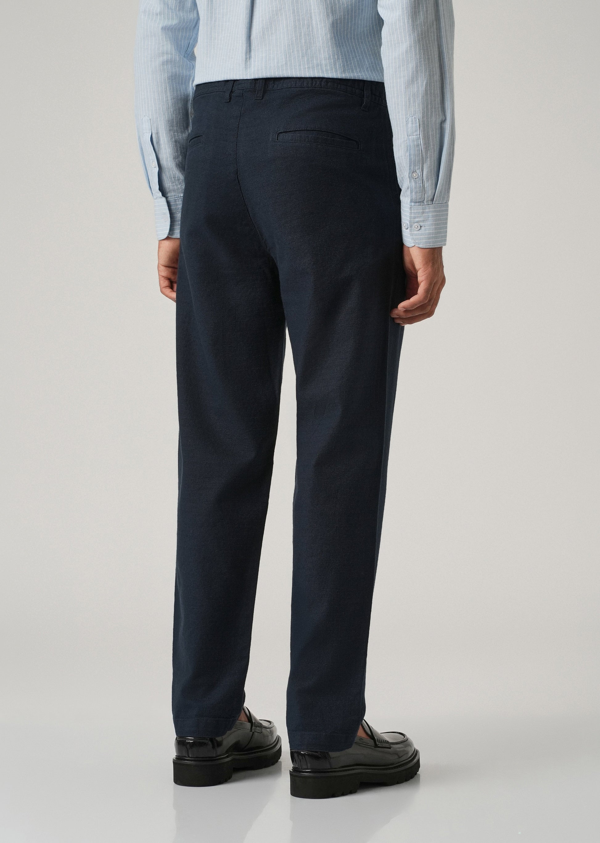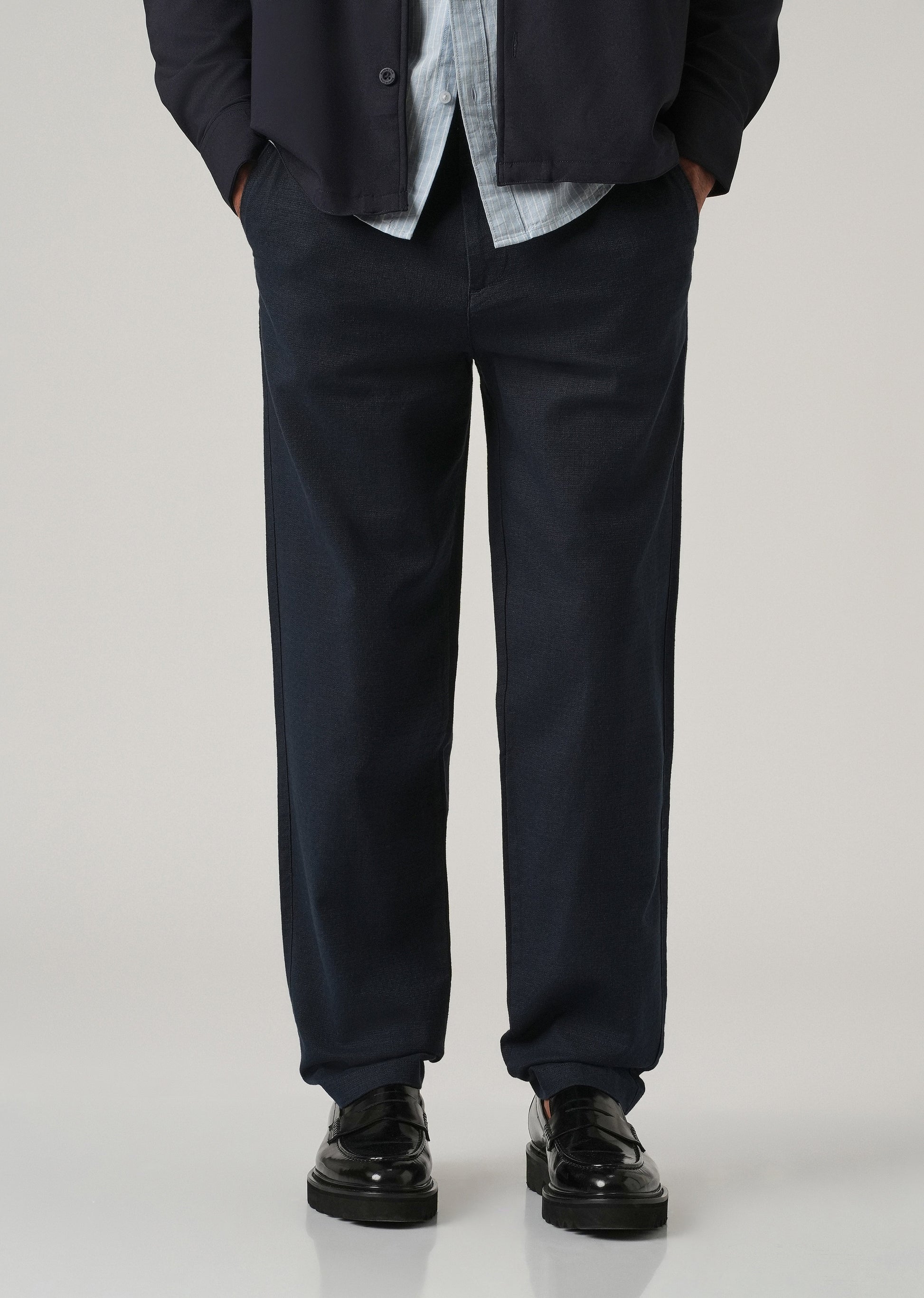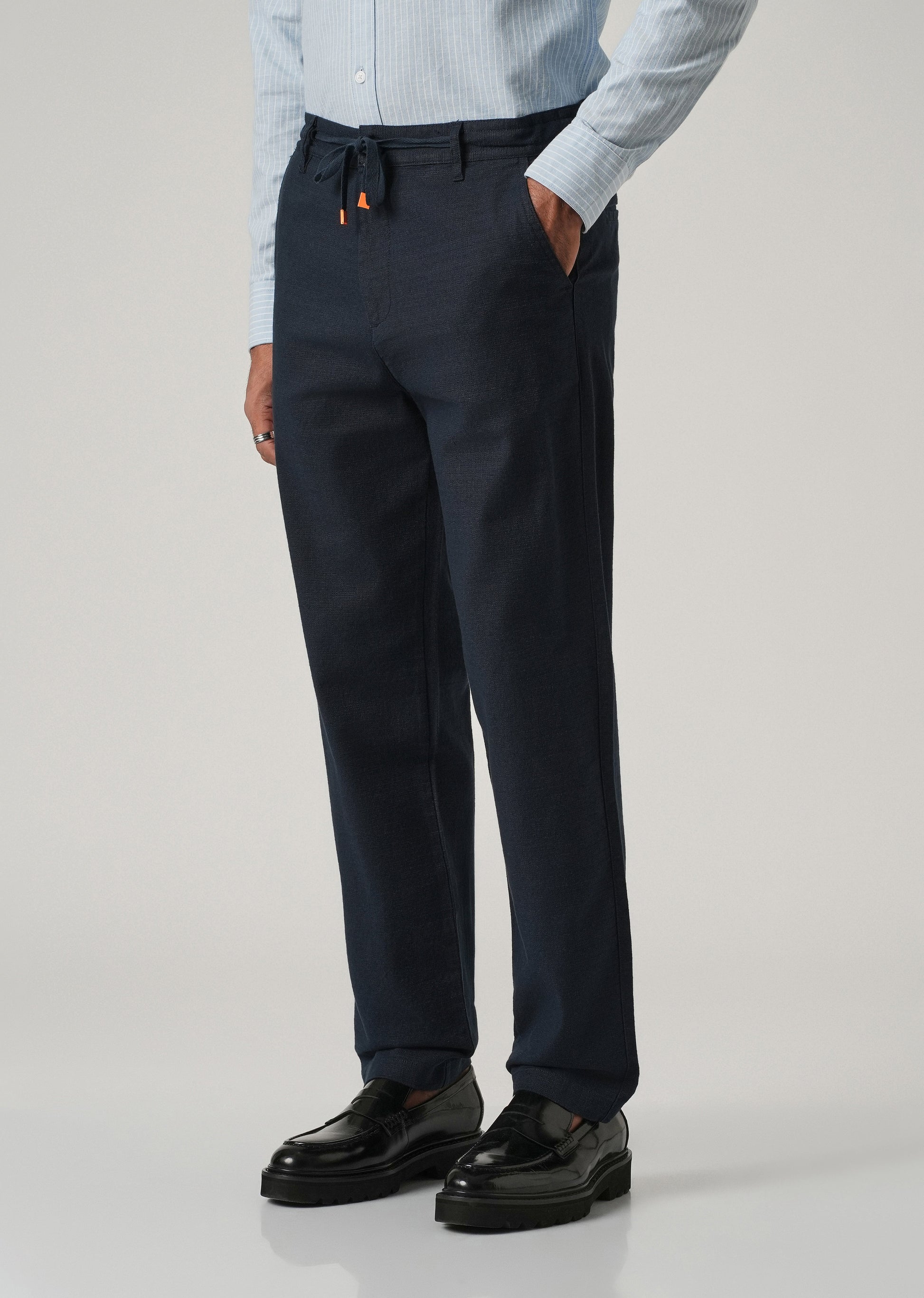 These relaxed fit trousers offer a comfortable and adjustable fit with their drawstring waistband. Featuring handy side pockets and a simple straight bottom. The overall look is relaxed yet put-together, making them a good choice for everyday wear.