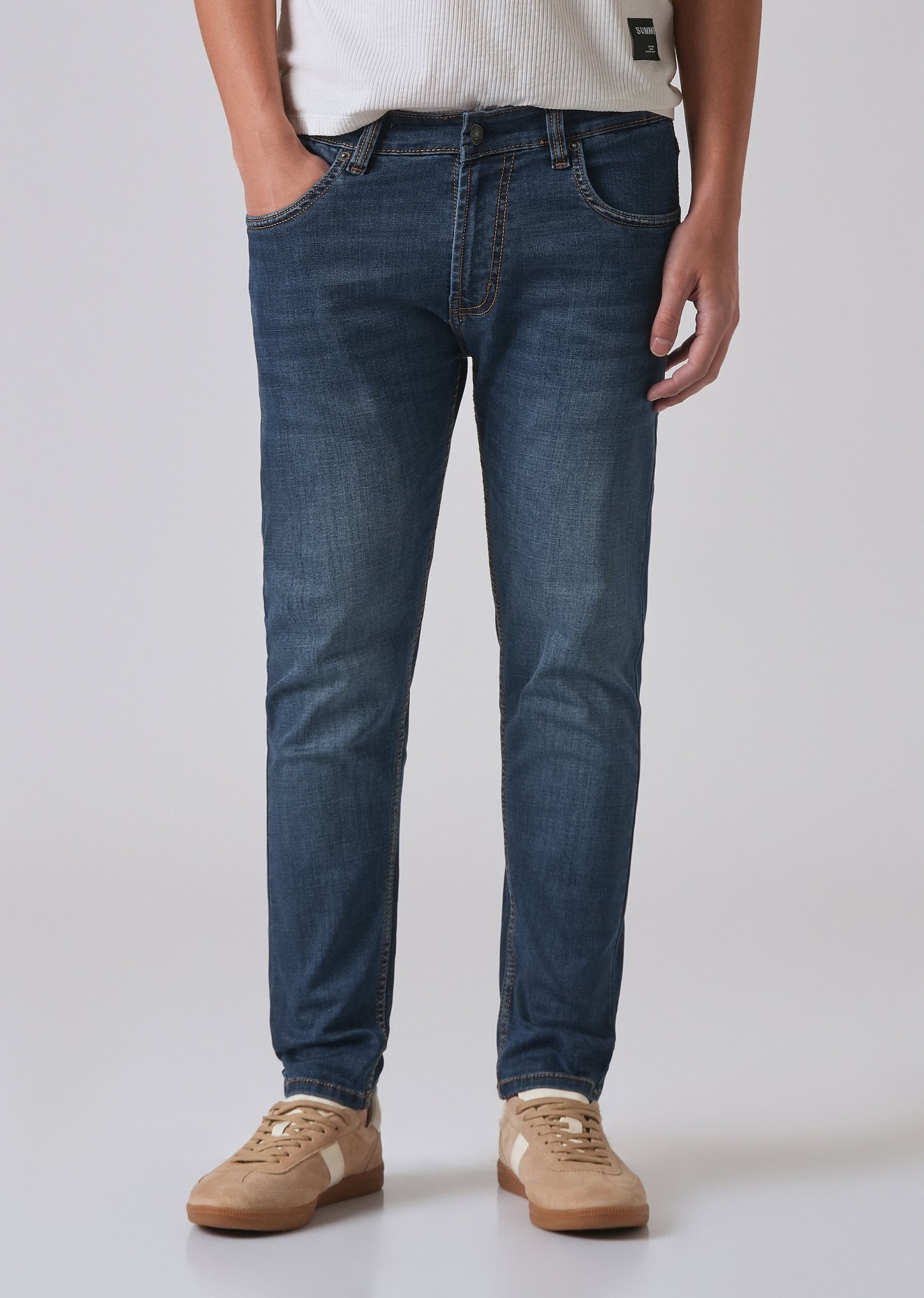 - Regular waist and a zip fly.