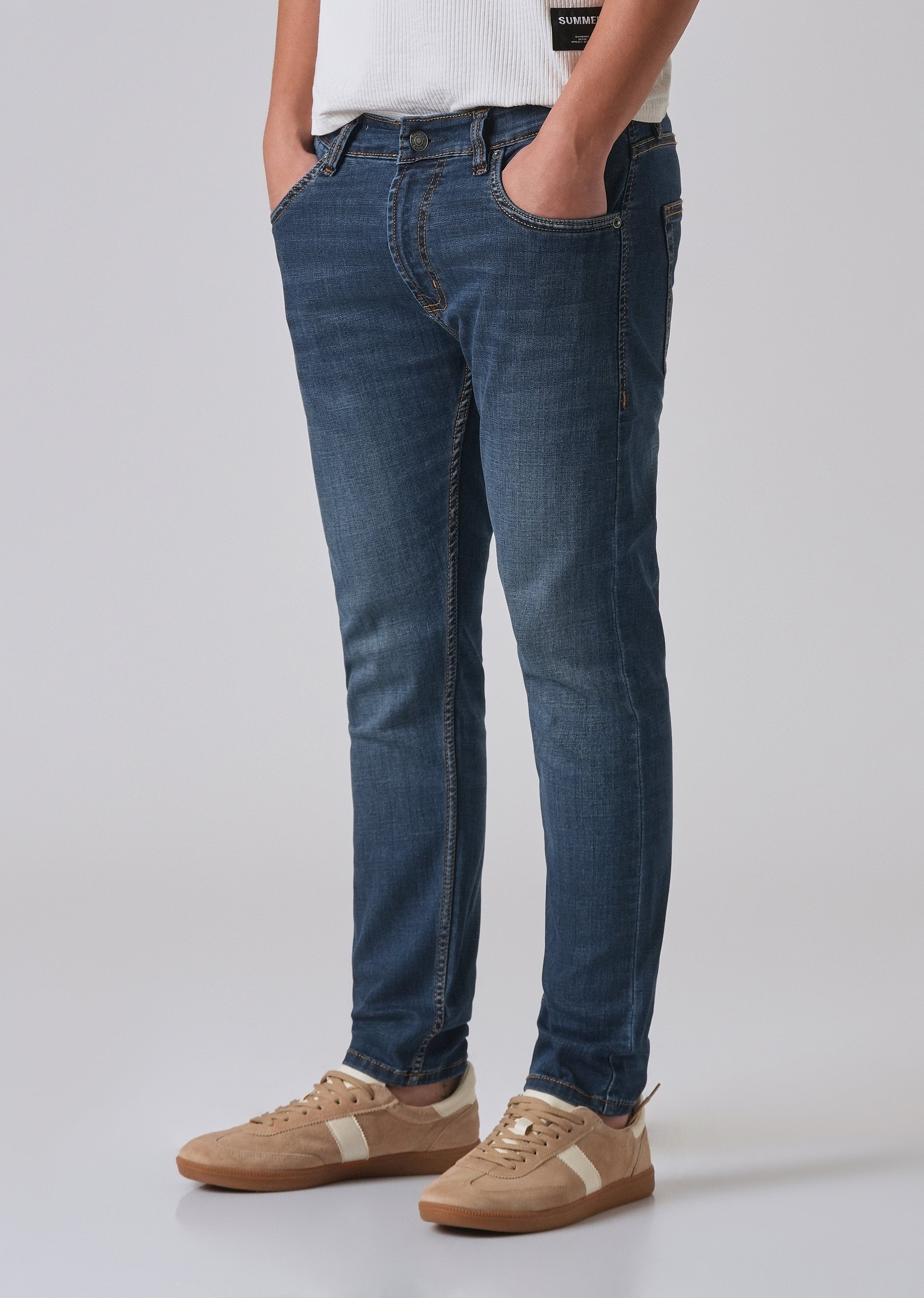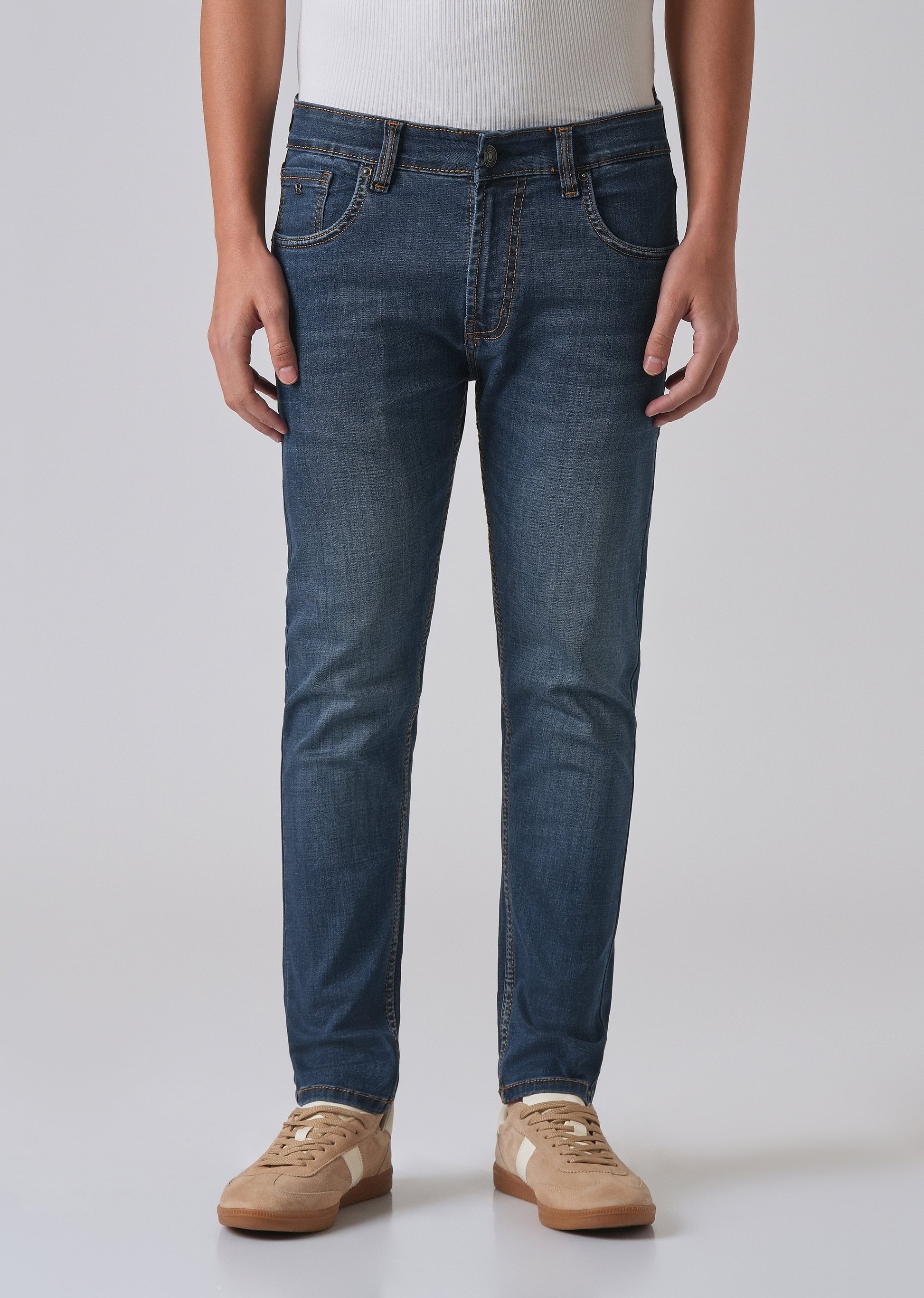 Dark Blue Low Fade Slim Fit Jeans