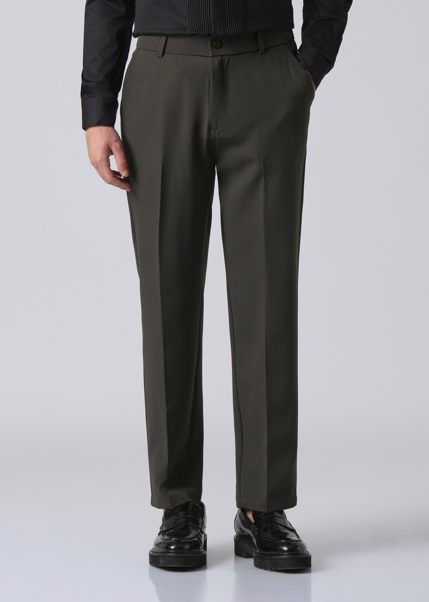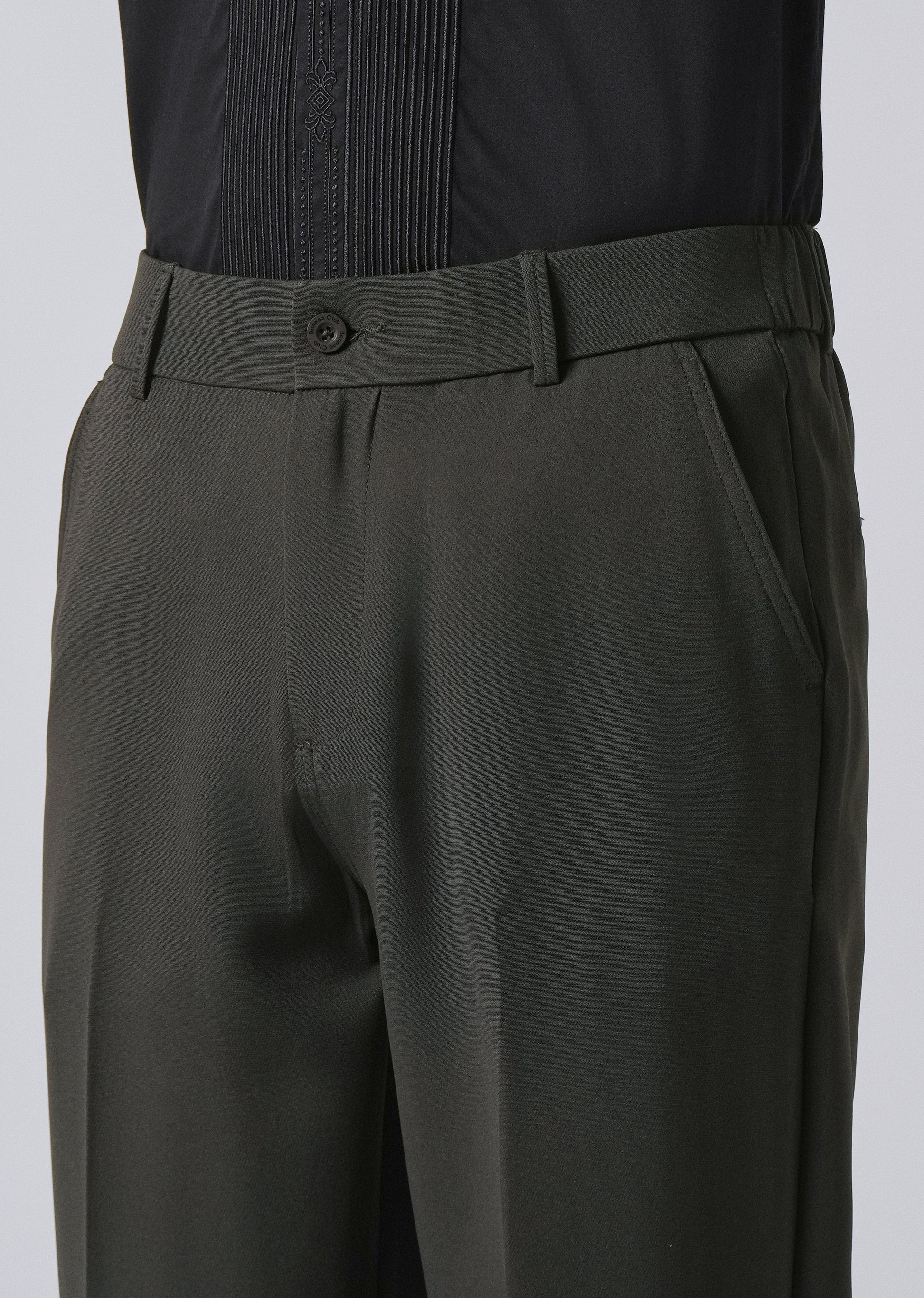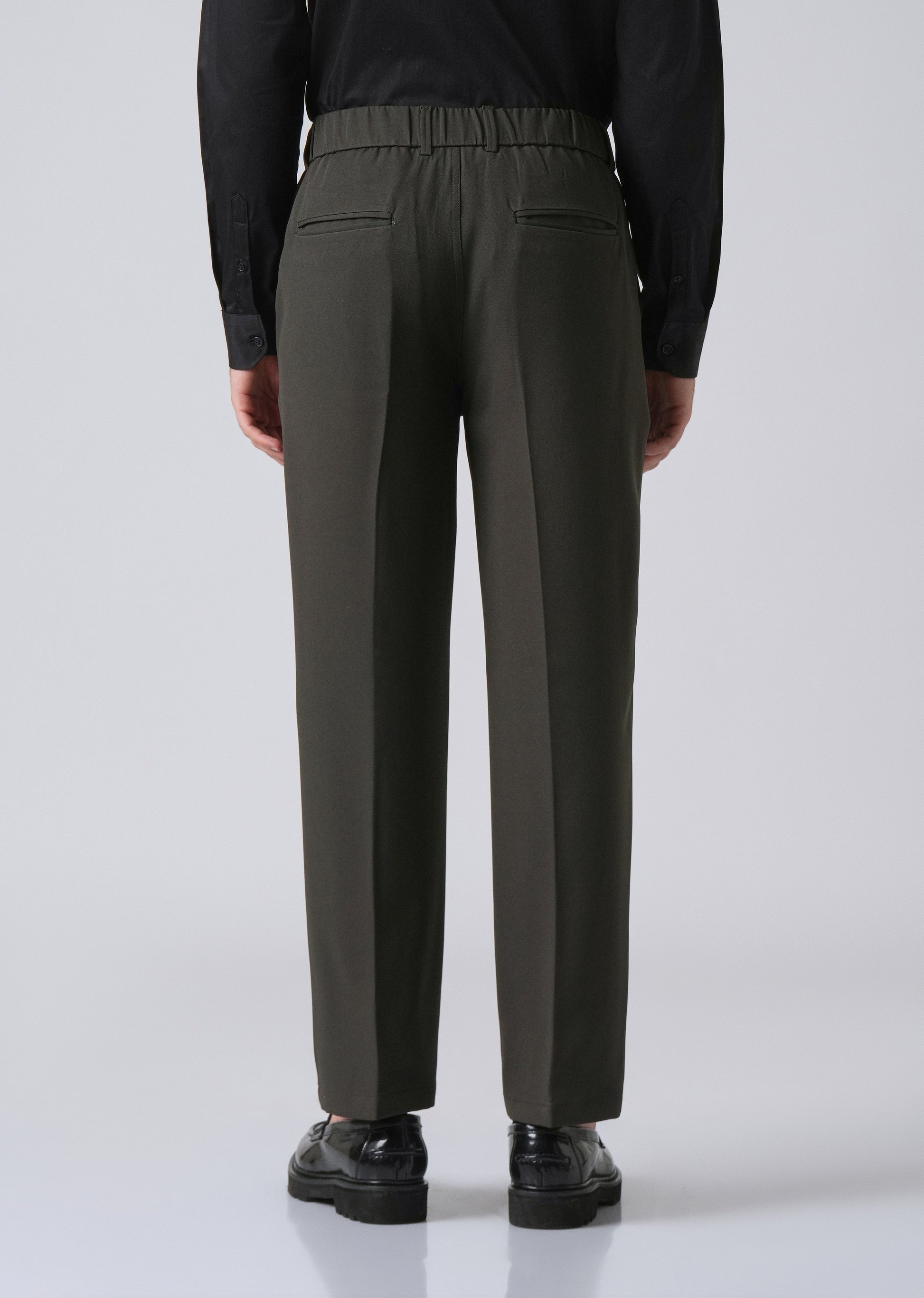 These trousers combine comfort and style with a semi-elasticated waistband and belt loops for a flexible yet polished fit. They feature a button and zipper closure, two side pockets, and two back welt pockets for everyday convenience. Made from a 96% polyester, 4% spandex blend, they offer gentle stretch and hold their shape—perfect for both casual and smart-casual wear.