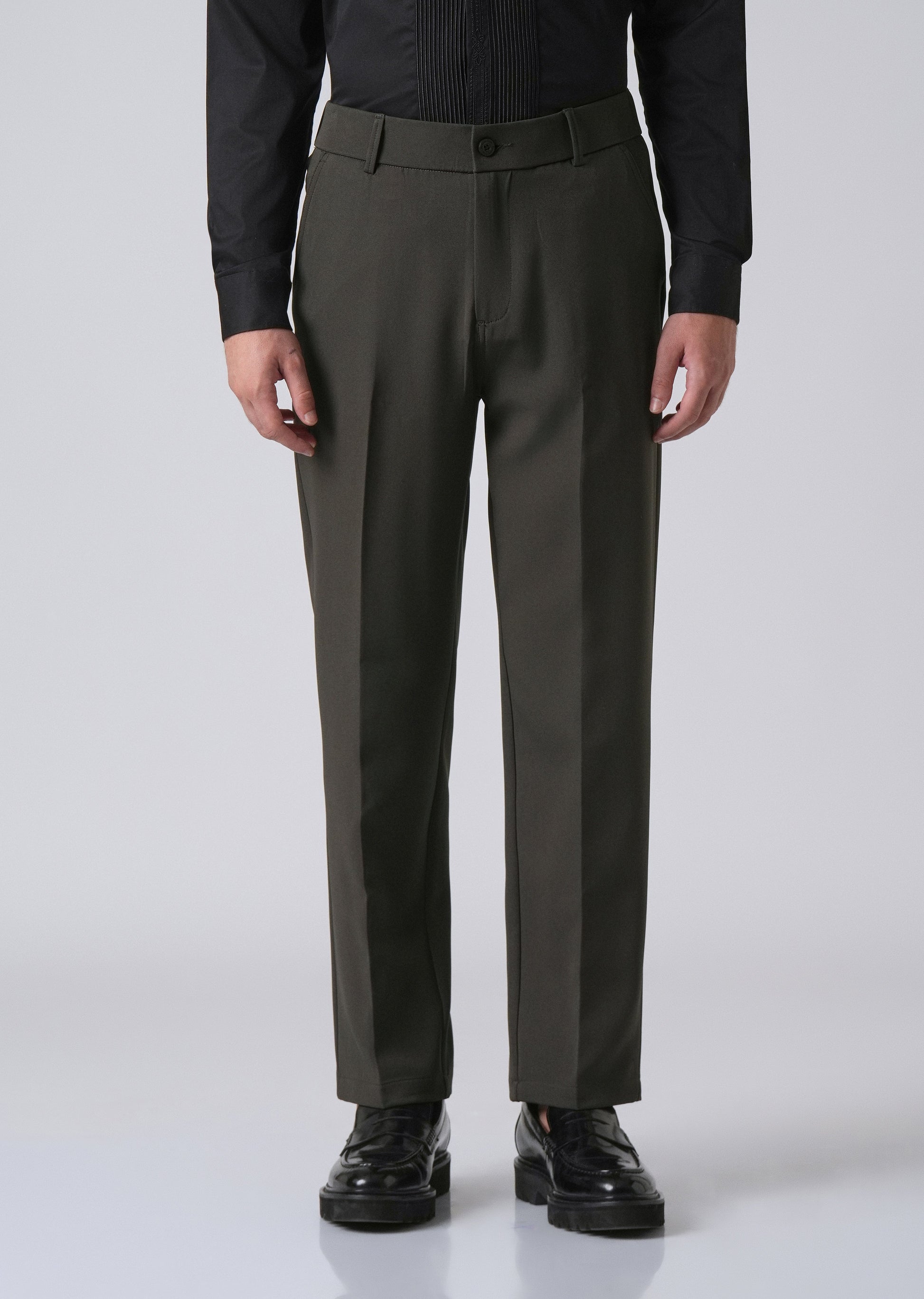 - Semi-elasticated waist with belt loops for a tailored yet flexible fit.
