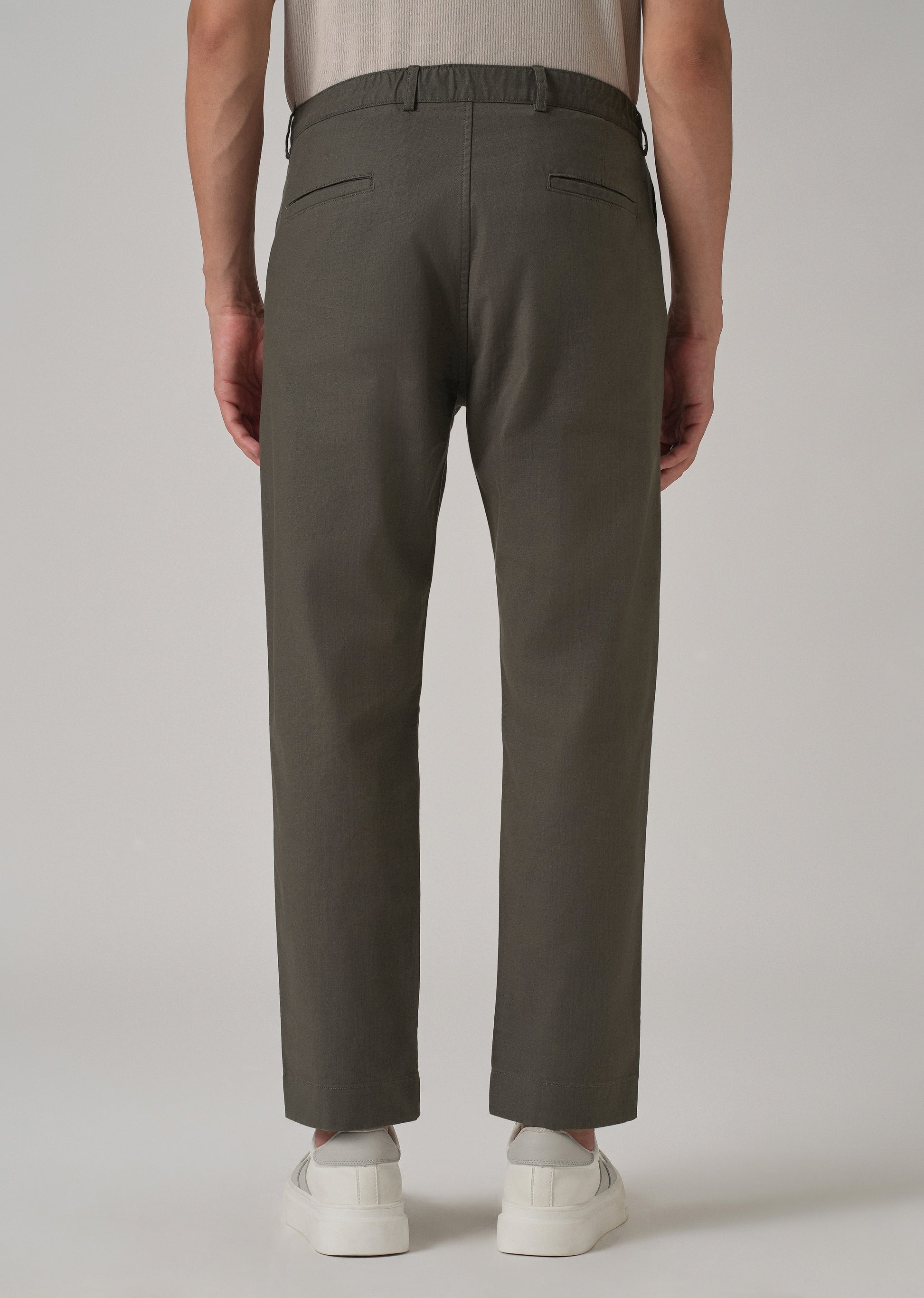 Relaxed, refined, and ready for wherever the day takes you. Designed for everyday comfort with a clean silhouette, these cotton trousers are a versatile wardrobe essential. The concealed zipper adds a seamless touch, while the elasticated waistband ensures ease without sacrificing structure.