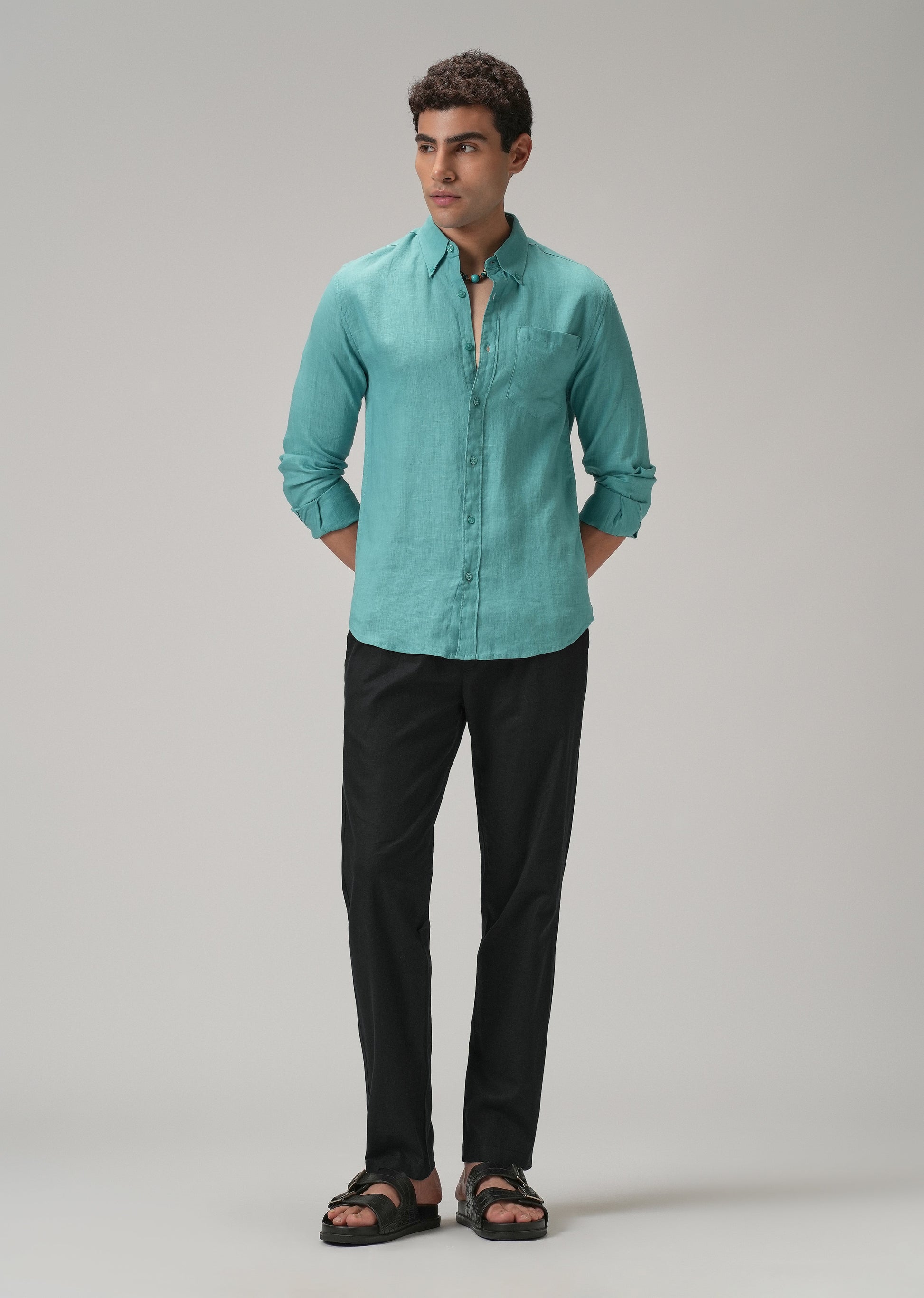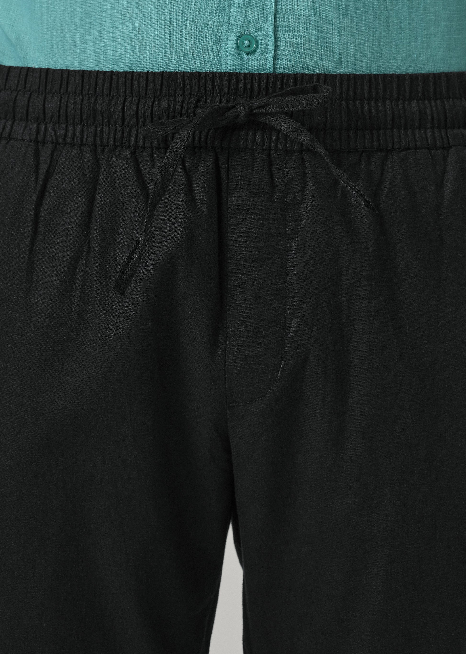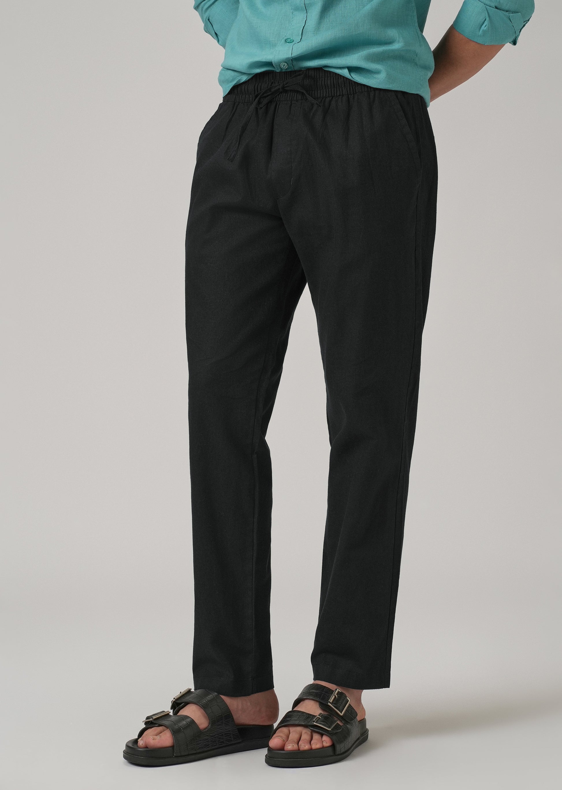 Comfort meets versatility. Designed with an elasticated waist and adjustable drawstring, these pants offer a perfect balance of ease and style. Featuring two front pockets and two welt pockets at the back, they provide both function and a clean look. The linen-cotton blend ensures breathability, making them ideal for all-day wear.