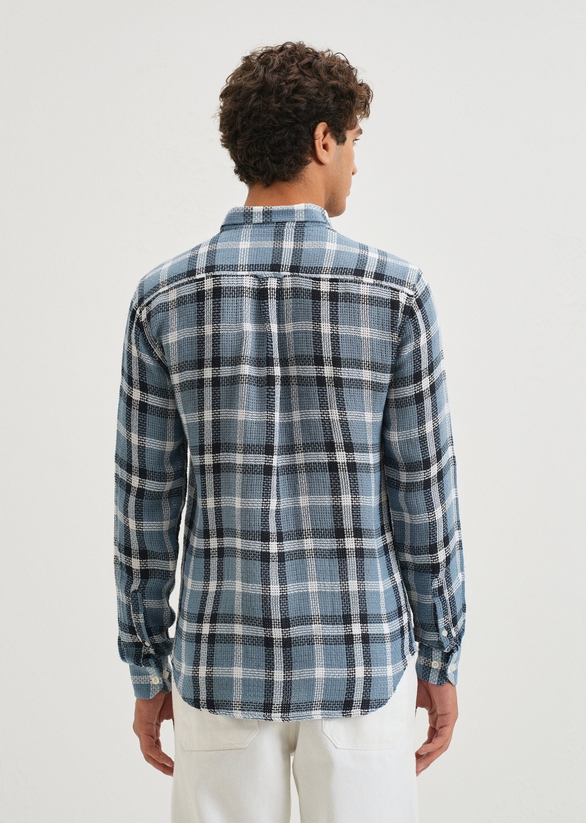 - Mirrored checks pattern in cotton jute fabric shirt.