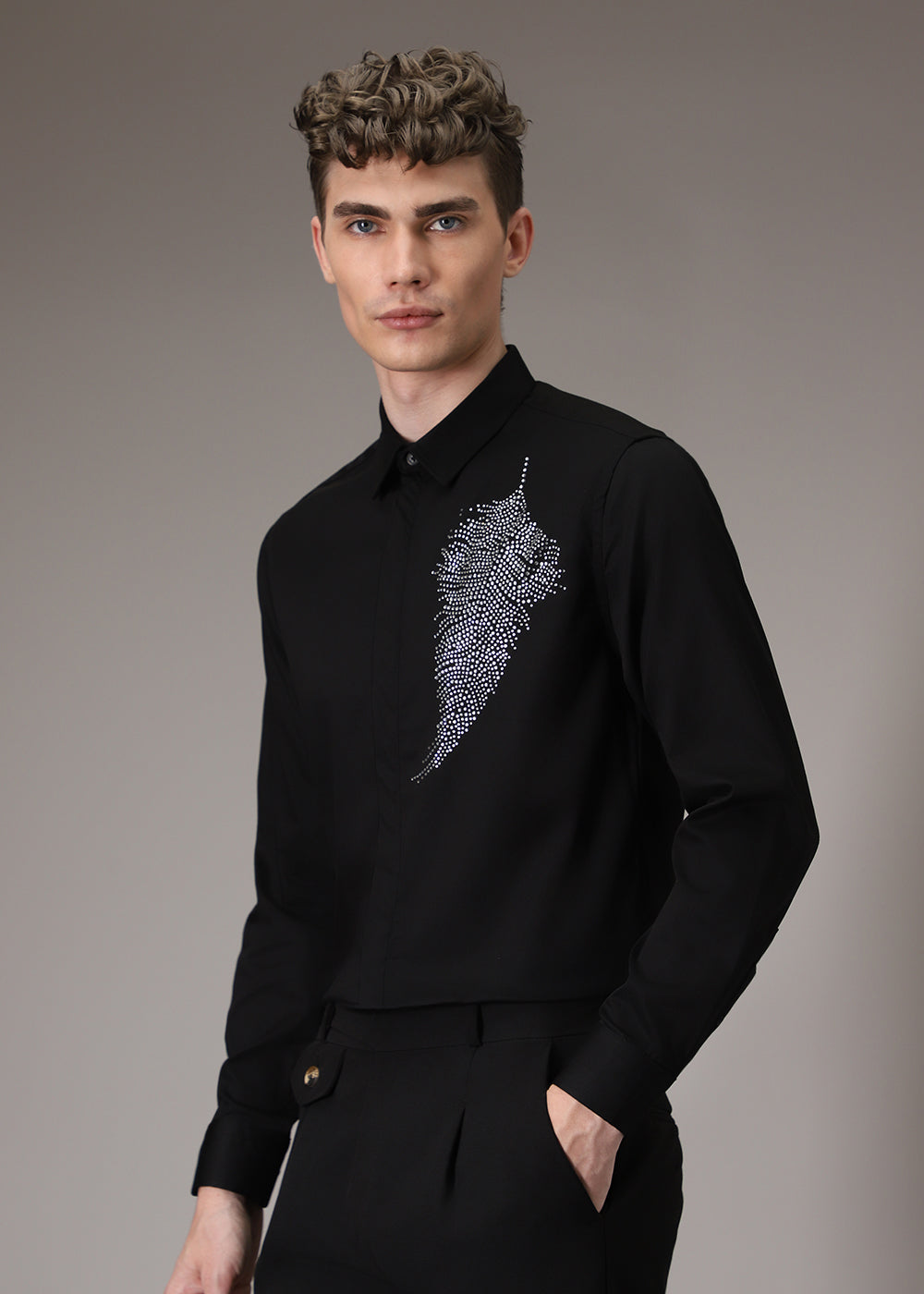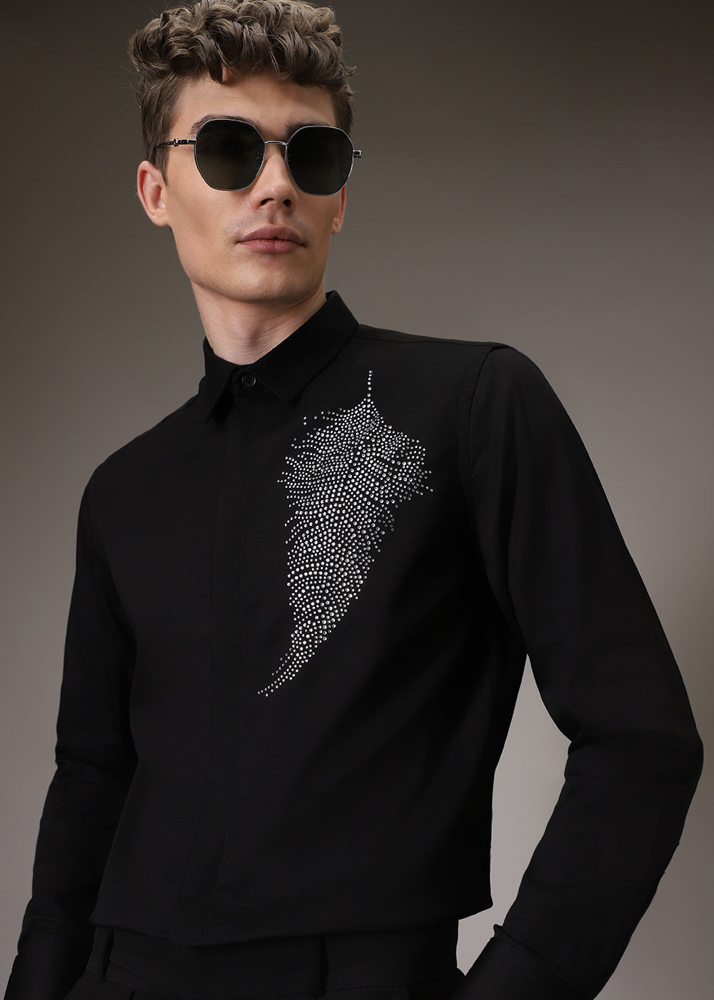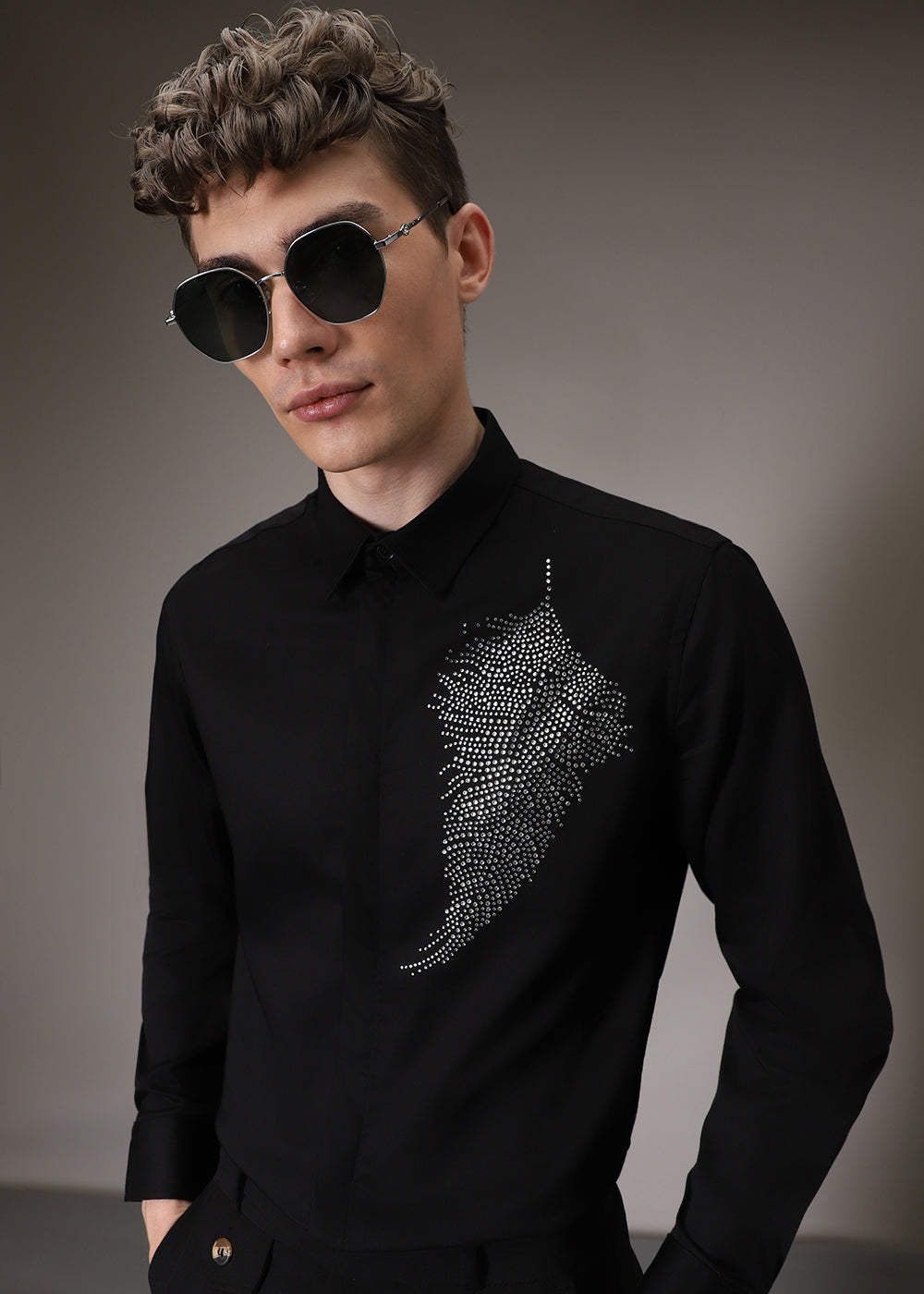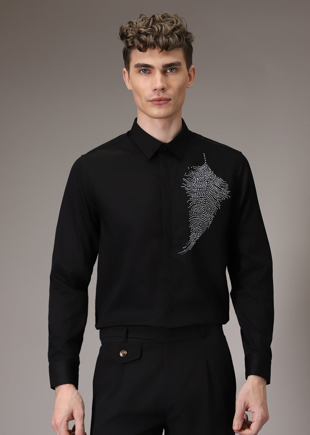 Embellish Beaded Black Designer Shirt