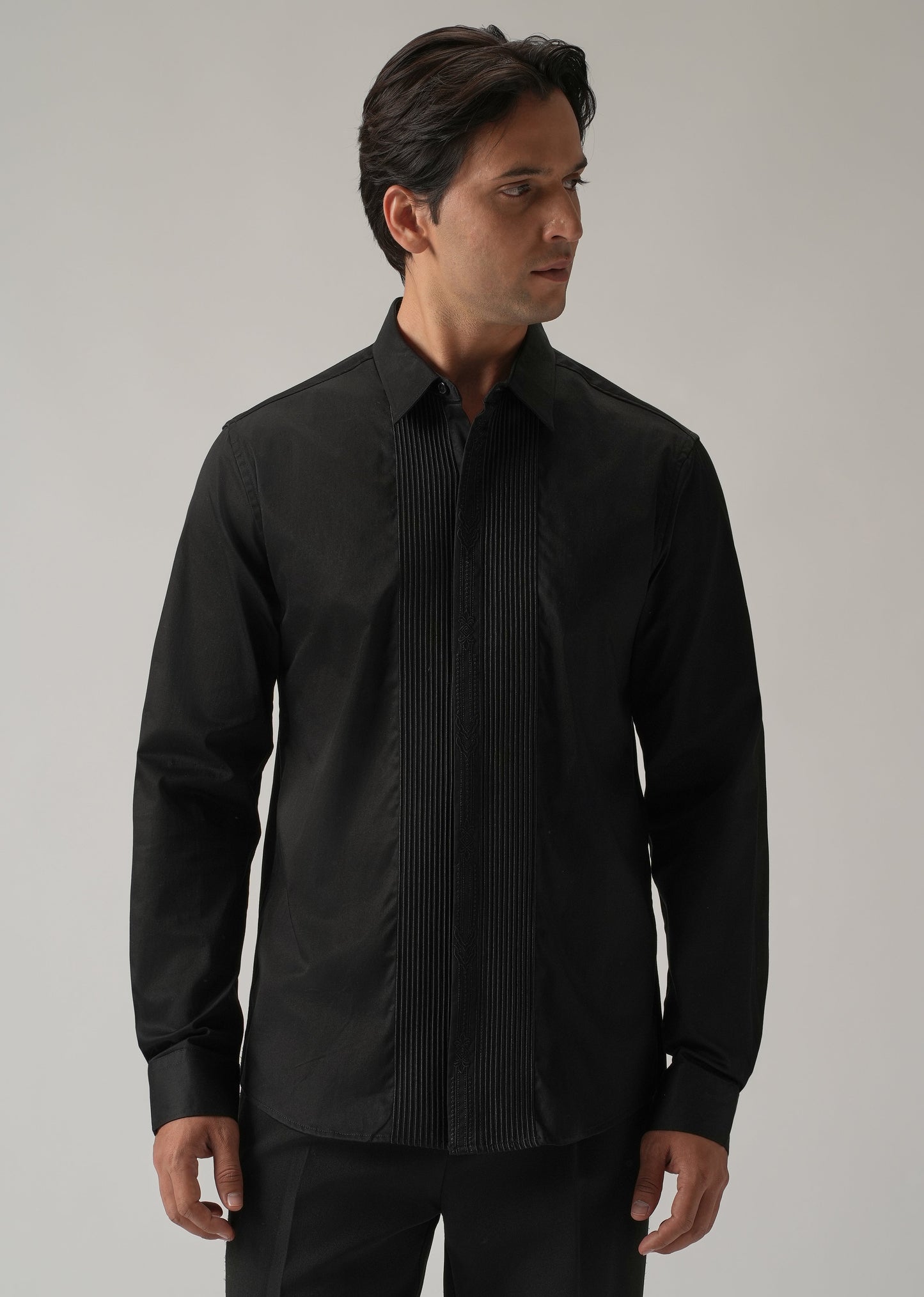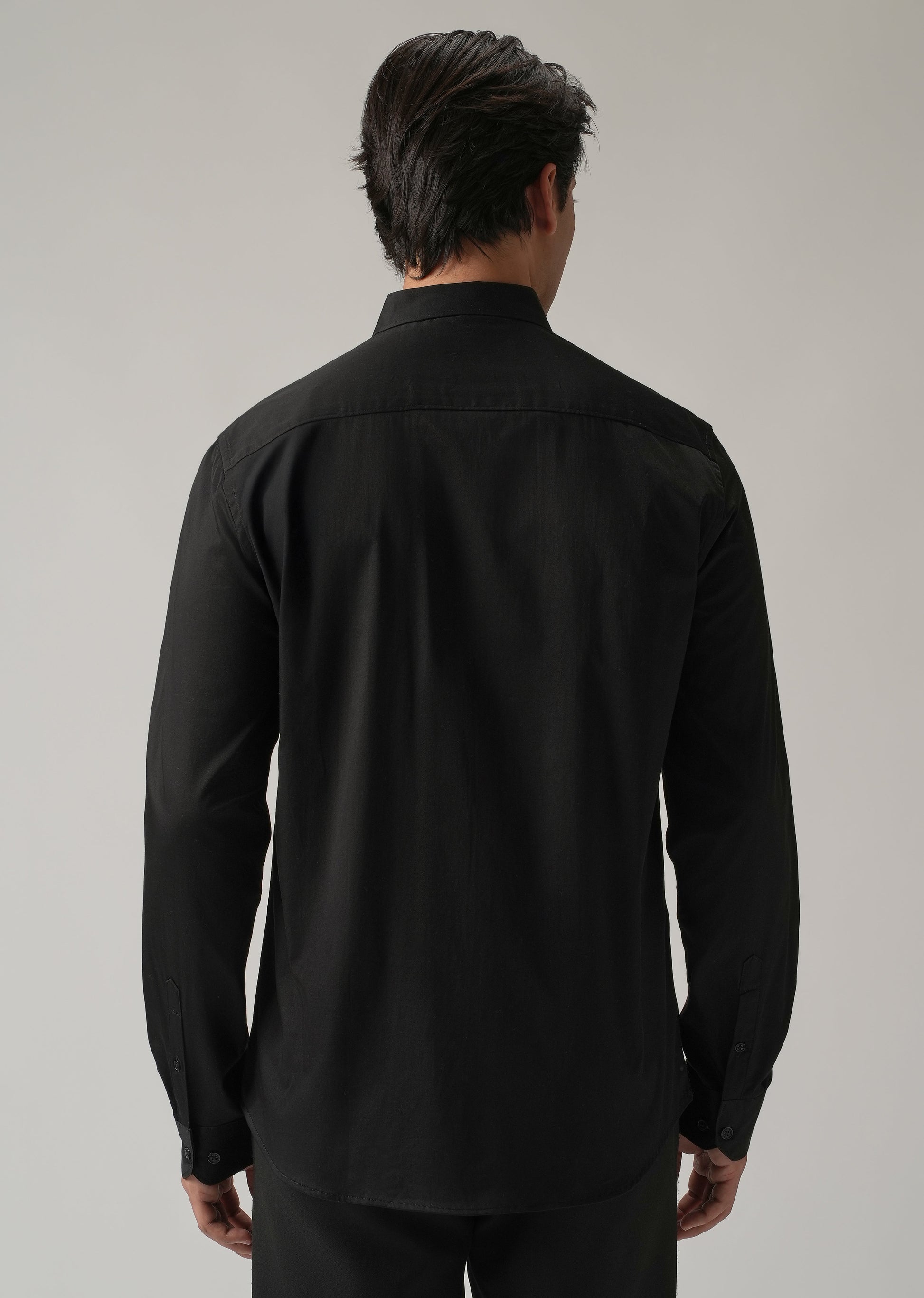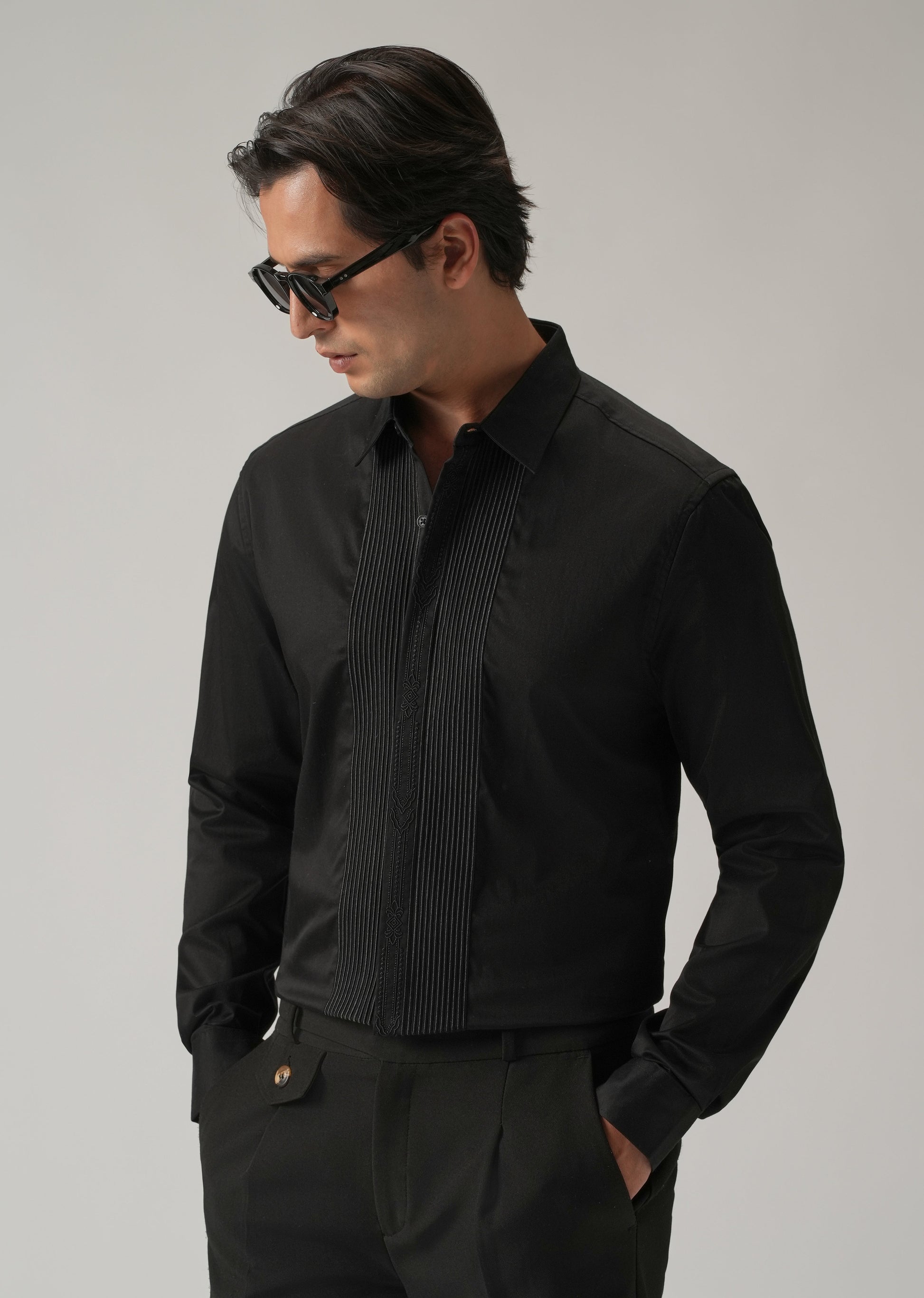 A refined take on classic style. Featuring an embroidered panel down the center front, this shirt adds a touch of detail while keeping it sleek. The button-down front, standard collar, and curved hem create a polished look, while the slim fit ensures a sharp silhouette.