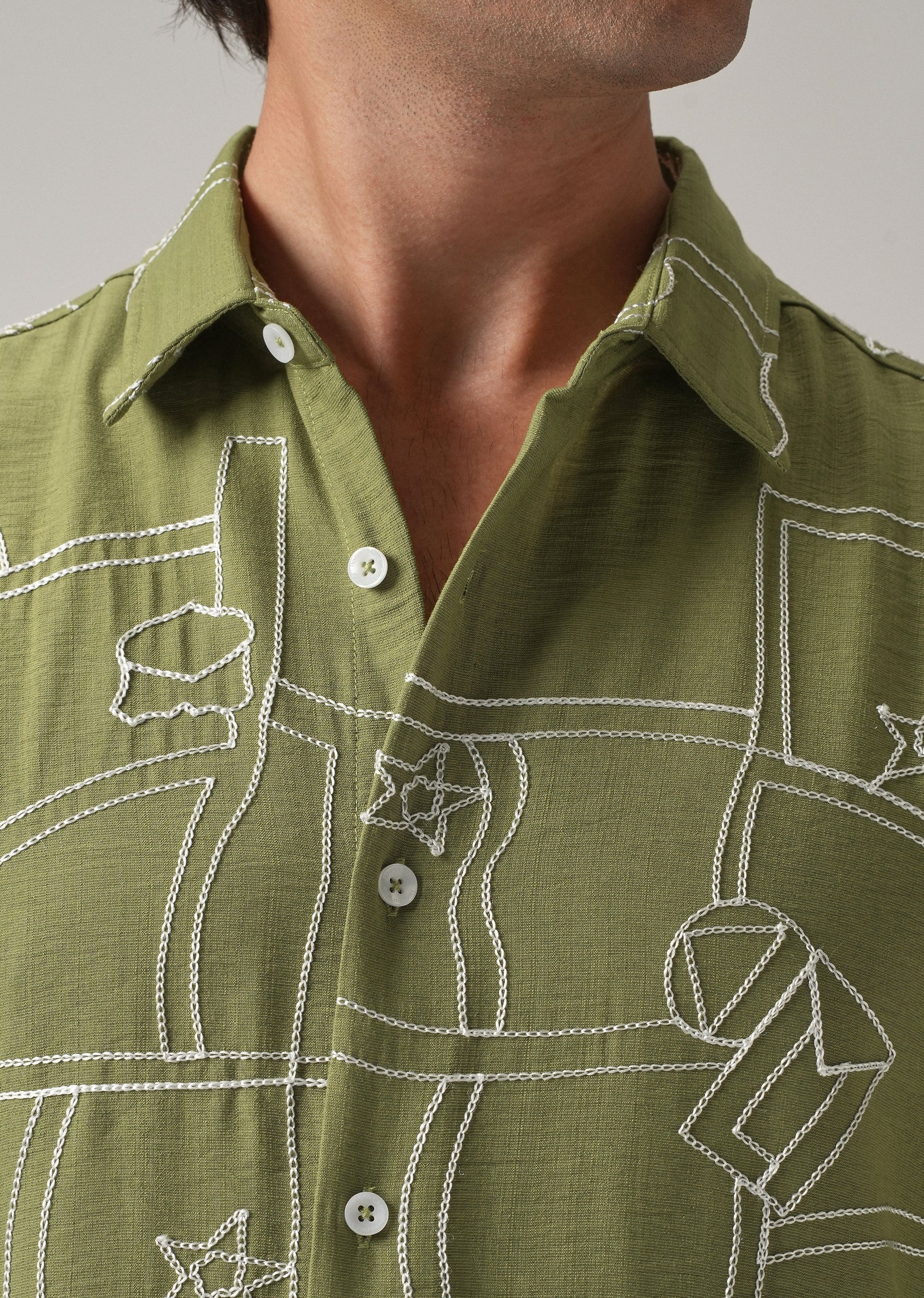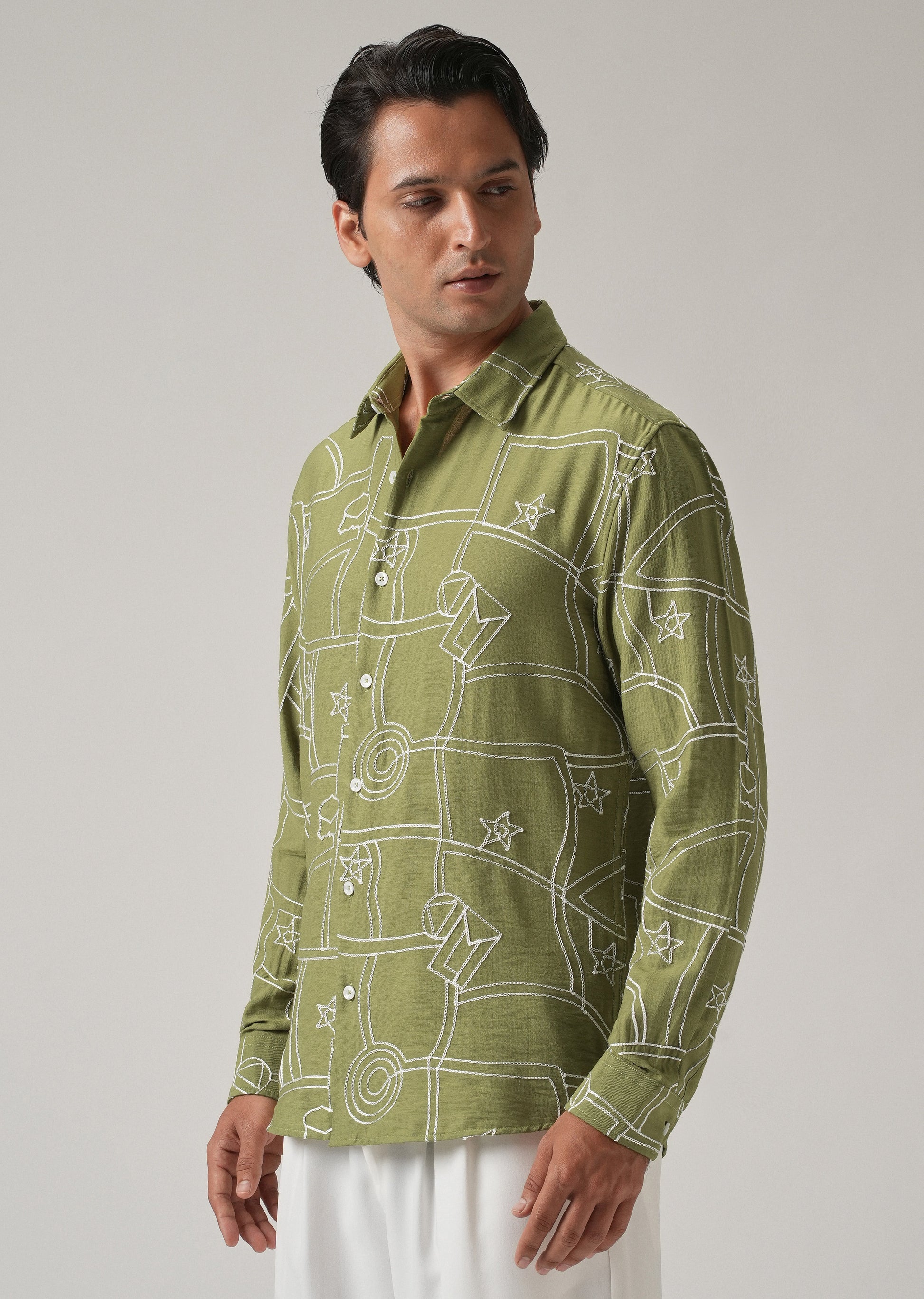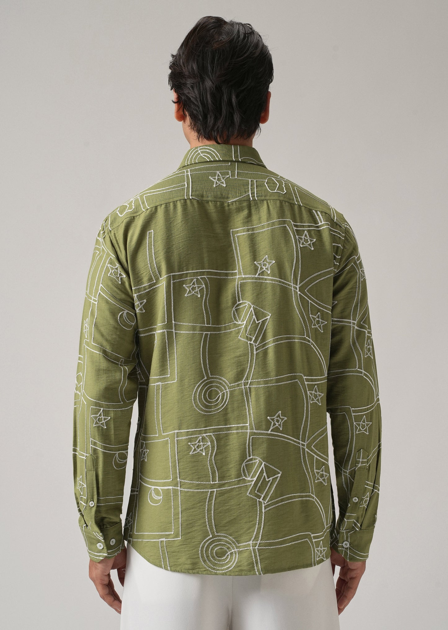 Elevated design with intricate detailing. This shirt features embroidered details across the garment, adding a refined touch to a classic silhouette. The spread collar, button-up front, and buttoned cuffs complete the look, while the slim fit ensures a sharp and tailored appearance.